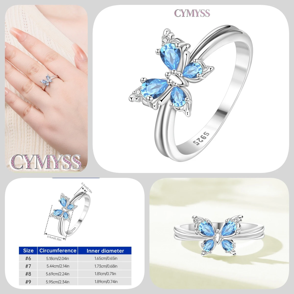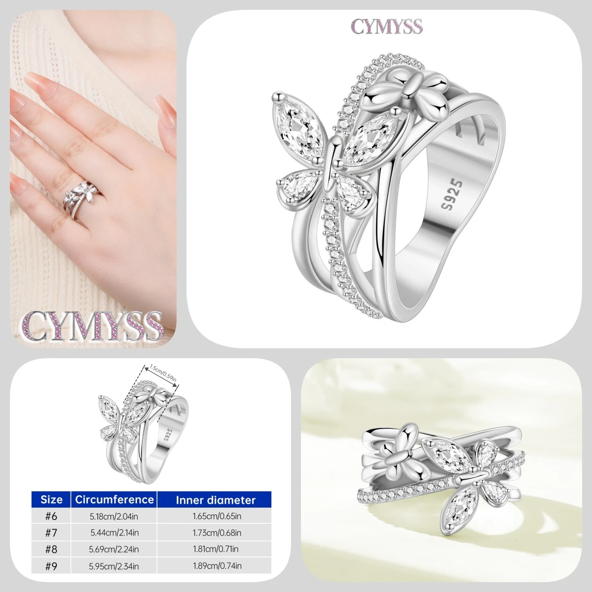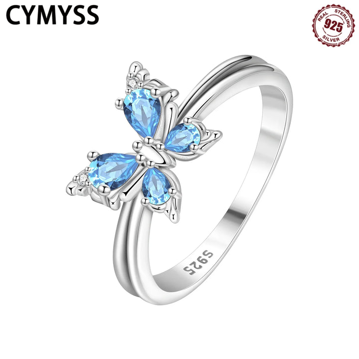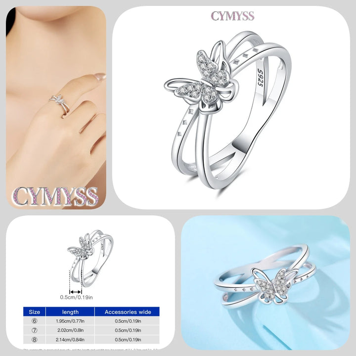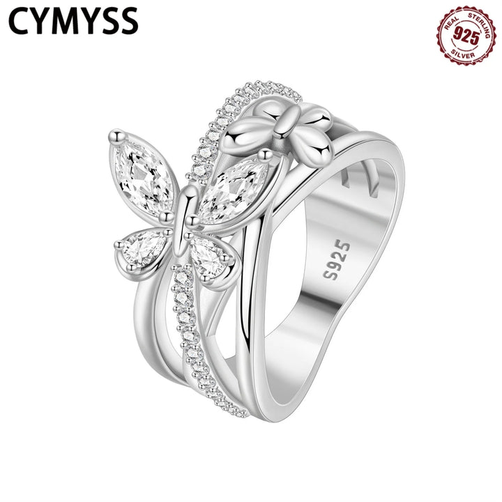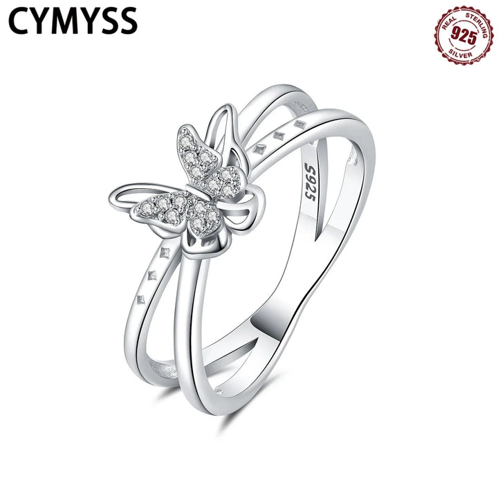 Hot Sale Original S925 Sterling Silver Zirconia Butterfly Ring Fine Jewellery Wedding Party Gift Women's Closed Size Mouth Rings