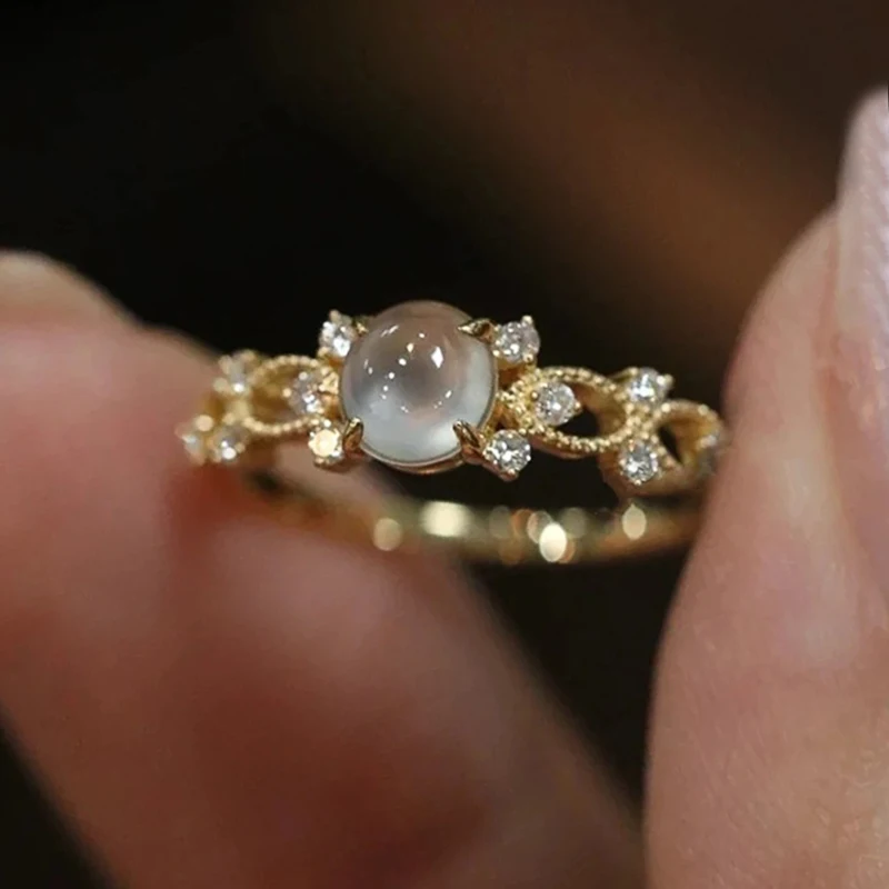 Huitan Trendy Imitation Opal Rings Series for Women Exquisite Hollow Gold Color Finger Rings Wedding Party Aesthetic Jewelry Hot