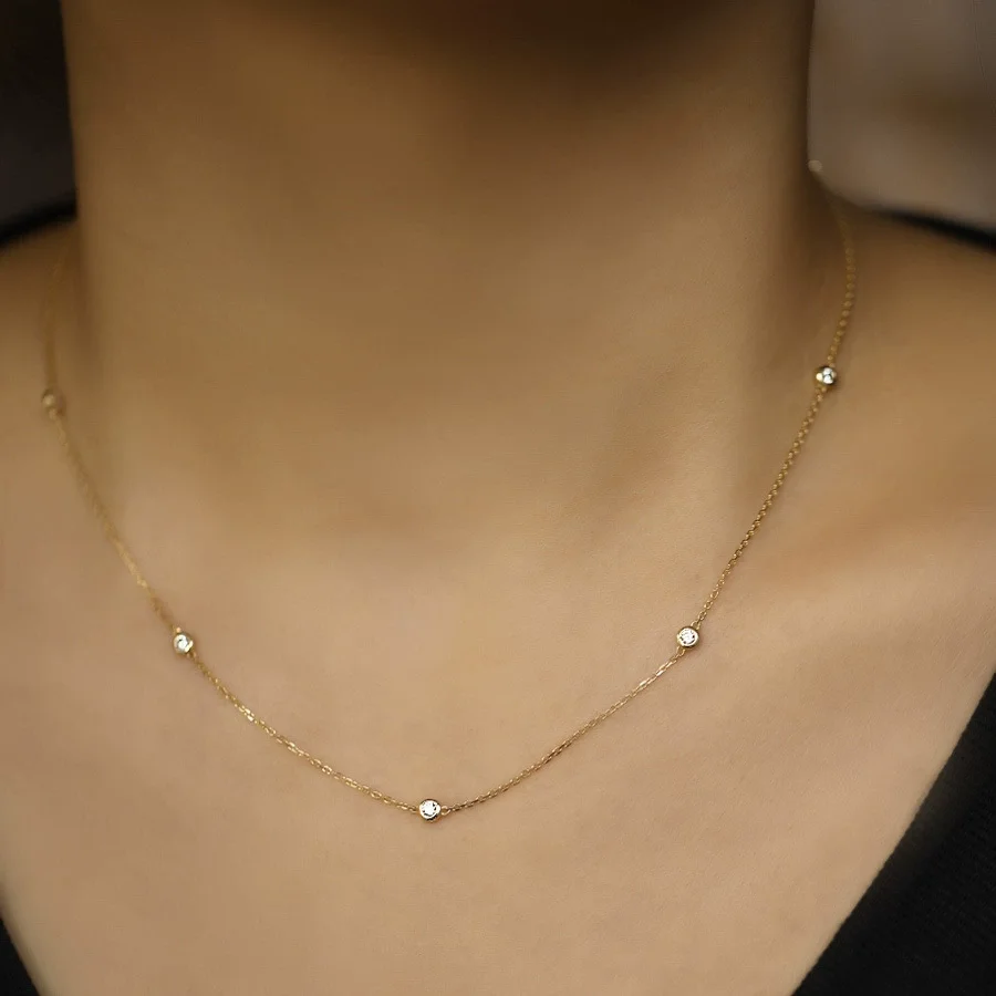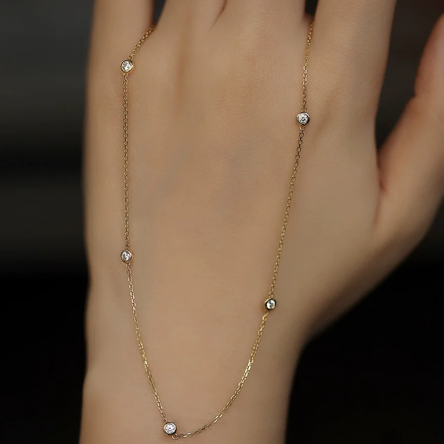 JKeli 100% S925 Sterling Silver Round Zircon Bead Necklace for Women Gold Silver Color Korea Clavicle Chain Necklace Trendy Jewe