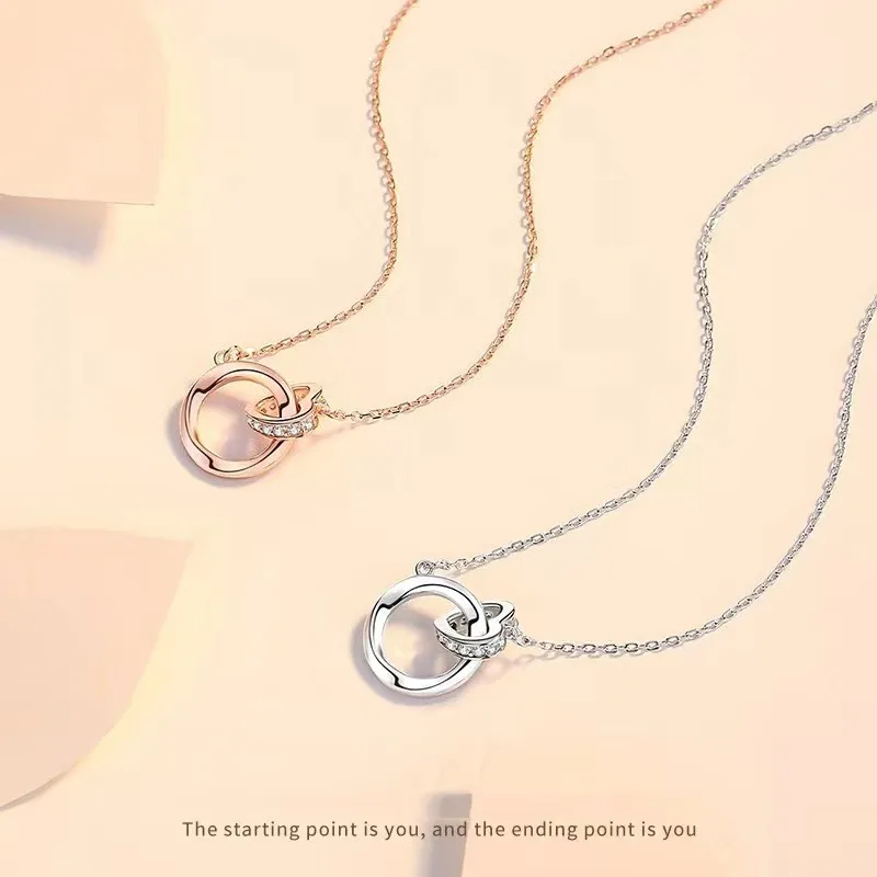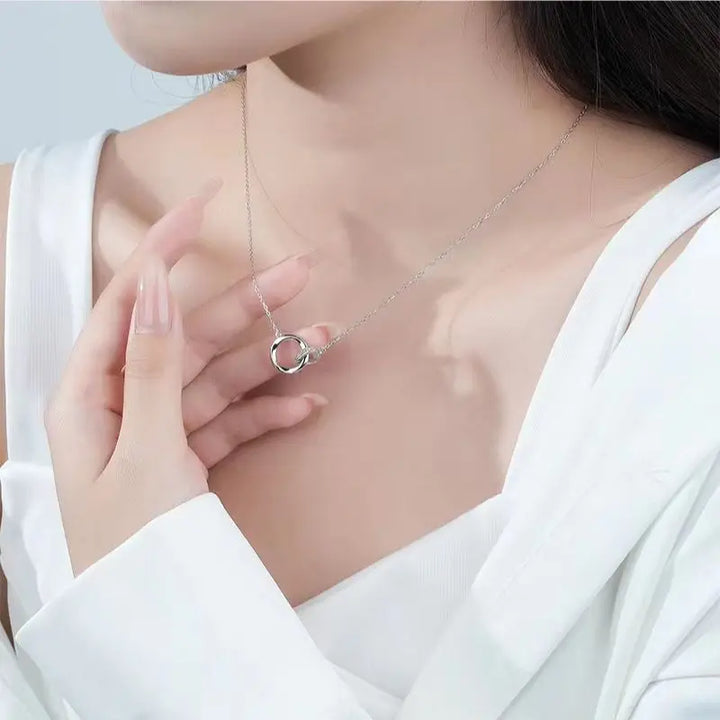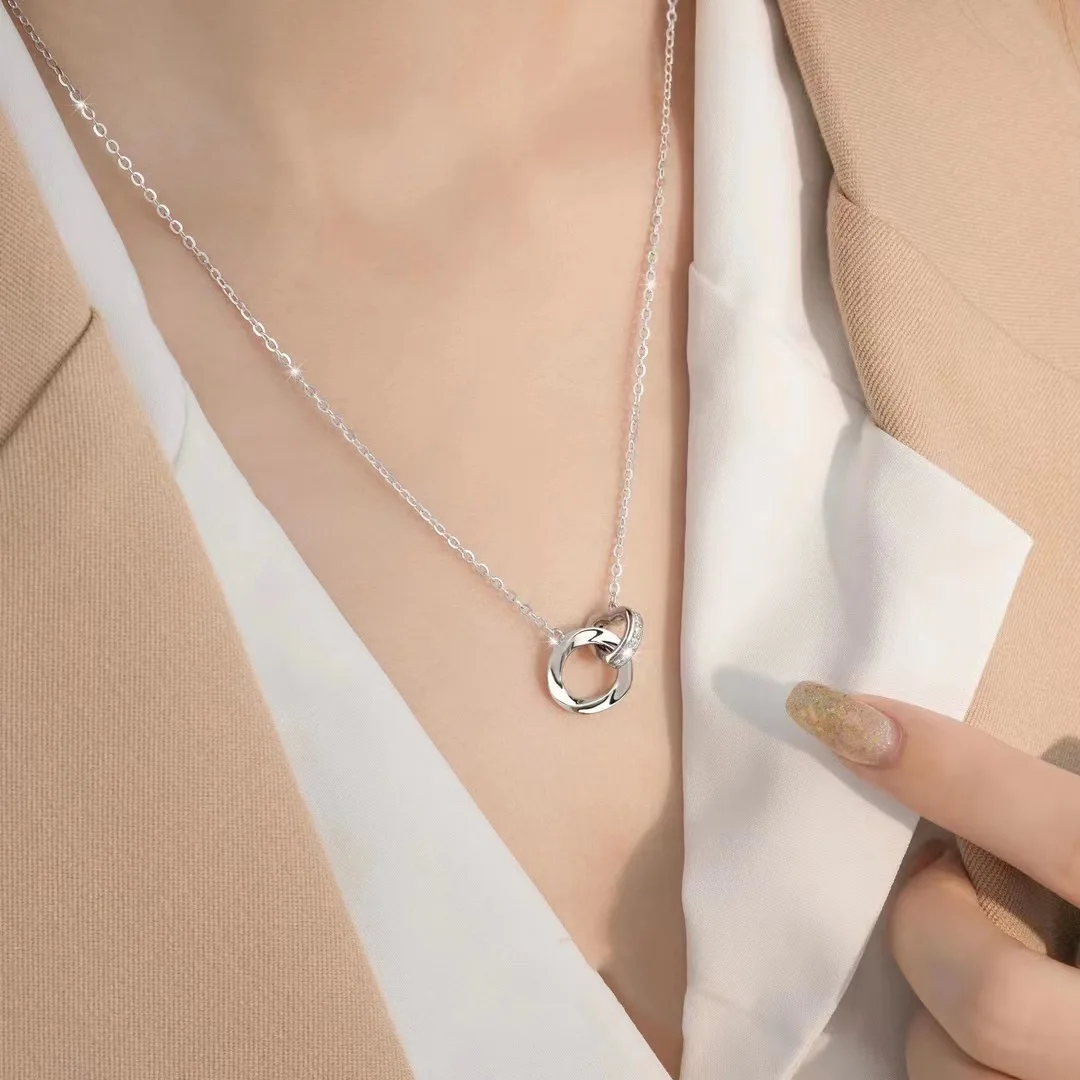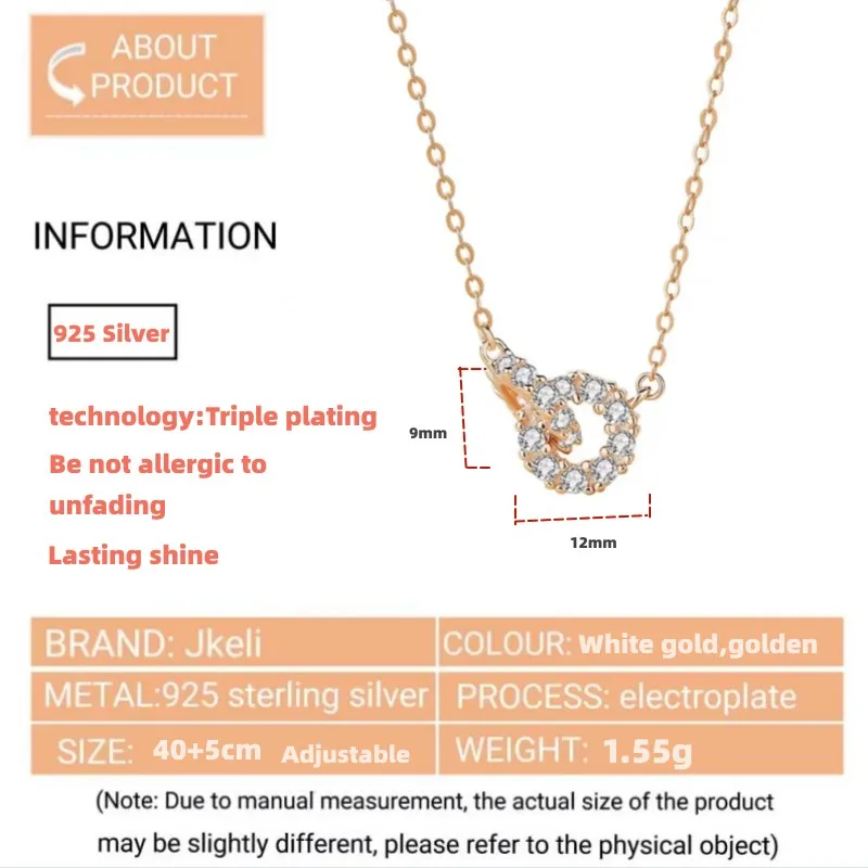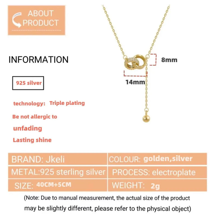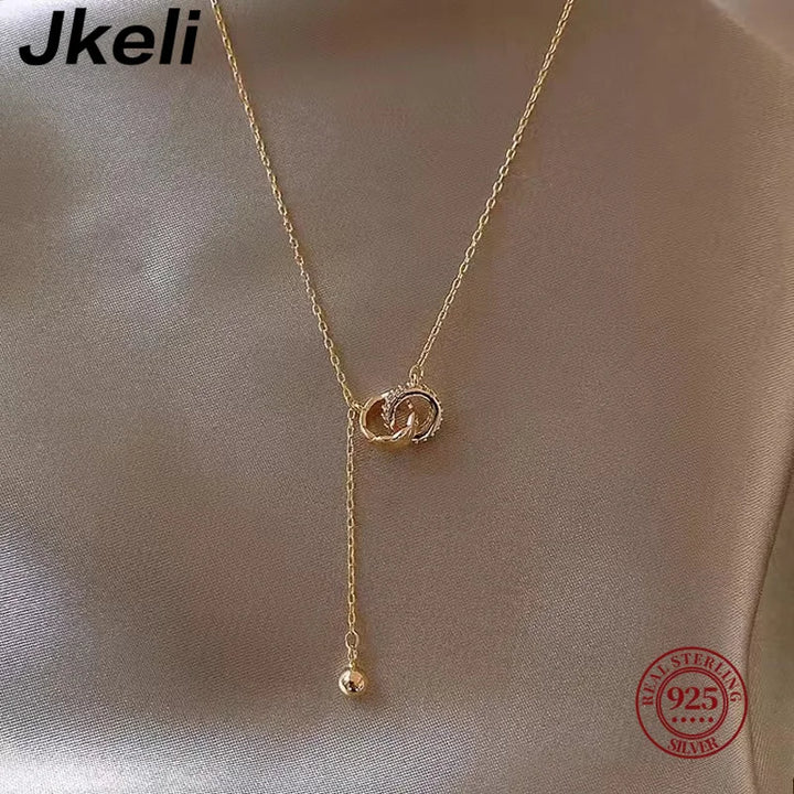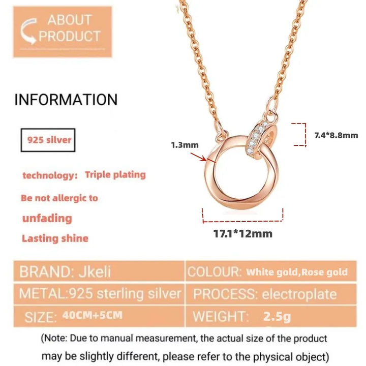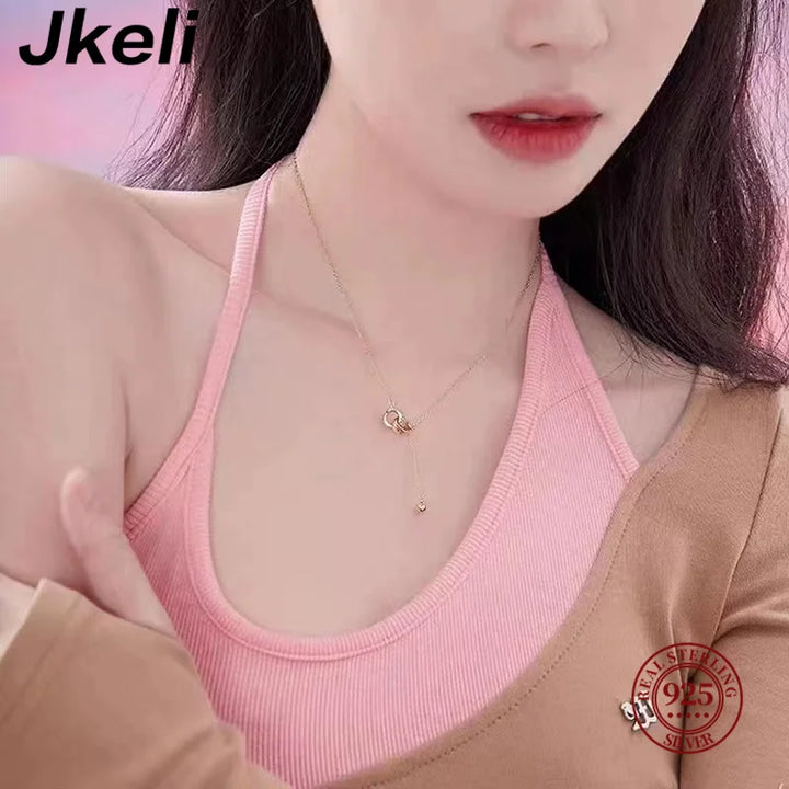 Jkeli Bicyclic ri Korean Exquisite Pavé Crystal Geometry S925 Sterling Silver Pendant Necklace Women Fashion Charm Party Jewelry
