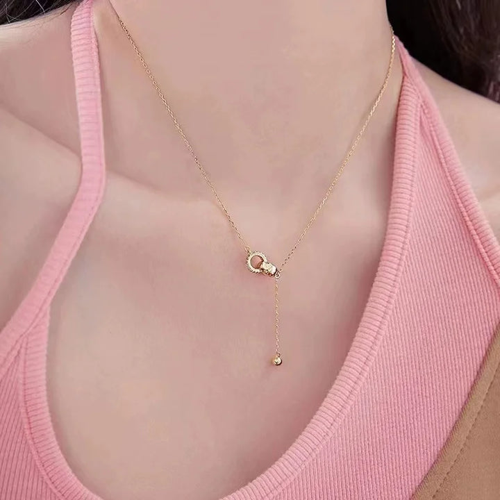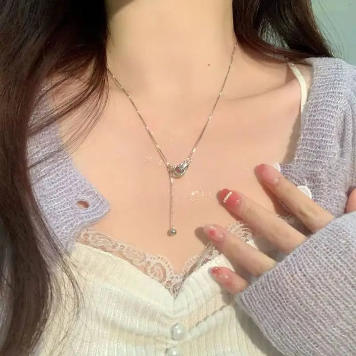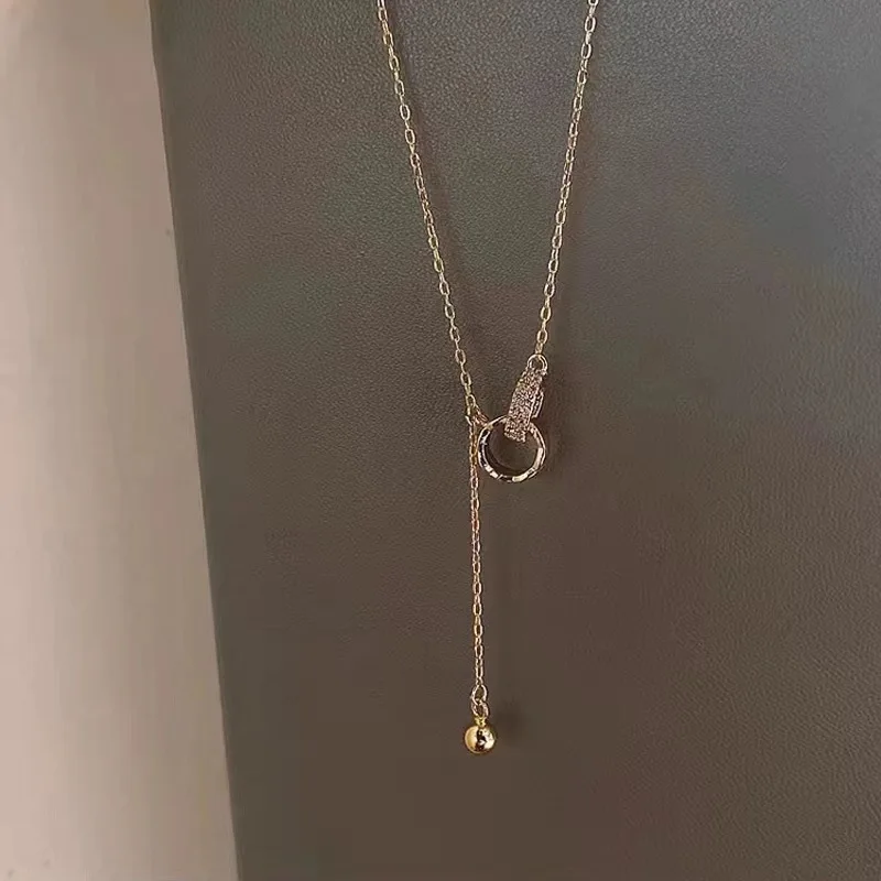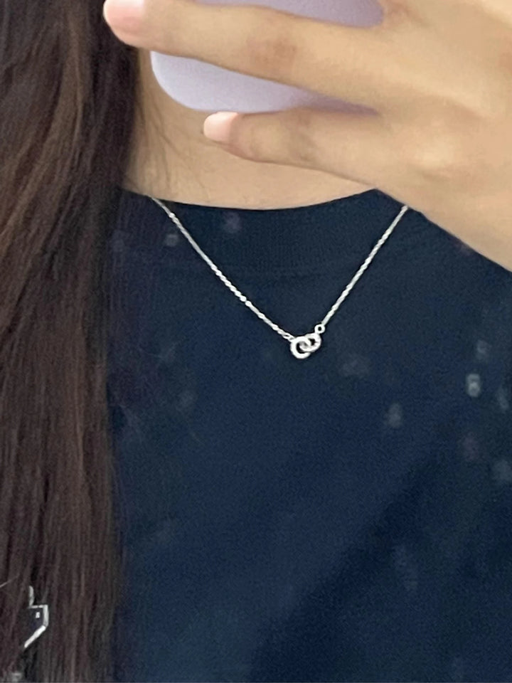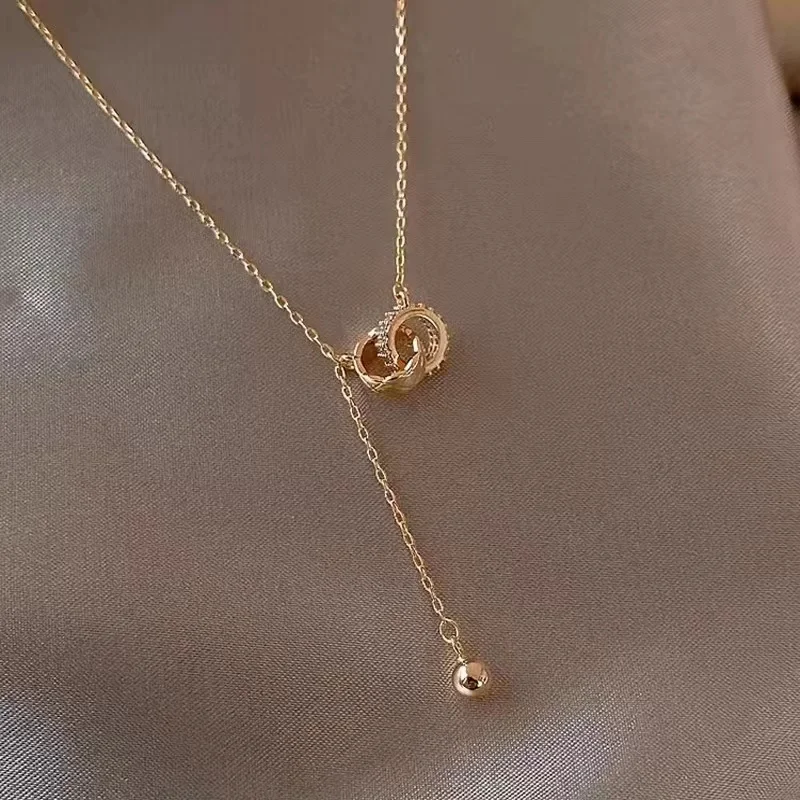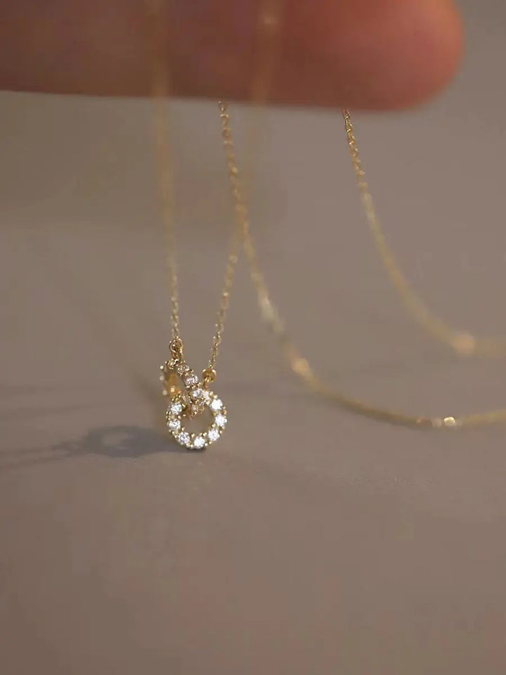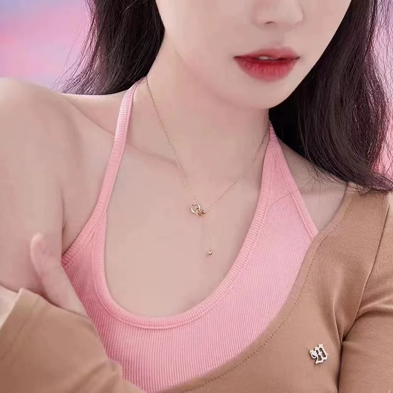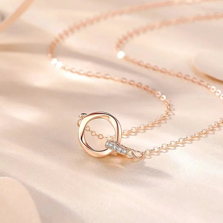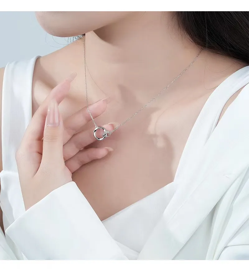 Jkeli Bicyclic ri Korean Exquisite Pavé Crystal Geometry S925 Sterling Silver Pendant Necklace Women Fashion Charm Party Jewelry