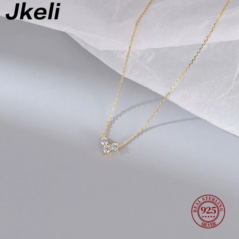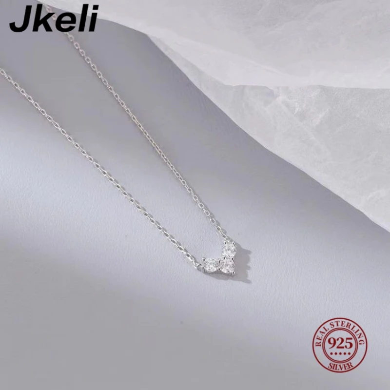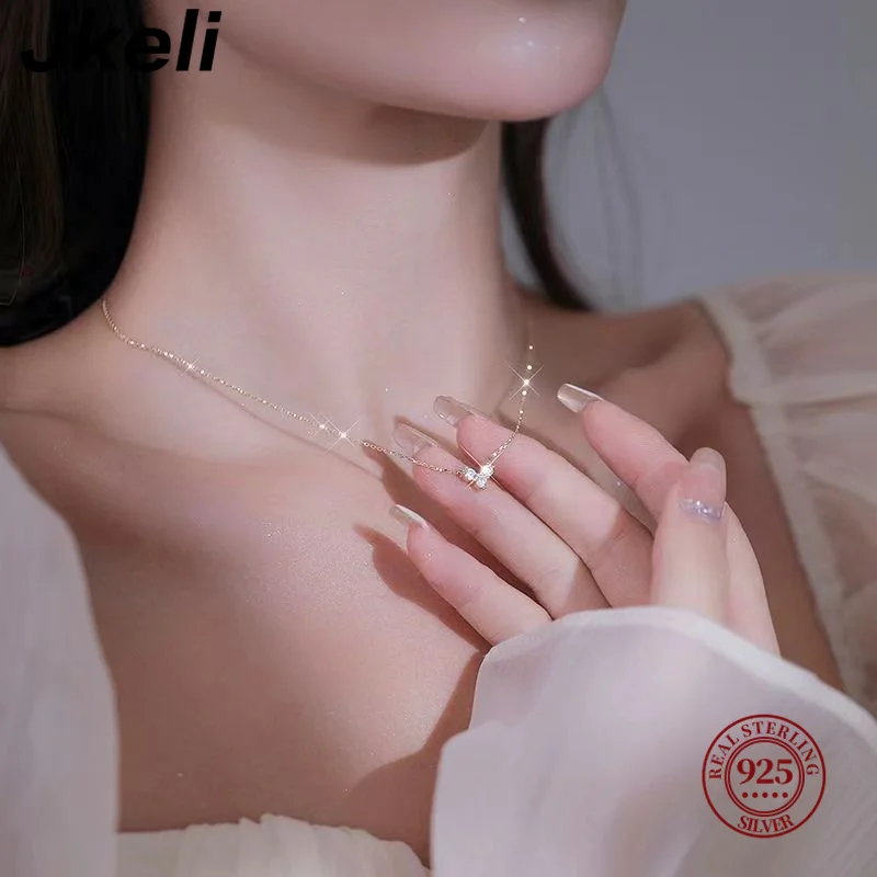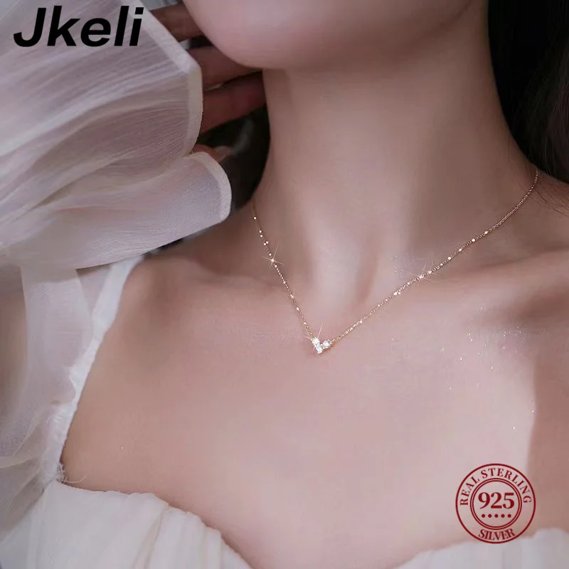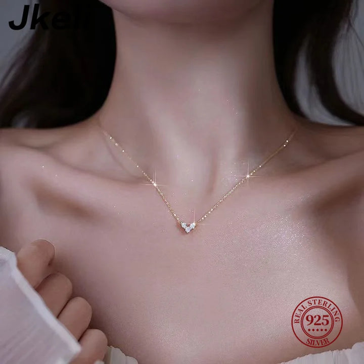 Jkeli Real 925 Sterling Silver Small Zircon Heart Necklace Exquisite Pendant Chain For Women Girls Plated 14K Gold Jewelry Gifts