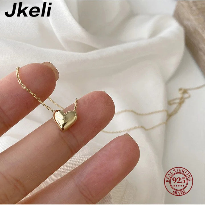Jkeli S925 Silver New Fashion Trend Unique design elegant delicate heart love Zircon collarbone necklace for ladies cute jewelry