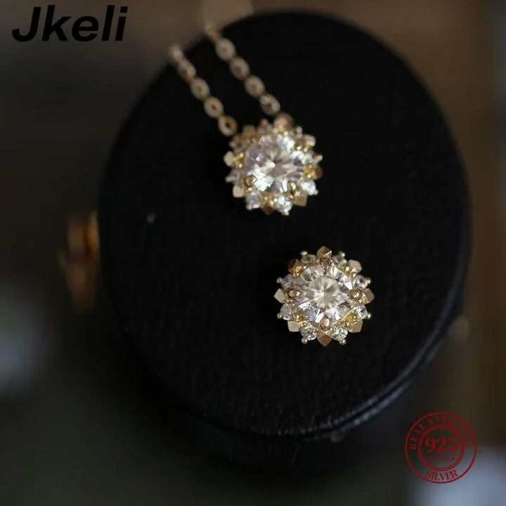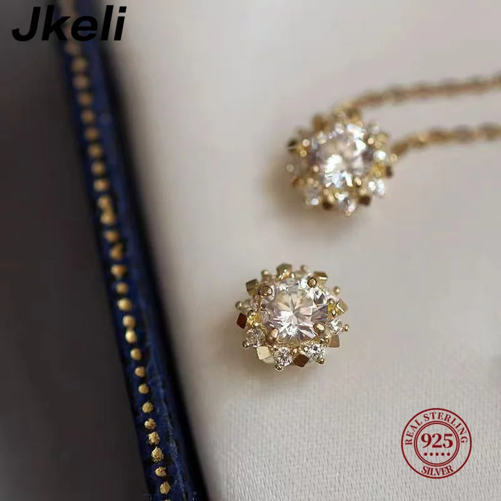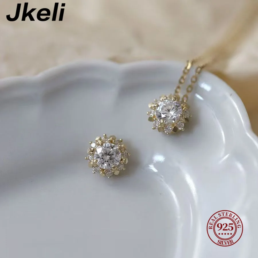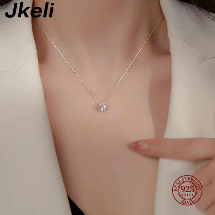 Jkeli S925 Sterling Silver Small Sun Necklace Gold Plated Zirconia Embedded Luxury Clavicle Chain New Style Fashion Jewelry