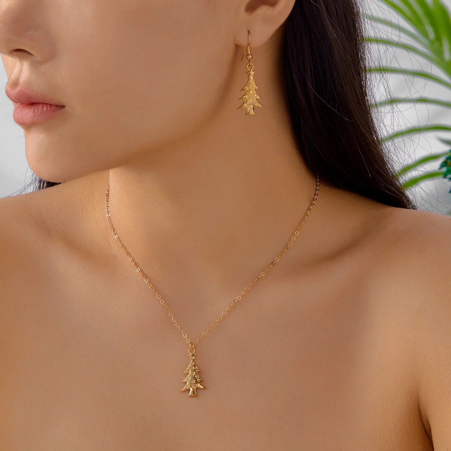 Joyful Christmas Tree Necklace Earring Set for Women Exaggerated Colorful Bell Snowman Bracelet Set Festival Party Jewelry Gift