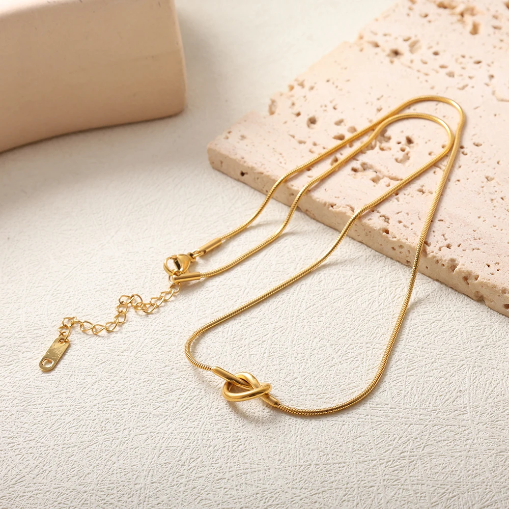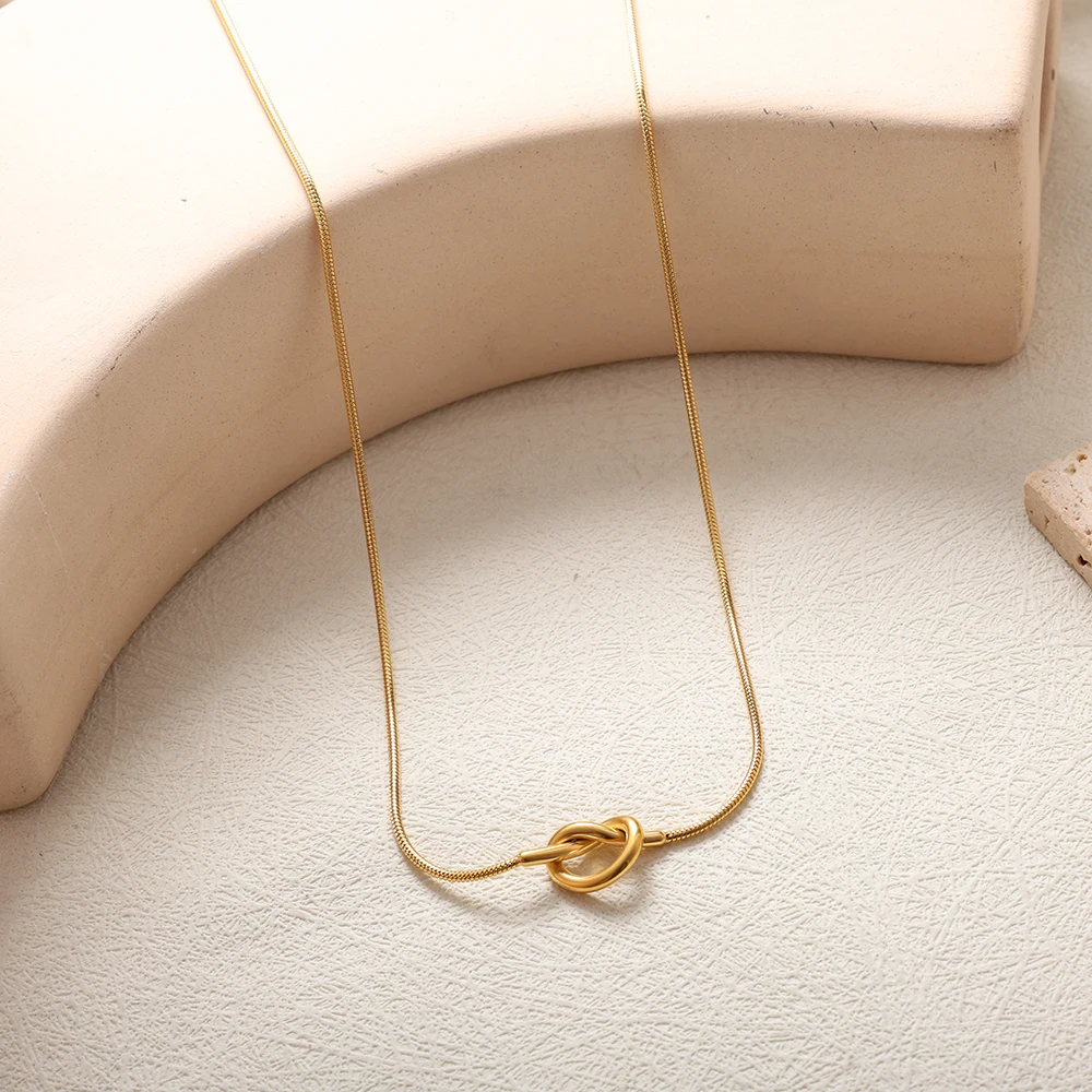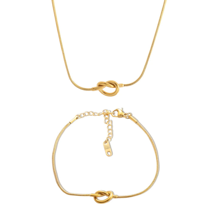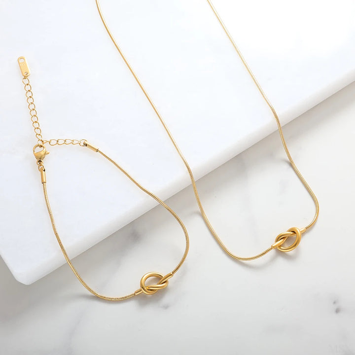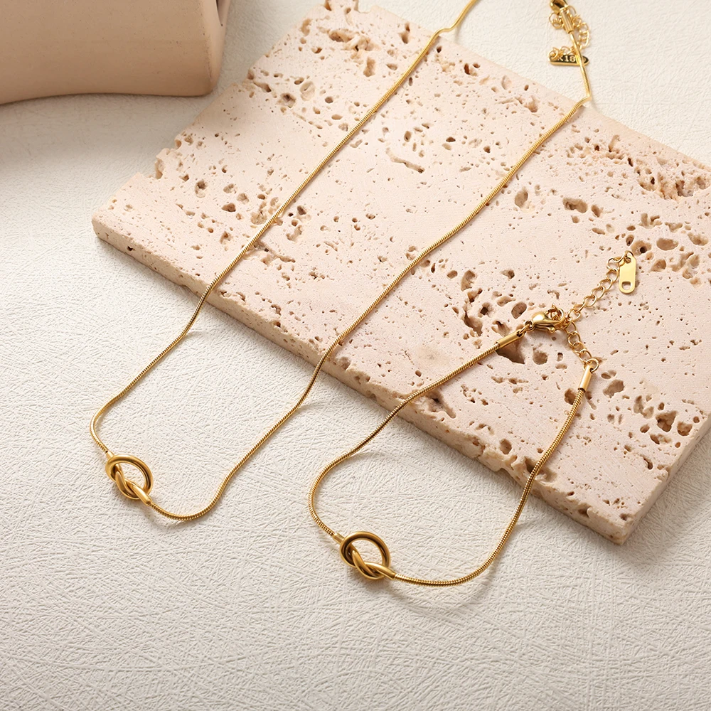 TAKE A LOOK AT THIS: Knotted Necklace Bracelet Set Simple Commuter Gold-plated Stainless Steel Choker High Quality Jewelry Kit Daily Wear Accessories