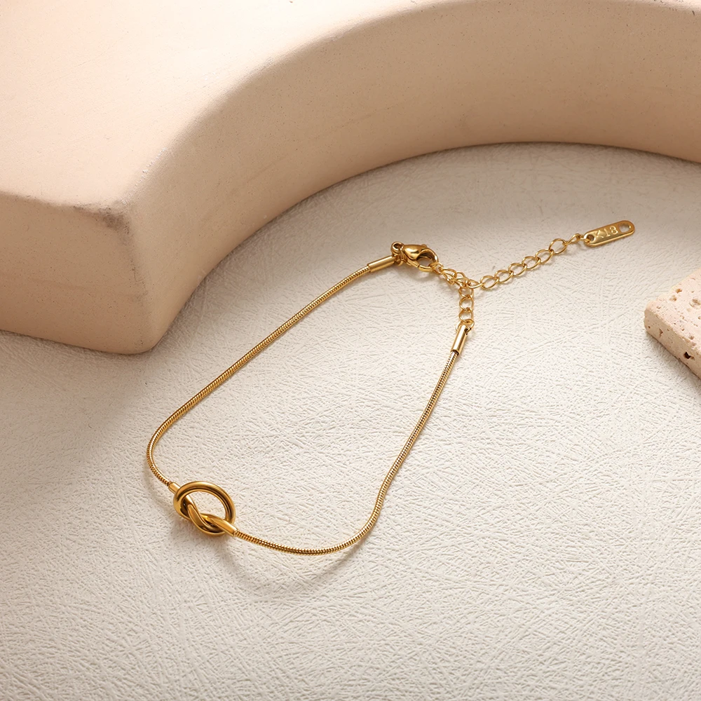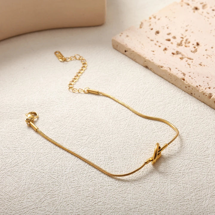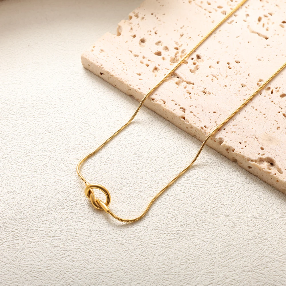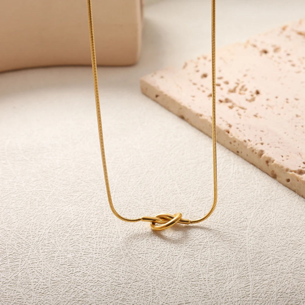 TAKE A LOOK AT THIS: Knotted Necklace Bracelet Set Simple Commuter Gold-plated Stainless Steel Choker High Quality Jewelry Kit Daily Wear Accessories