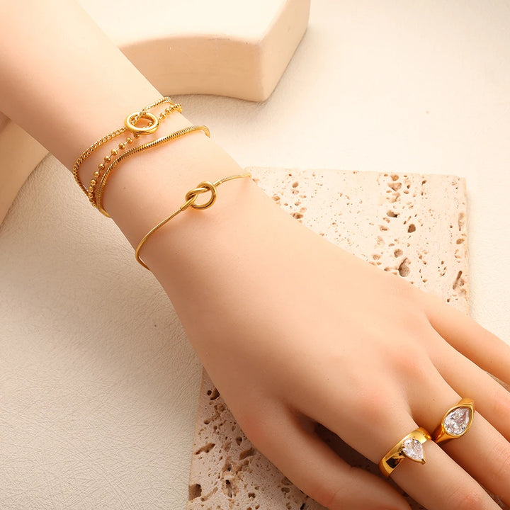Knotted Necklace Bracelet Set Simple Commuter Gold-plated Stainless Steel Choker High Quality Jewelry Kit Daily Wear Accessories