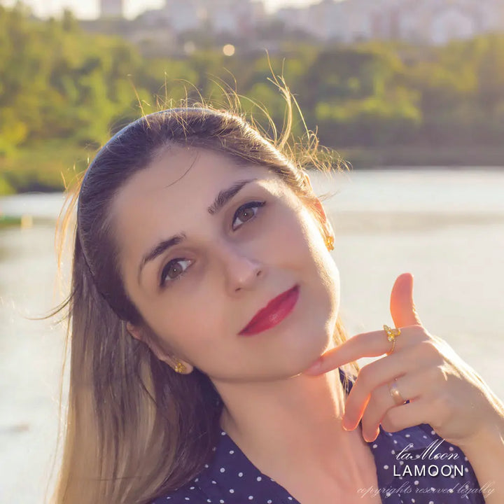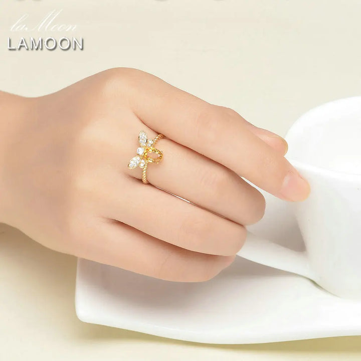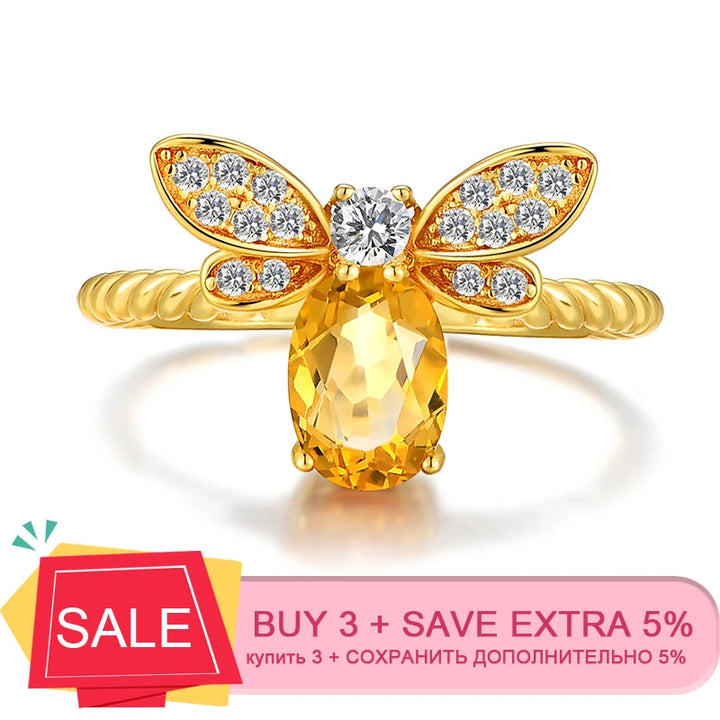 LAMOON Cute Bee 925 Sterling Silver Ring 1ct Natural Citrine Gemstones Jewelry 14K Gold Plated Rings For Women Jewellery LMRI019