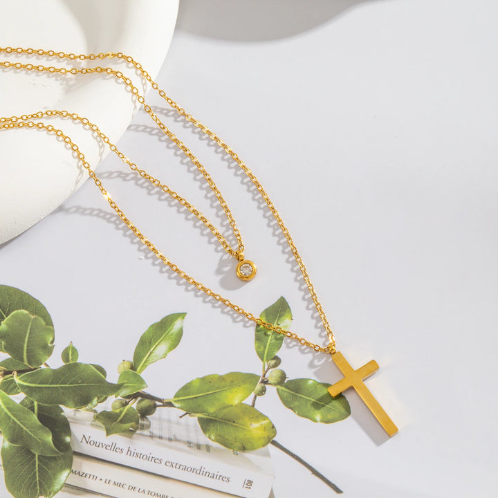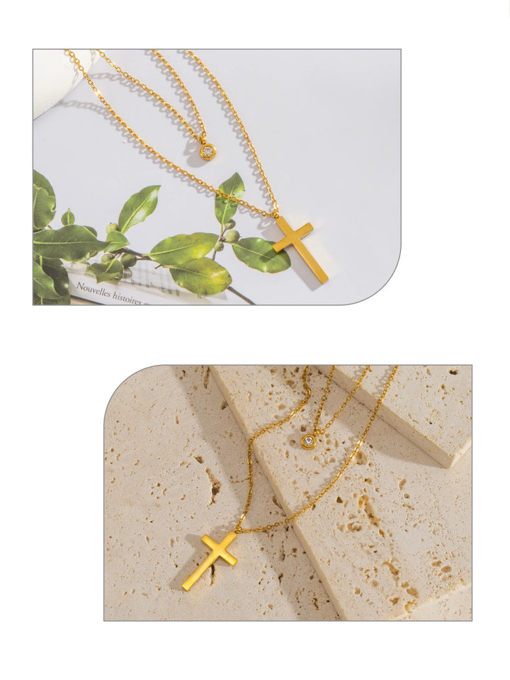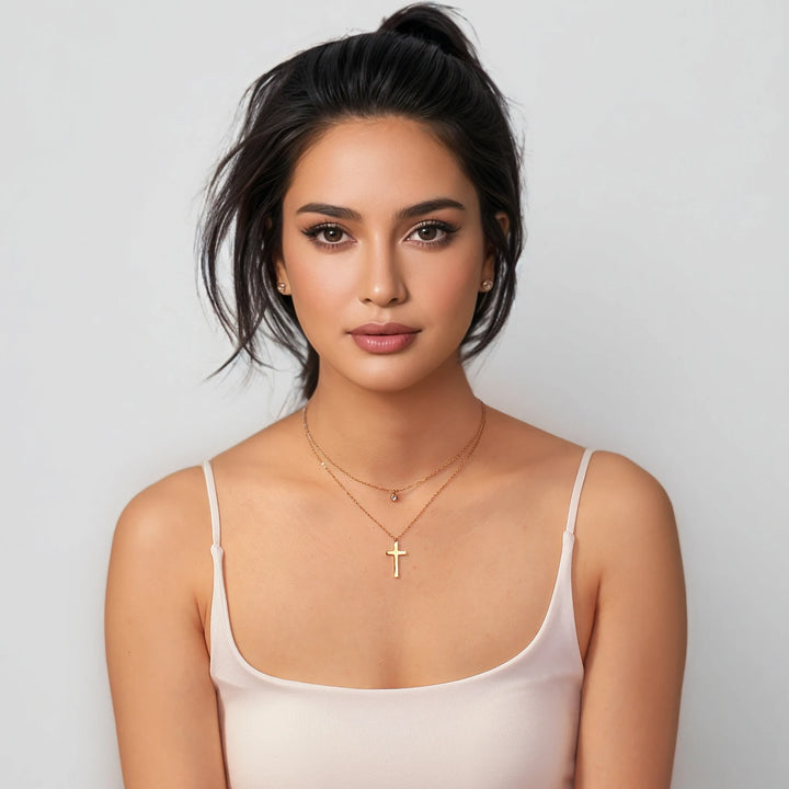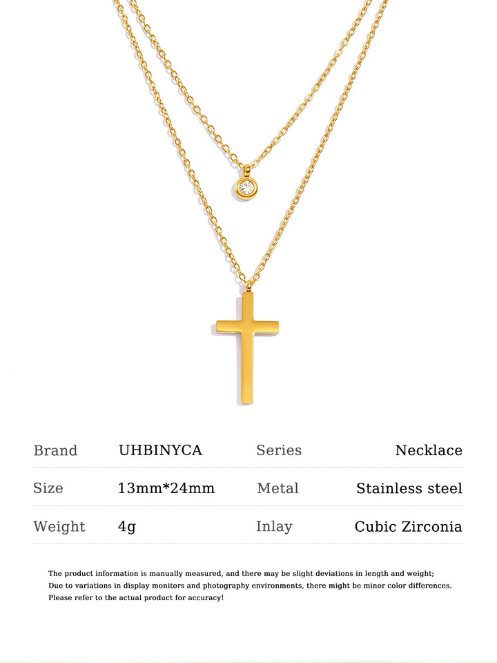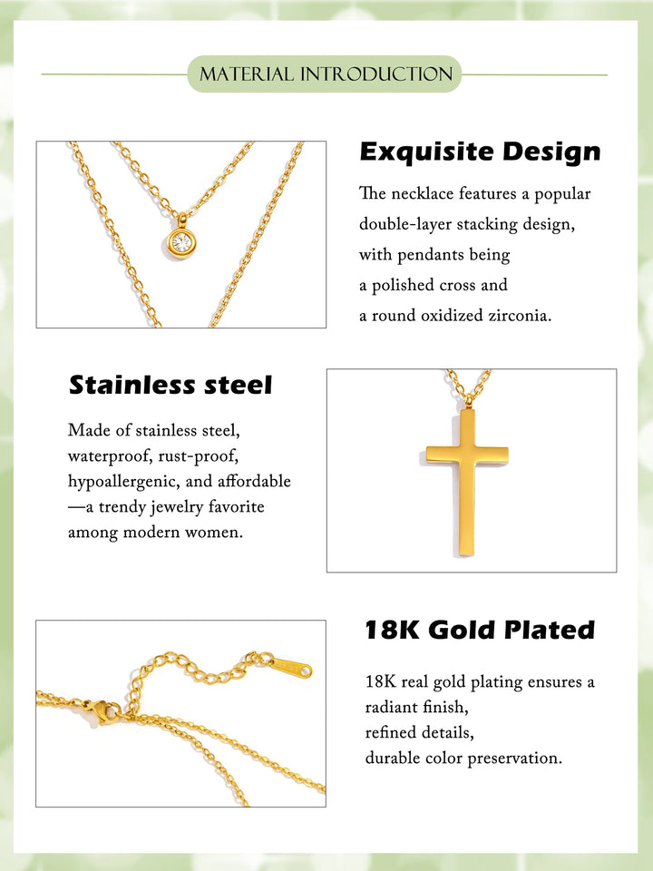 Layered Necklace for Women, Stackable Double pendant with CZ & Cross, Stainless Steel Waterproof Hypoallergenic Trendy Jewelry