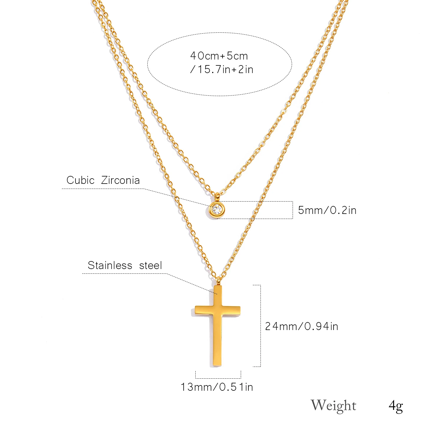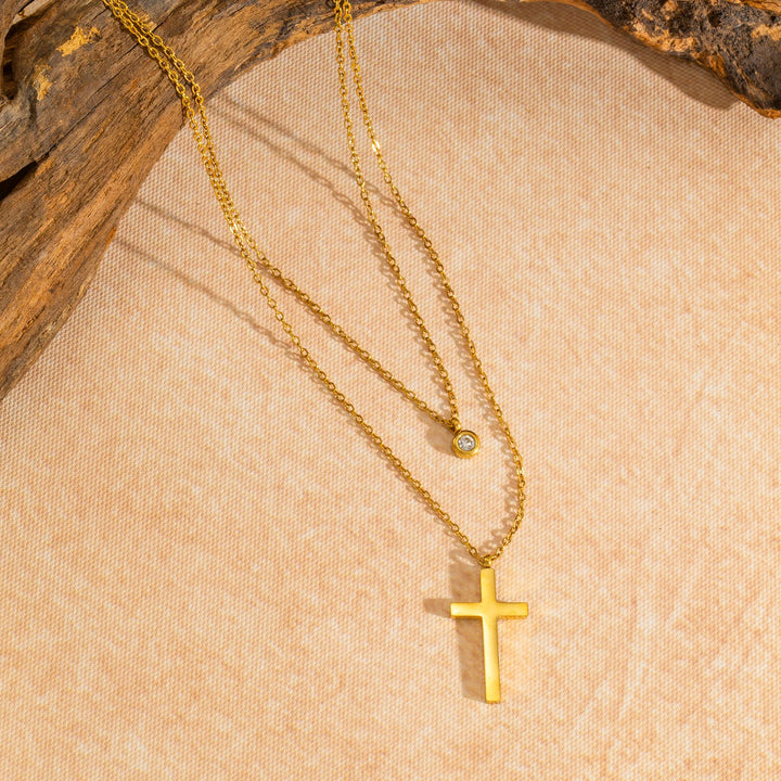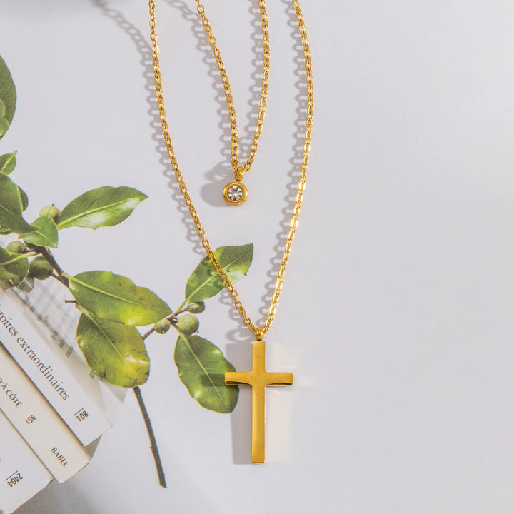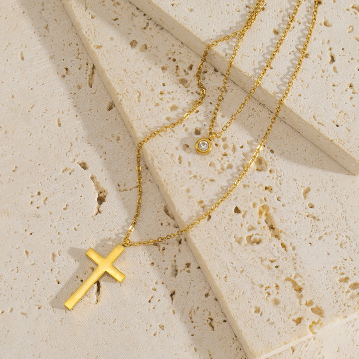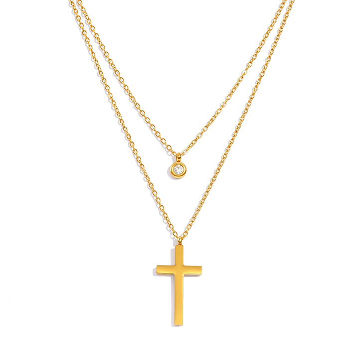 Layered Necklace for Women, Stackable Double pendant with CZ & Cross, Stainless Steel Waterproof Hypoallergenic Trendy Jewelry