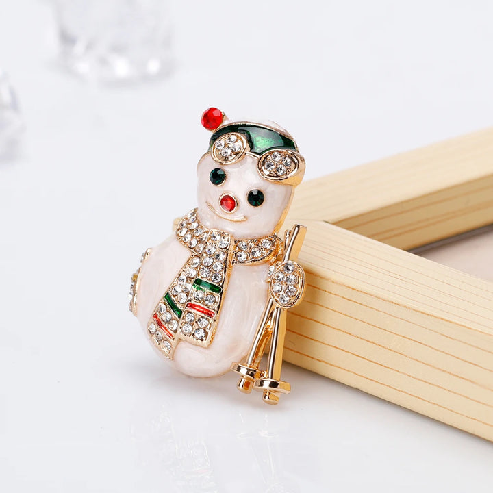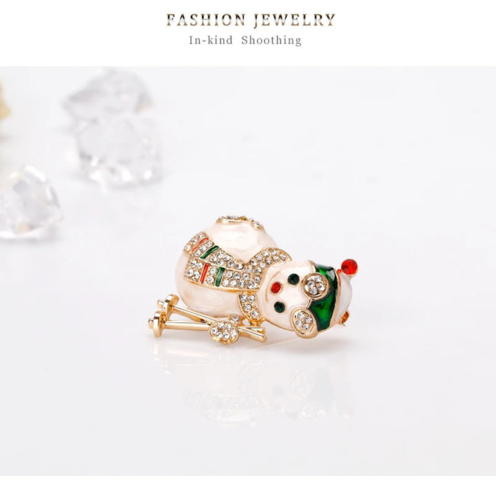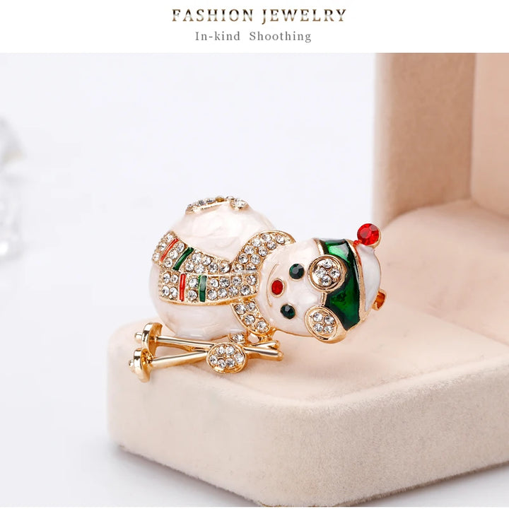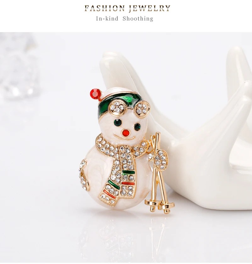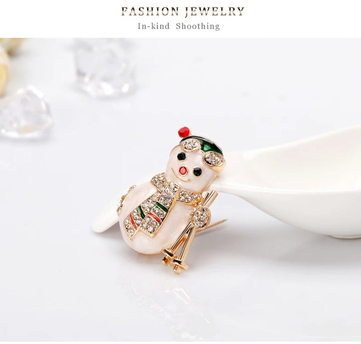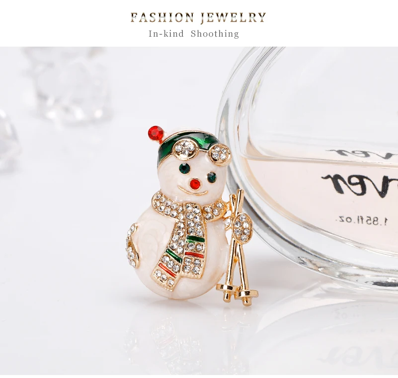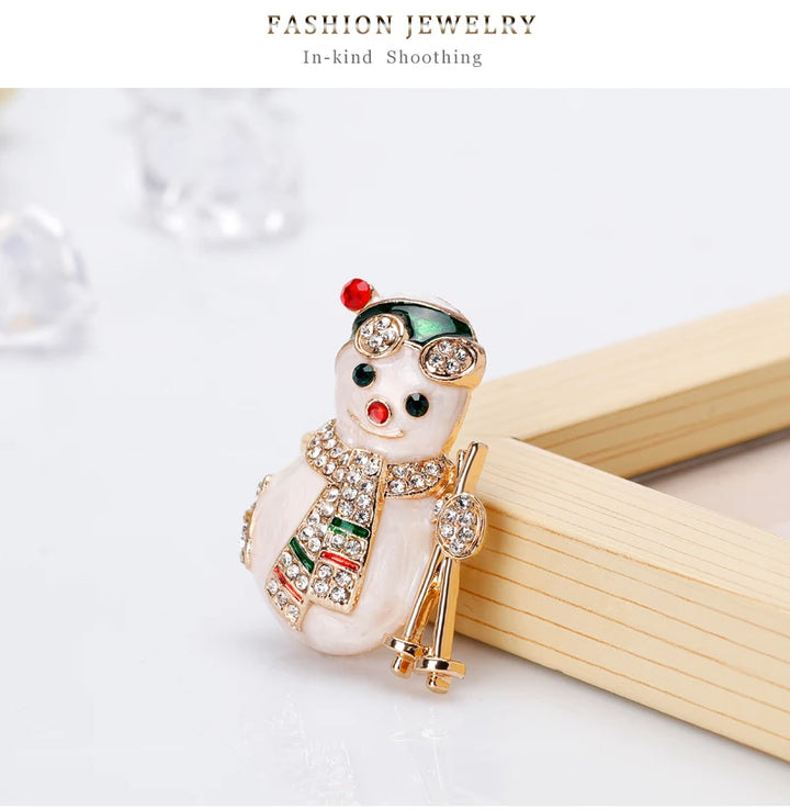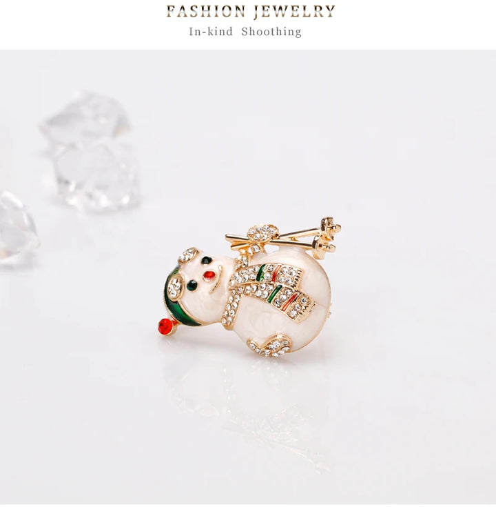 Lovely Enamel Snowman Brooches Women Rhinestone Christmas New Year Brooch Pins Gifts