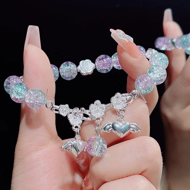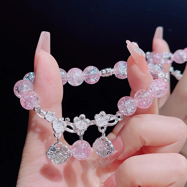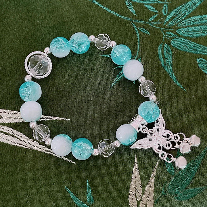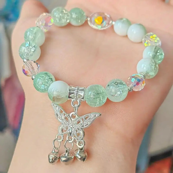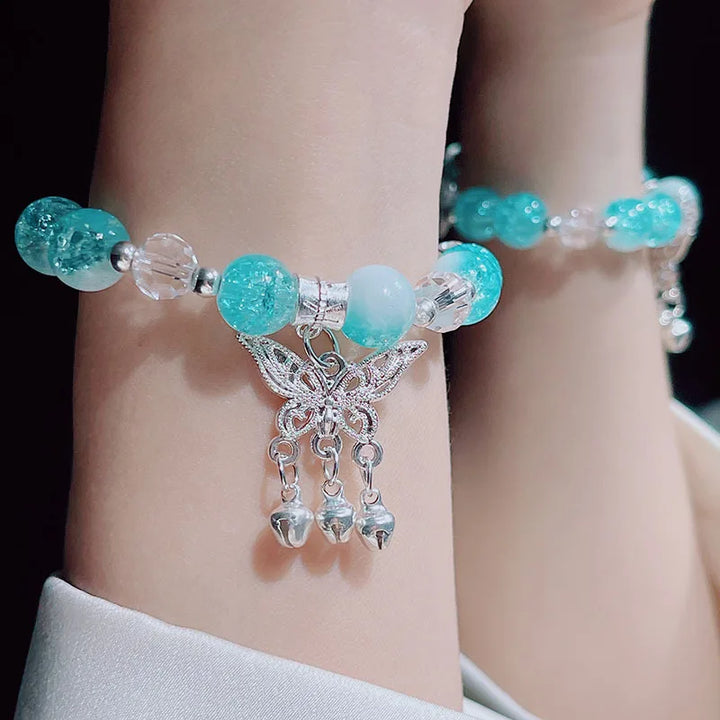 Lovely Women Hand Bracelets Butterfly Heart Bell Tassel Lock Ice Cracked Beaded Glass Beads Stretch Bangle Student Jewelry 1164