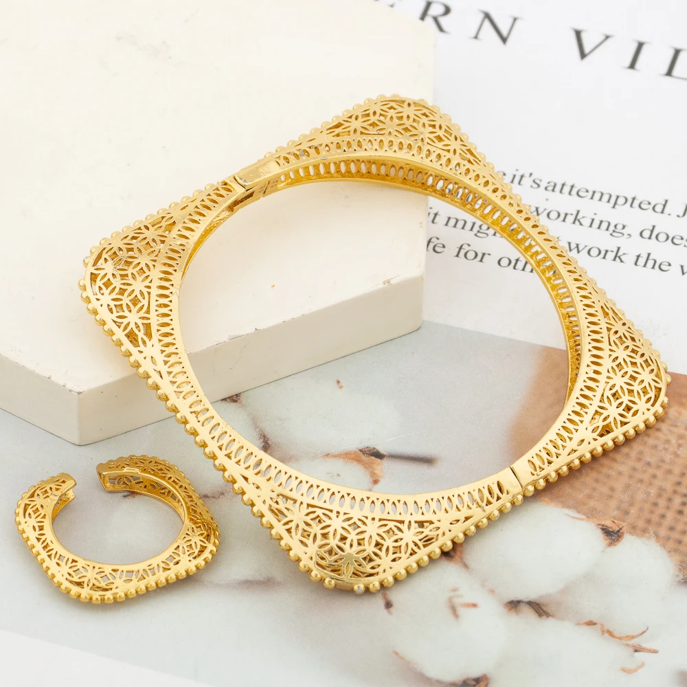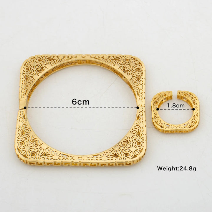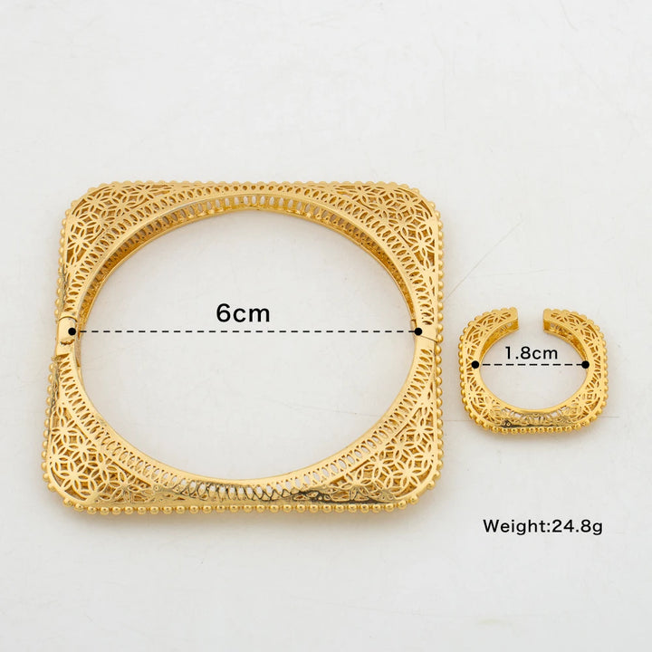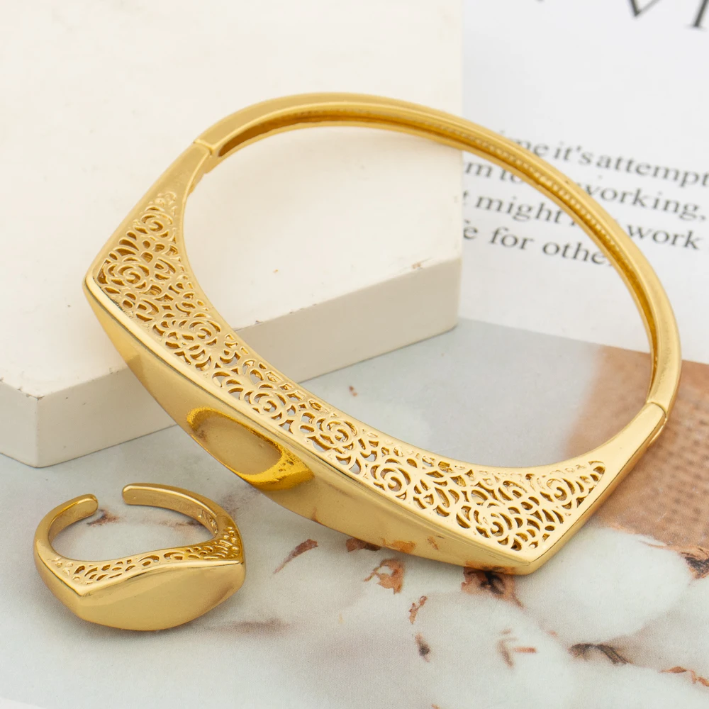 Luxury Bangle with Ring Set for Party Geometry Design Hand Bracelet Finger Ring 2Pcs Set for Weddings Engagement Bangle Jewelry
