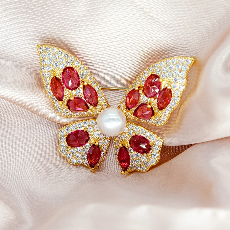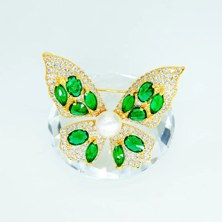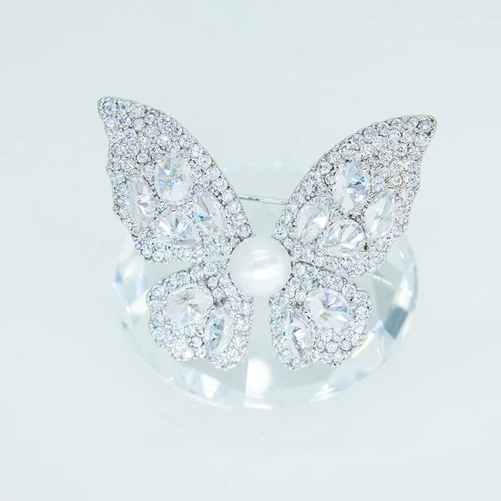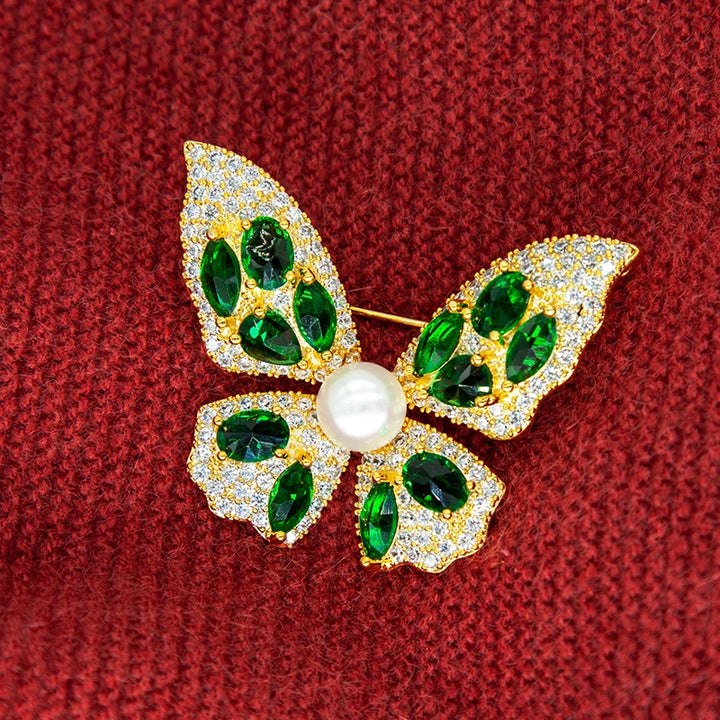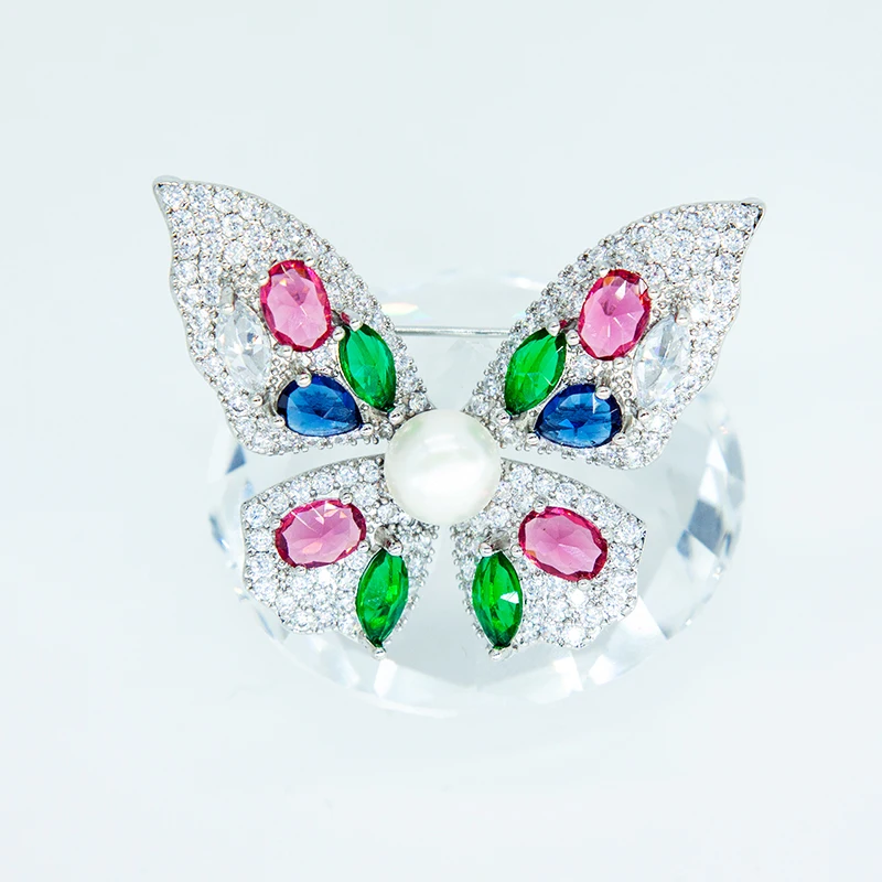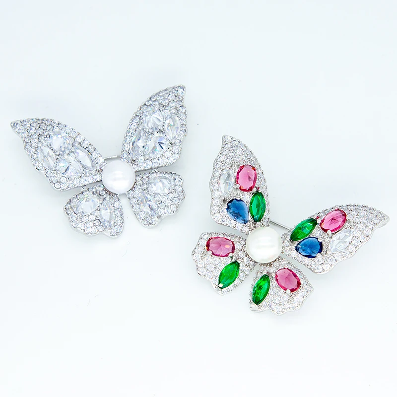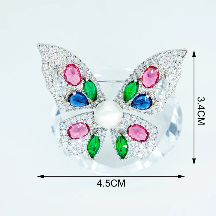 Luxury Butterfly Brooch Design Pearl Animal Pins For Women Zircon Accessories Suit Coat Wedding Gifts Trendy Crystal Jewelry