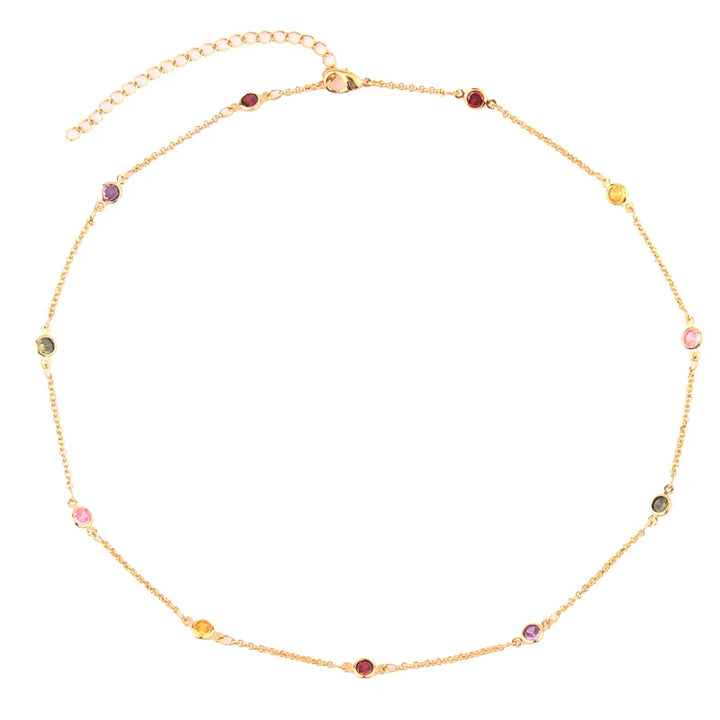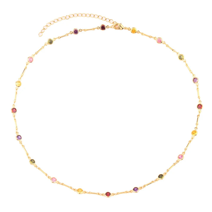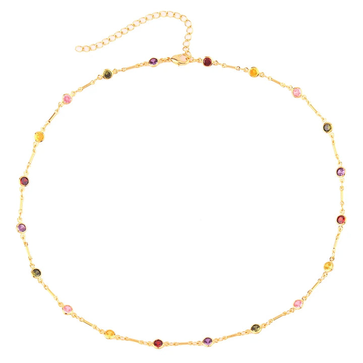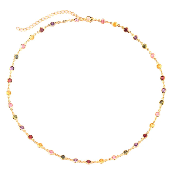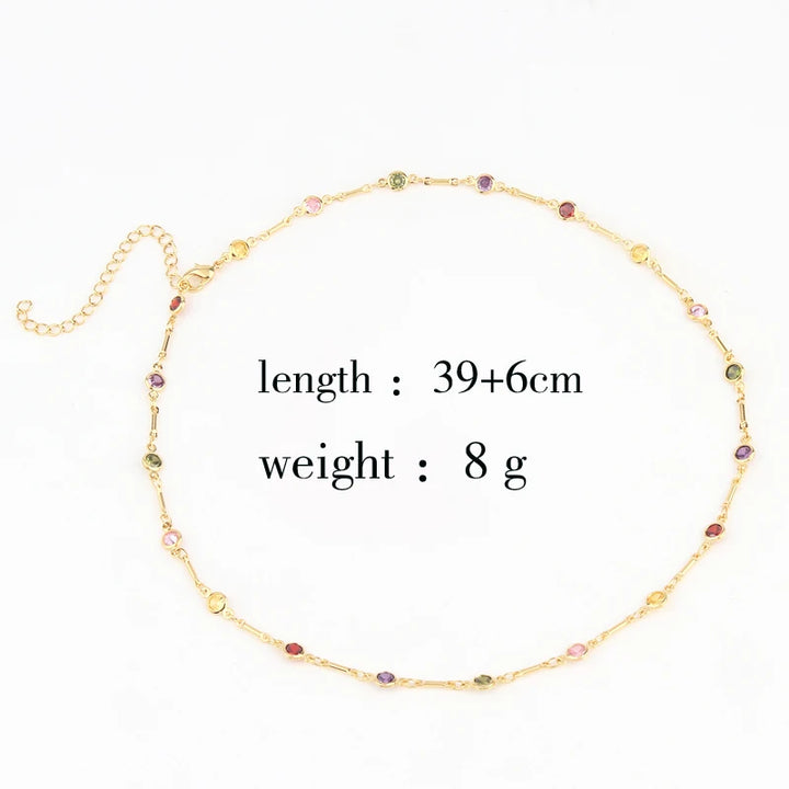 Luxury Christmas Jewelry Gift For Ladies New Rainbow CZ Tennis Chain Choker Necklace Colorful Crystal Necklace