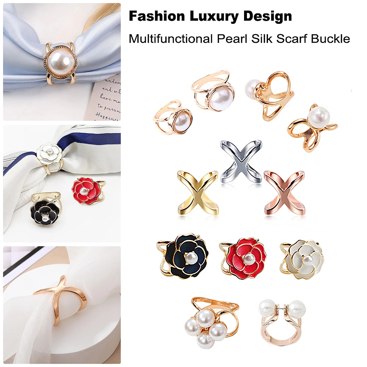 Luxury Pearl Brooch Scarf Clip - Multifunctional Silk Scarf Buckle Jewelry Accessories for Women Fashion Gift
