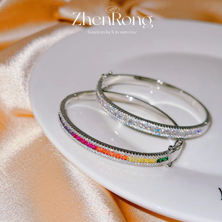 Luxury Rainbow Tourmaline Women's Bracelets Full of High Carbon Diamonds Bangles Female Fine Jewelry Bright Wedding Party