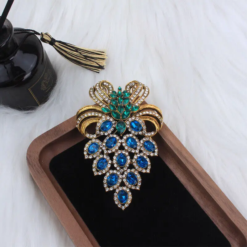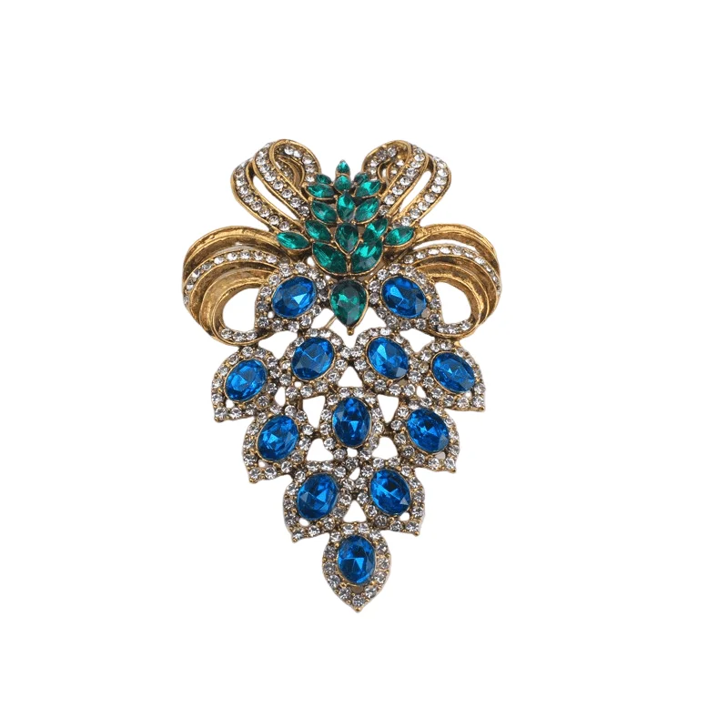 Luxury Series Fashion Christmas Gift Antique Jewelry Mens Suit Lapel Pin Exquisite Brooch Blue Rhinestone Badges