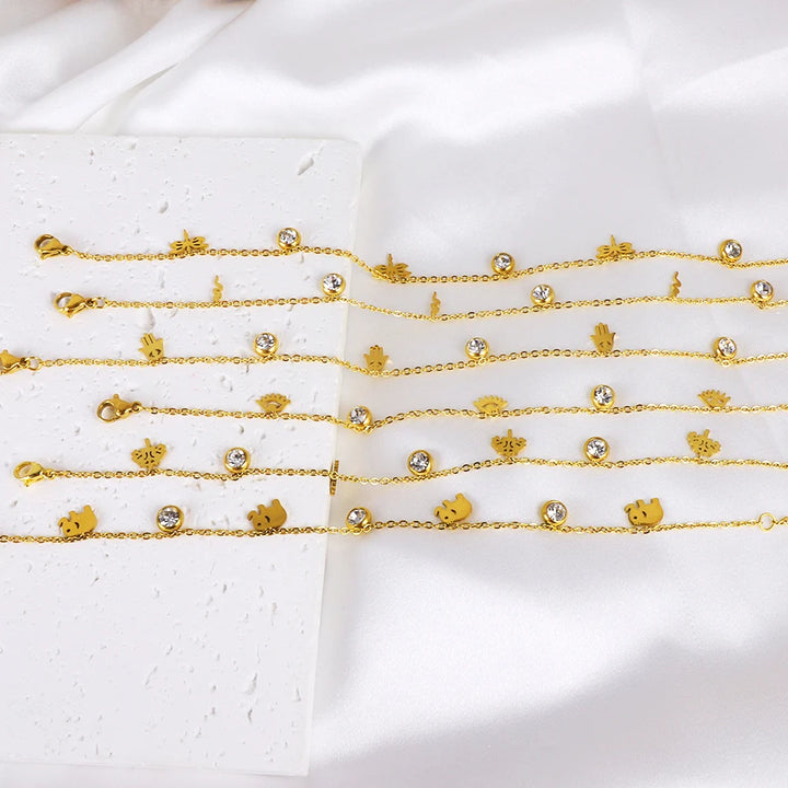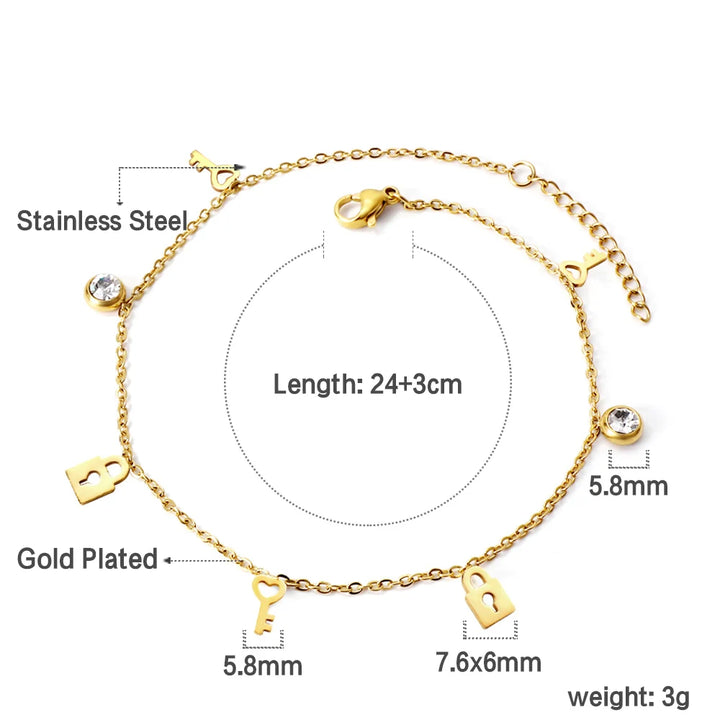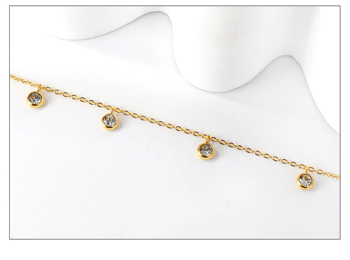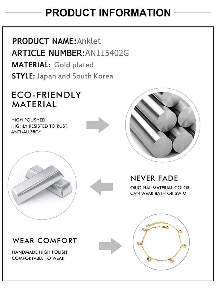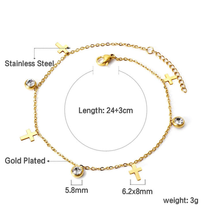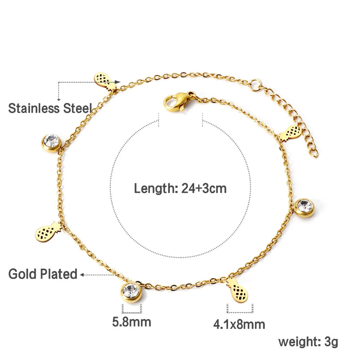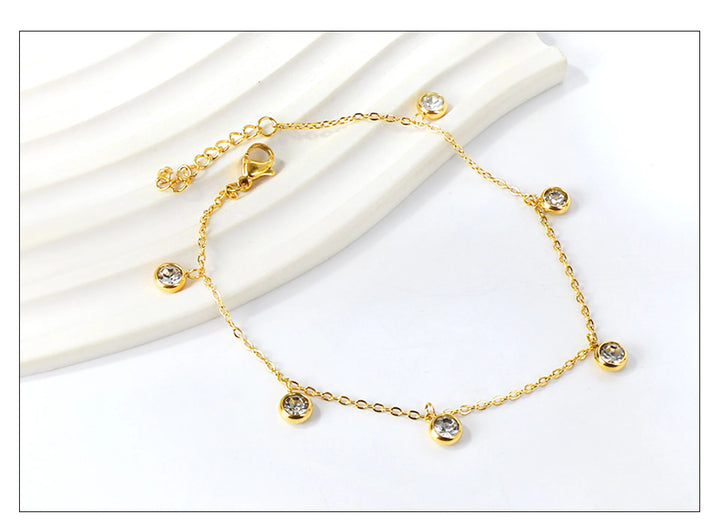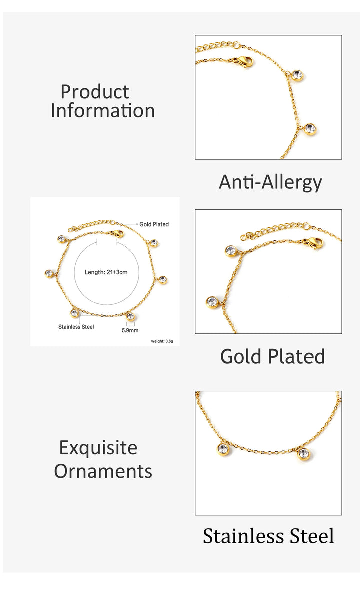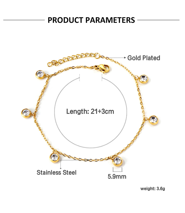 LUXUSTEEL Stainless Steel Anklets Women Golden Plated Round CZ Crystal Rhinestone Charm Allergy Free Foot Chain Beach Jewelry