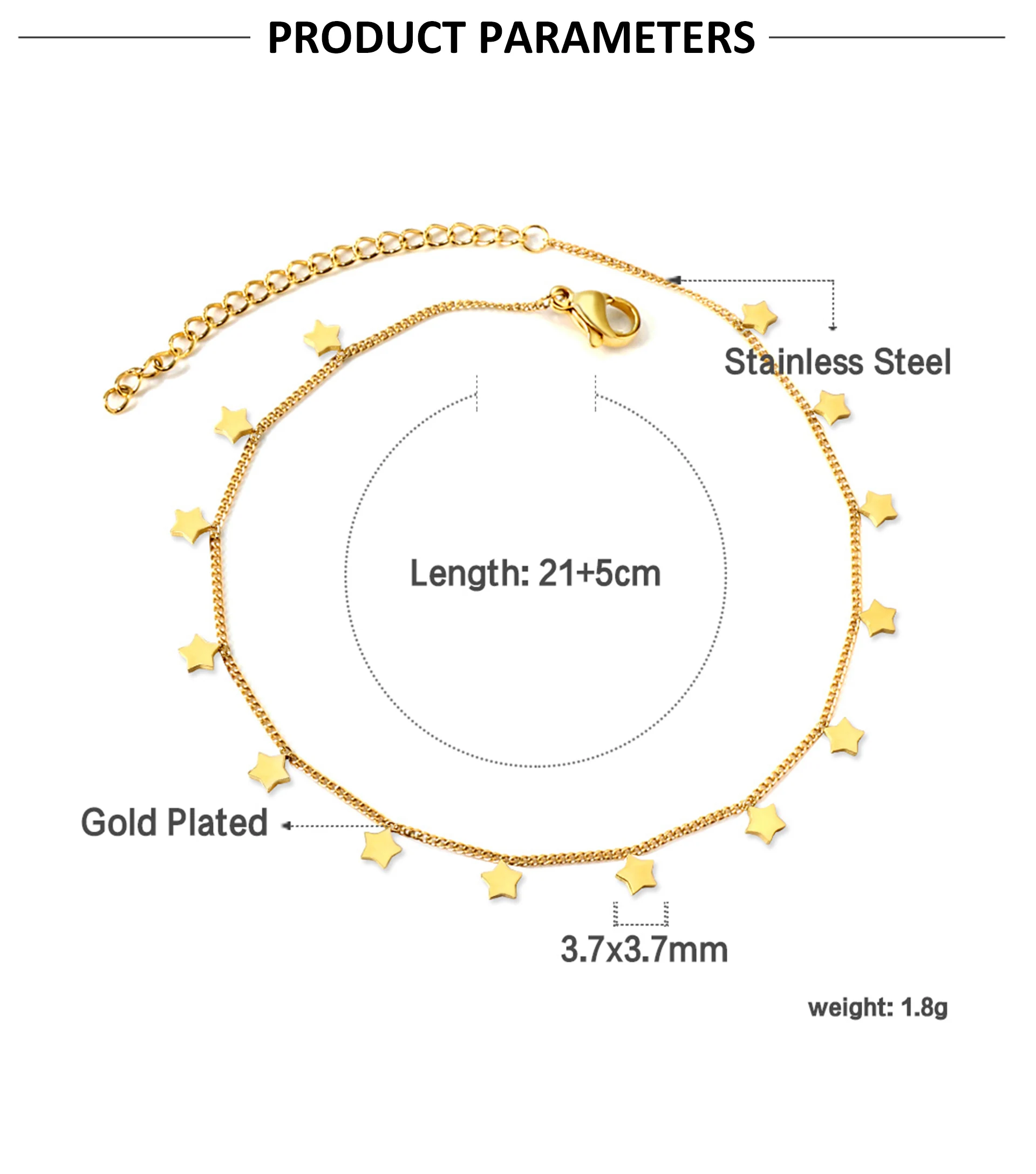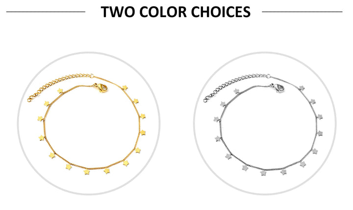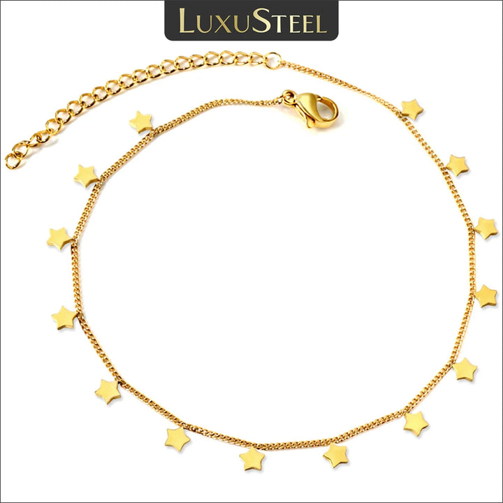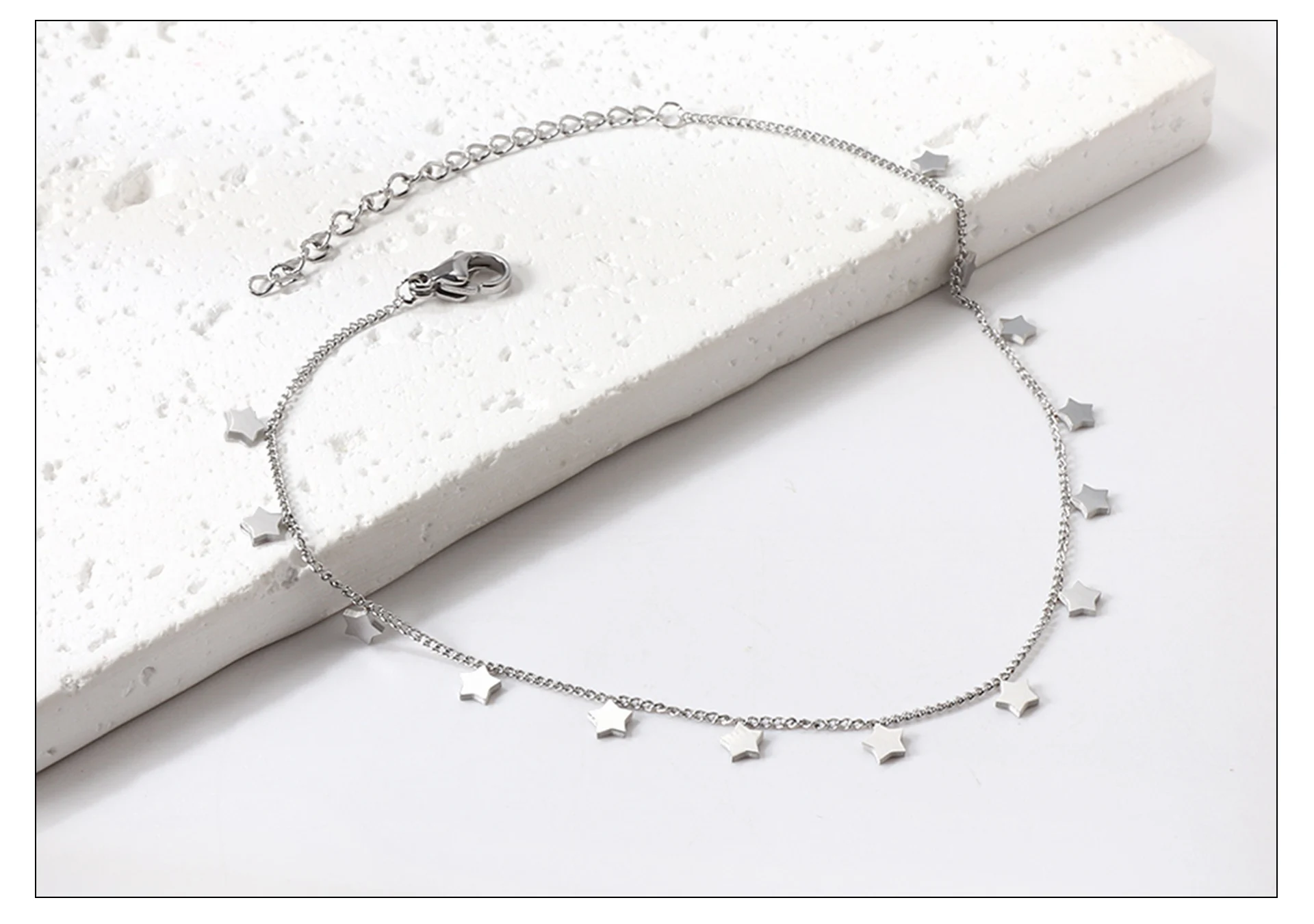 LUXUSTEEL Tiny Small Stars Pendant Anklets for Women Stainless Steel Dainty Charm Ankle Bracelet Barefoot Sandals Foot Jewelry