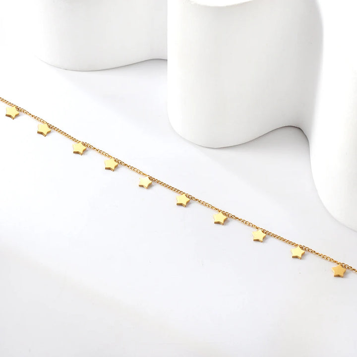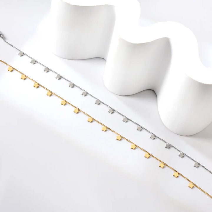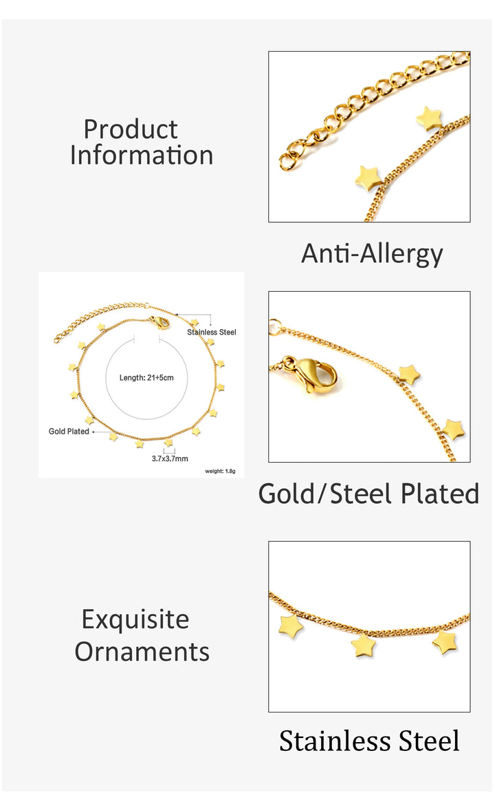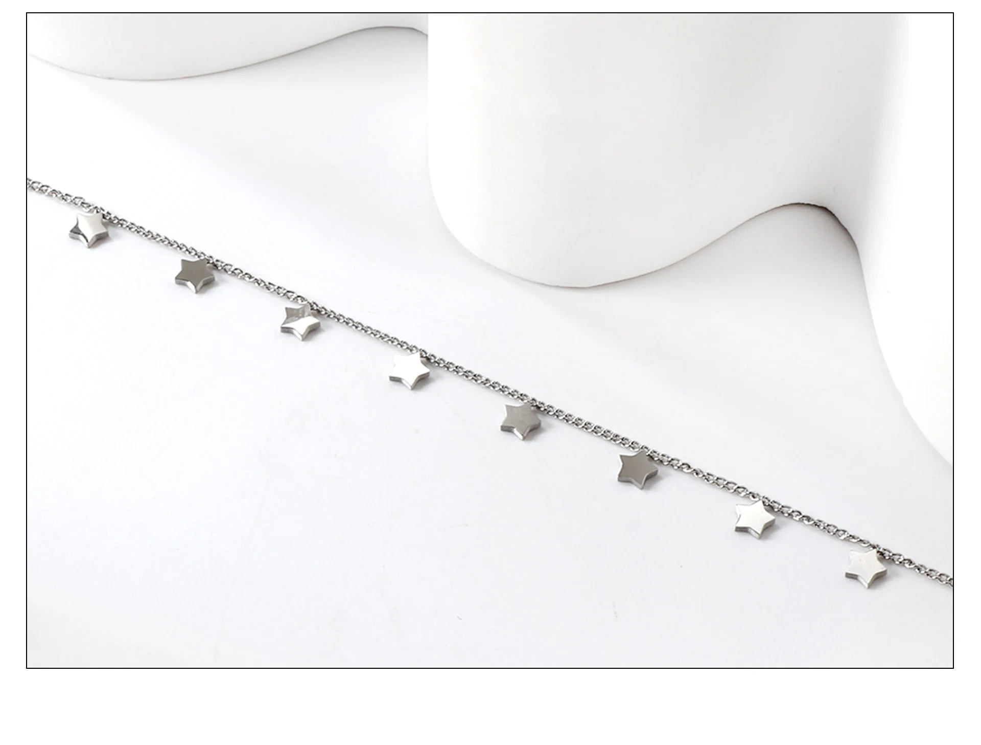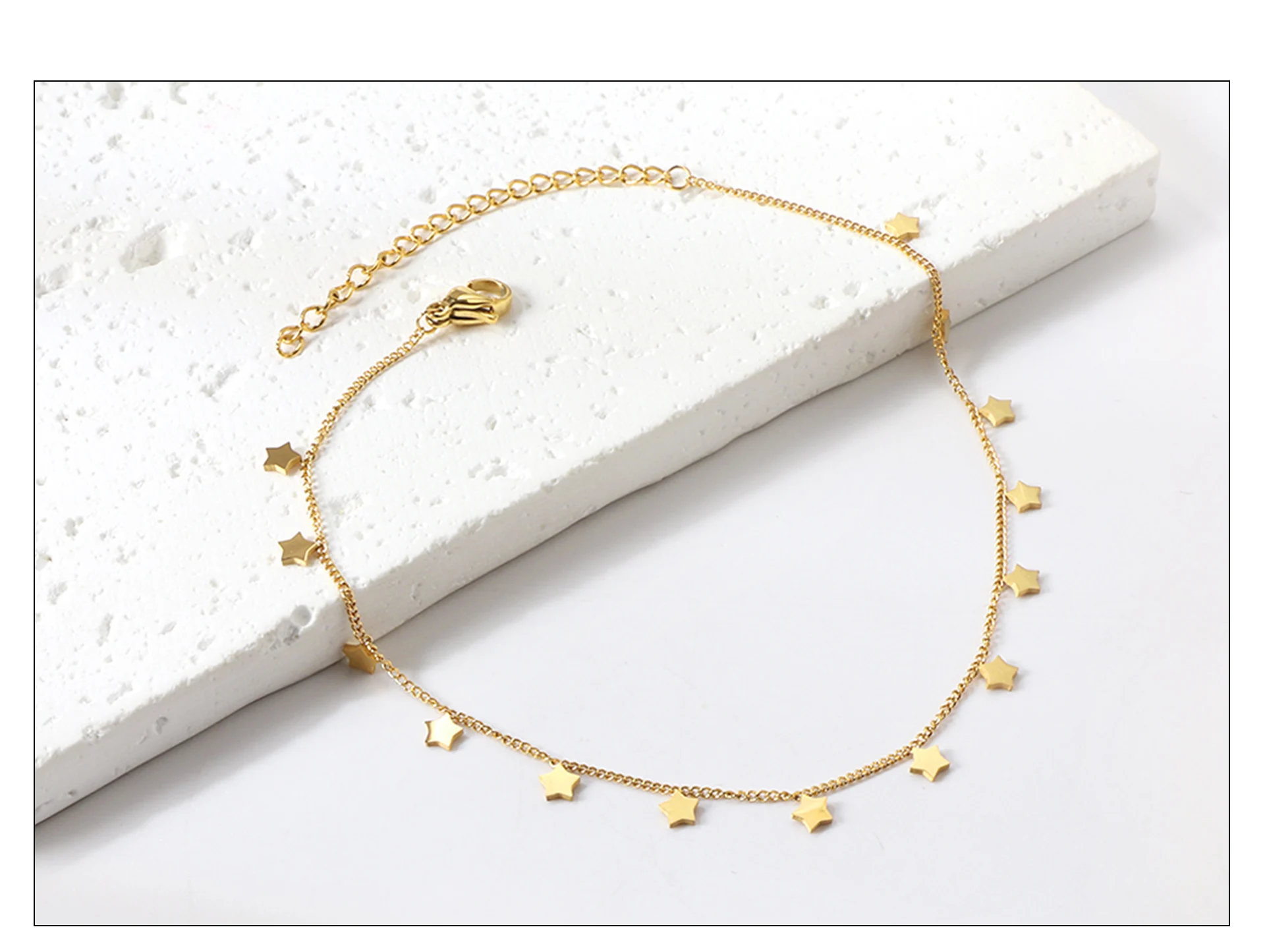 LUXUSTEEL Tiny Small Stars Pendant Anklets for Women Stainless Steel Dainty Charm Ankle Bracelet Barefoot Sandals Foot Jewelry