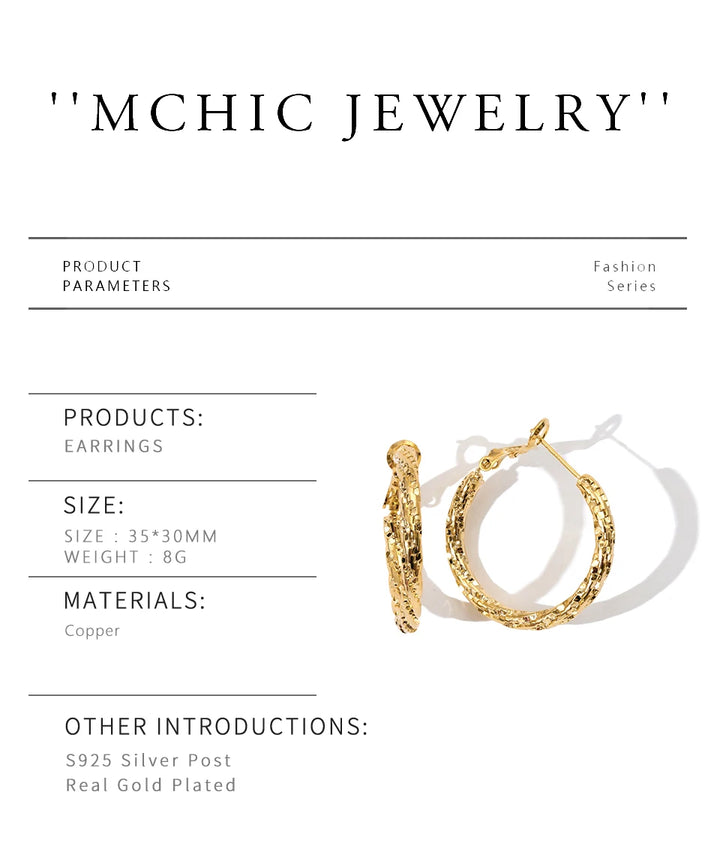 Mchic 35*30mm Personalized Round Daily Hoop Earrings Anti Allergic Metal Minimal Versatile Copper Jewelry Wholesale