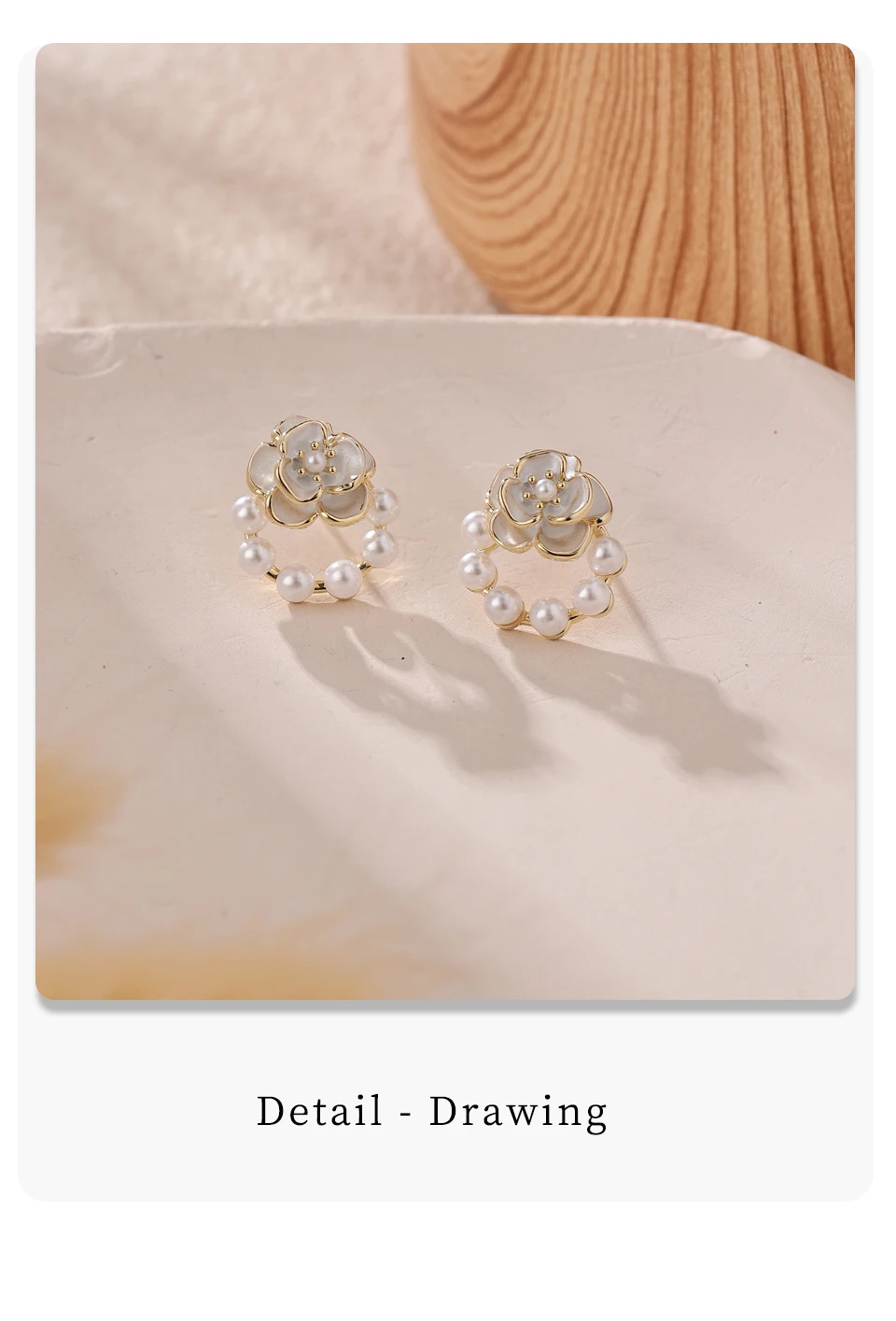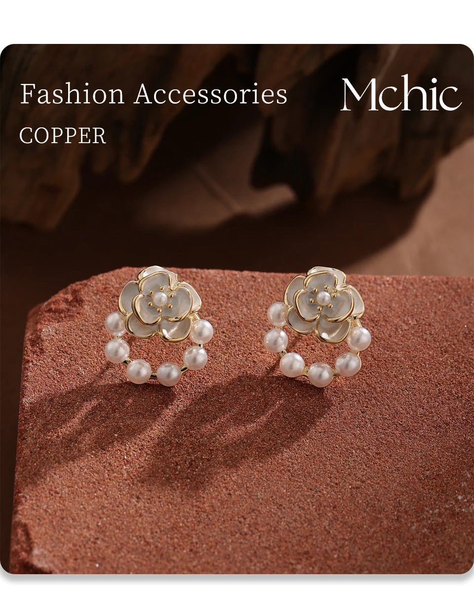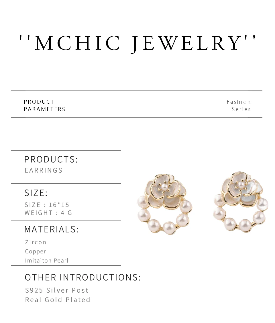 Mchic Earrings Camellia Pearl Pendant High-end Exquisite Niche Design Fashionable Jewelry Wholesale