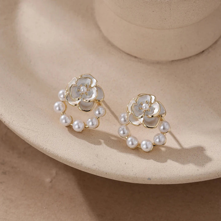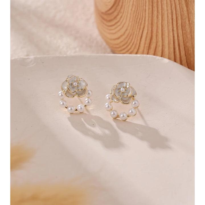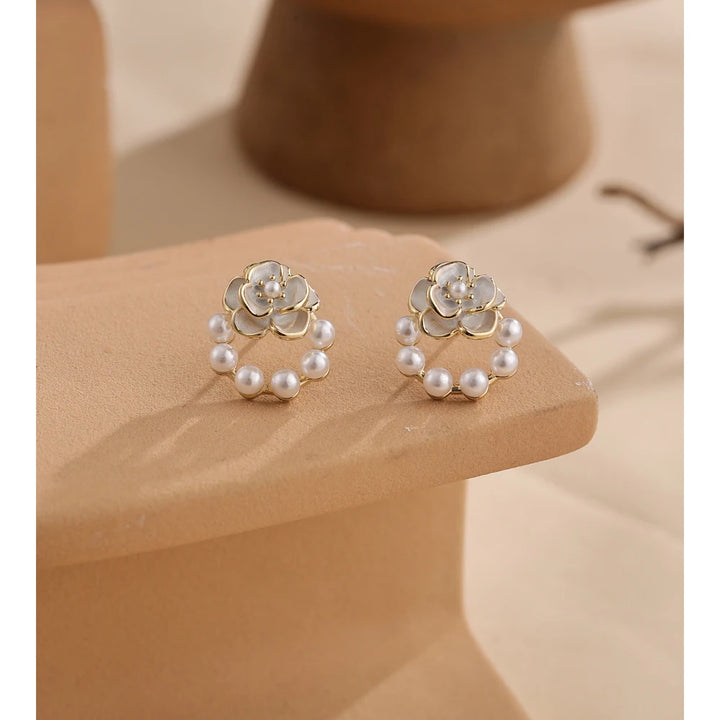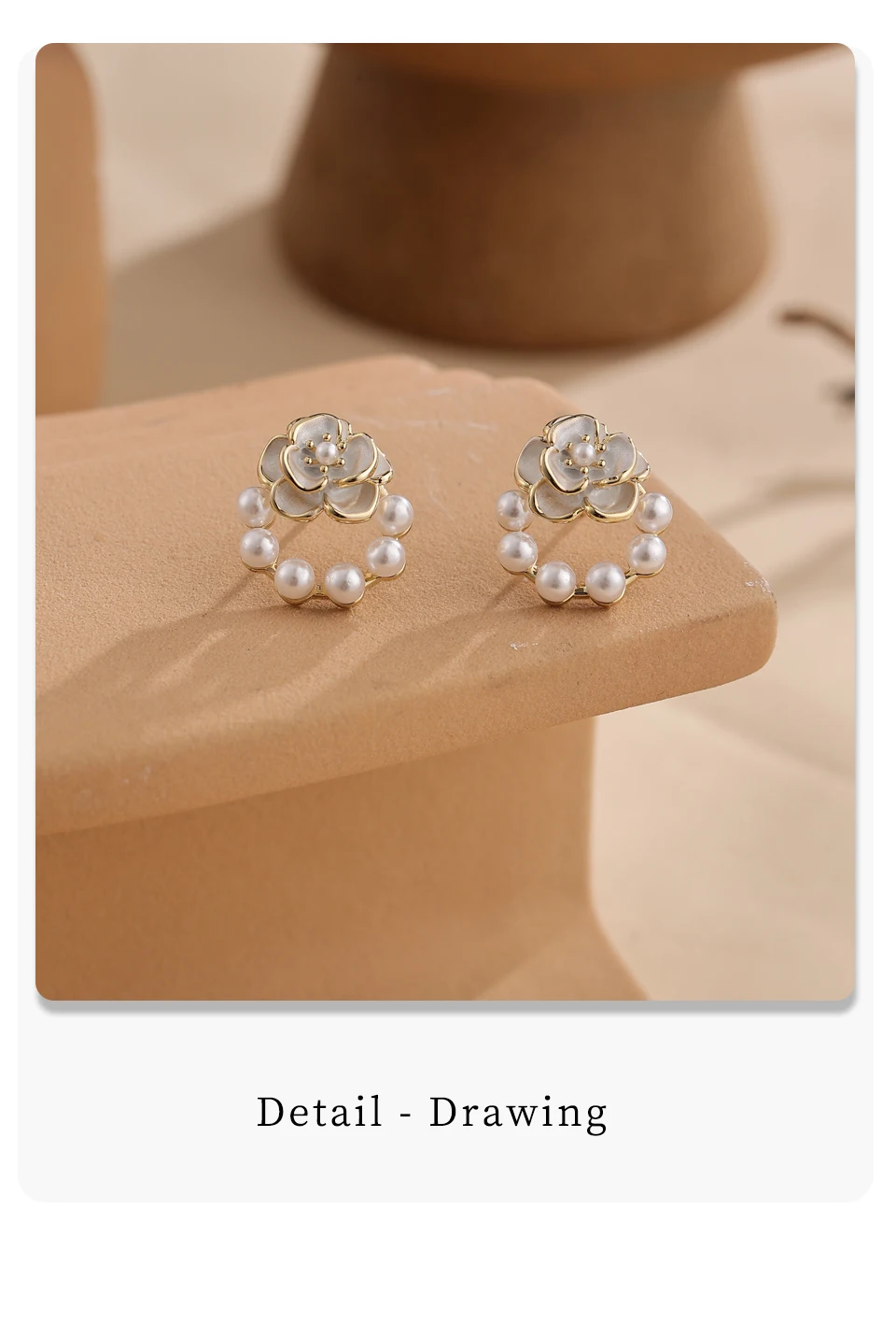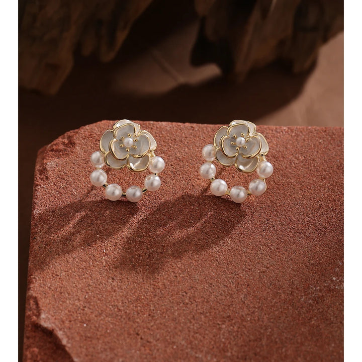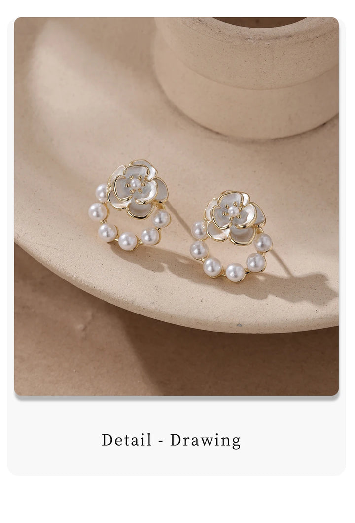 Mchic Earrings Camellia Pearl Pendant High-end Exquisite Niche Design Fashionable Jewelry Wholesale