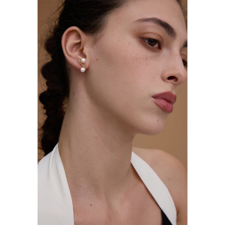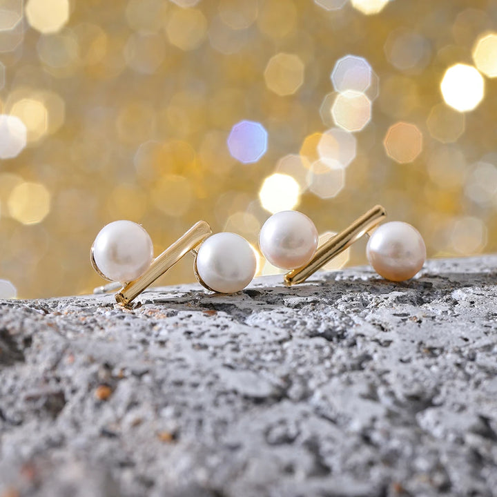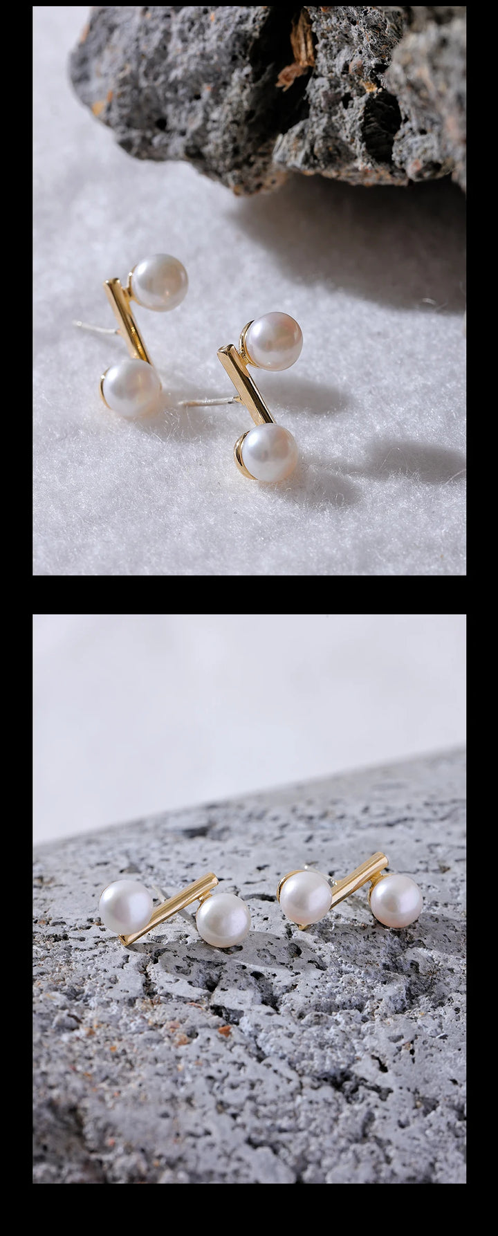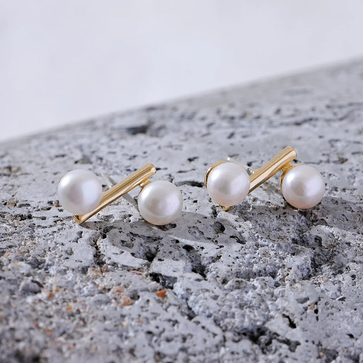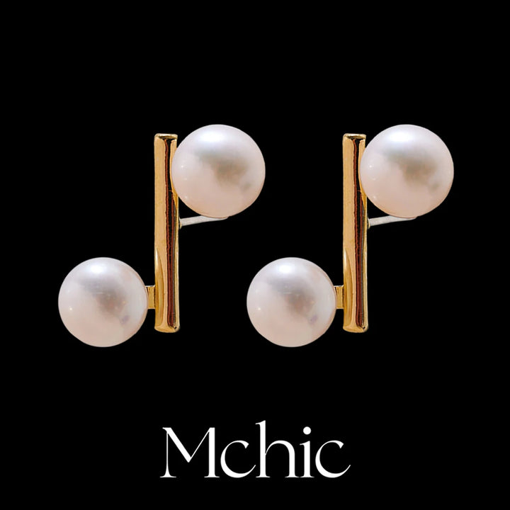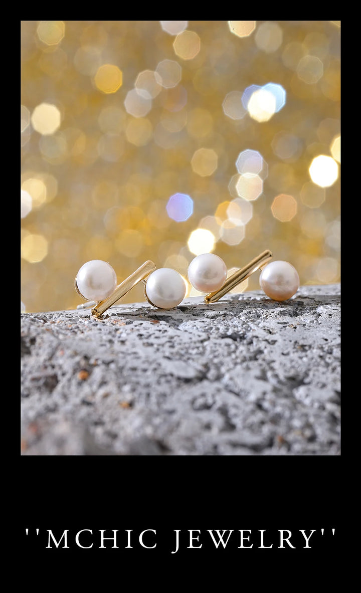 Mchic Luxury Natural Pearl Geometric Stud Earrings for Women Gold Color 14K Real Plated Copper Exquisite Jewelry Bijoux Gift