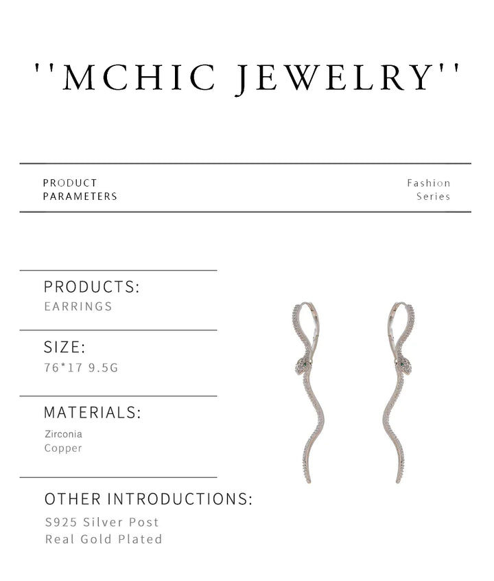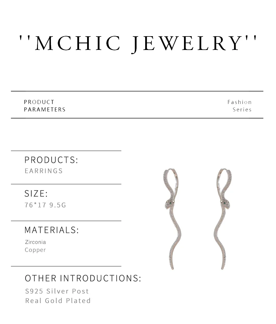 Mchic New in Earrings Wedding Luxury Designer Choice Jewelry Women's Beautiful Evil Serpentine Shaped Zirconia Gift