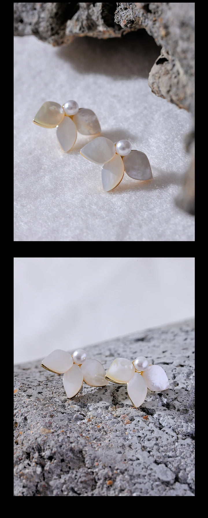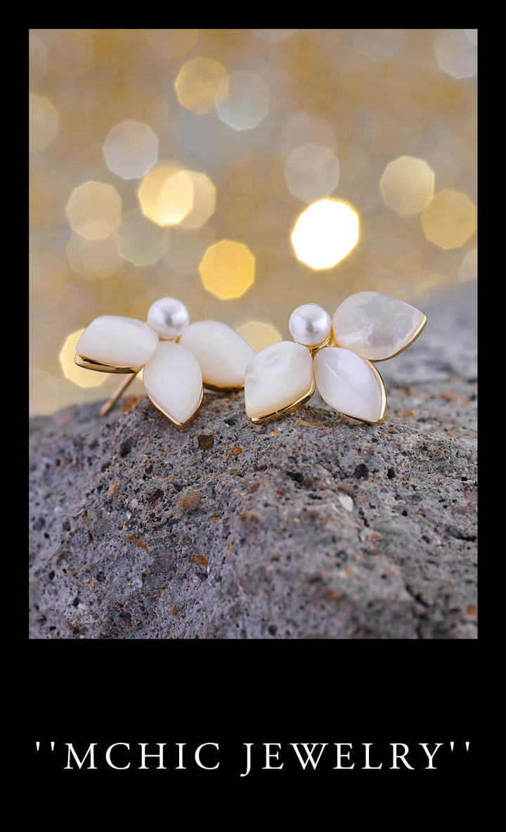 Mchic Thicker Natural Shell Flower Stud Earrings Trendy Unique Chic Daily Fashion Copper Jewelry for Women Gift Wholesale