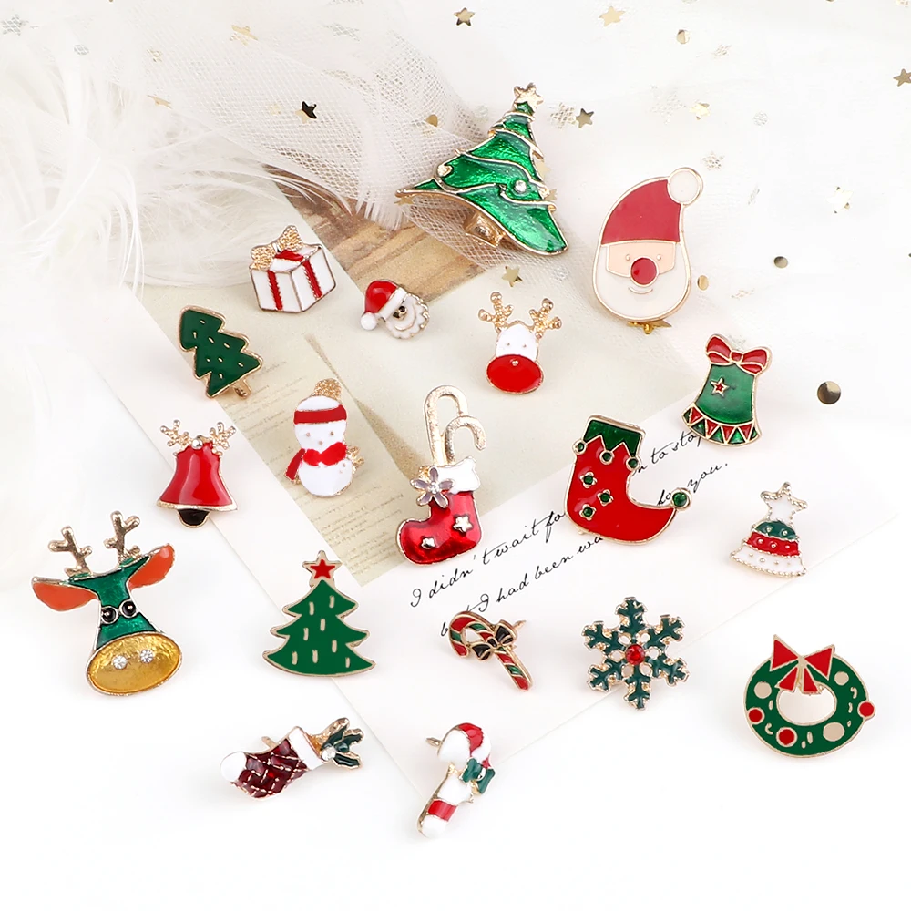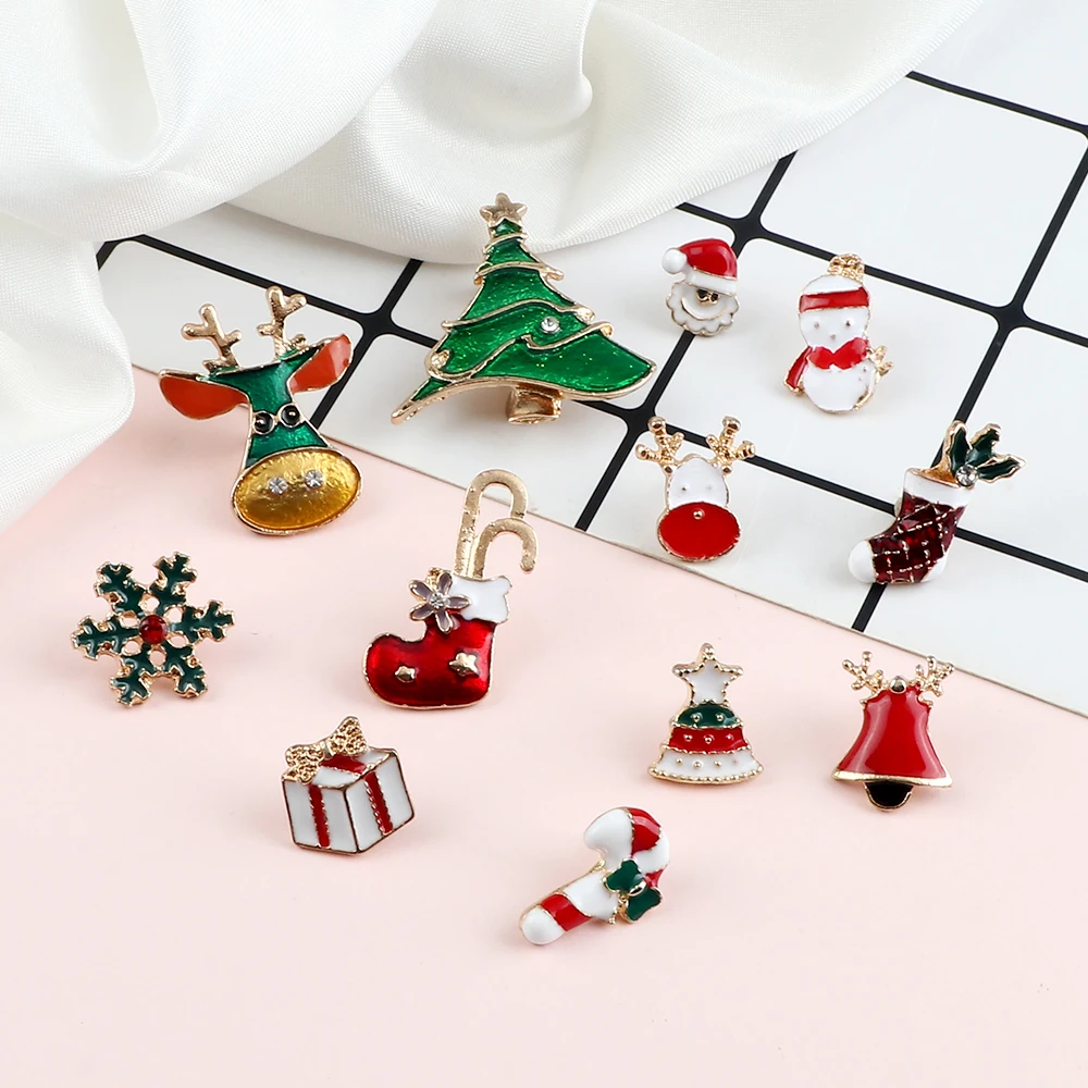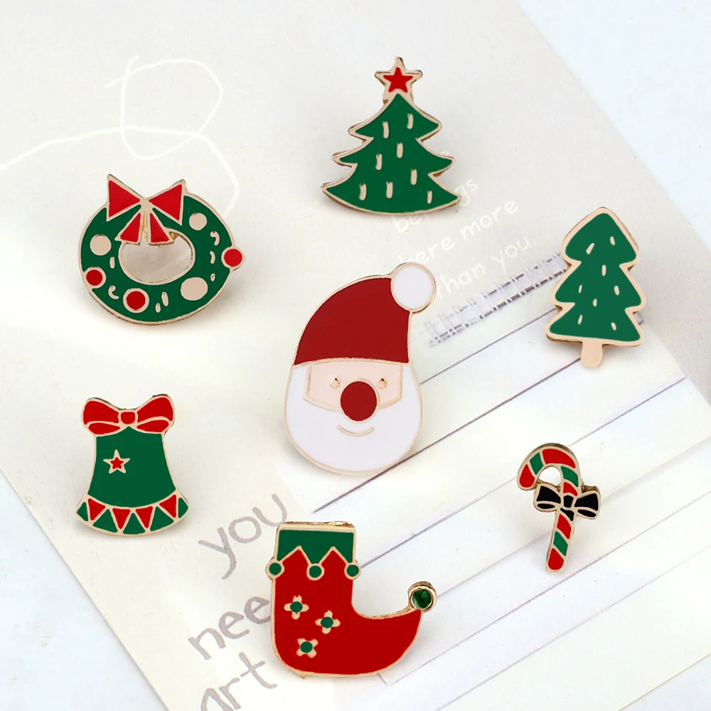 Merry Christmas Brooch Cartoon Santa Claus Christmas Tree Enamel Pin Mini Snowman Elk Christians Lapel Badge Jesus Jewelry Gifts