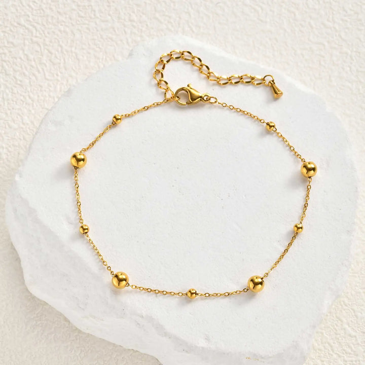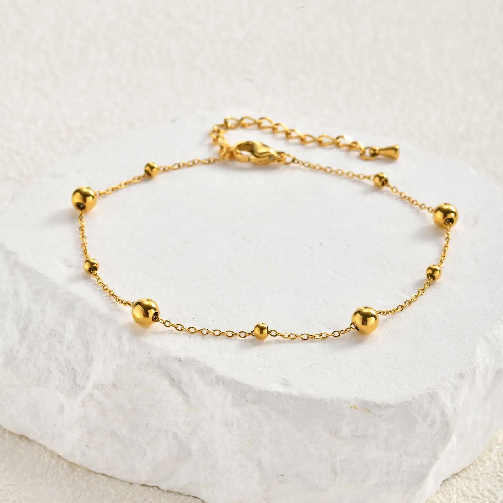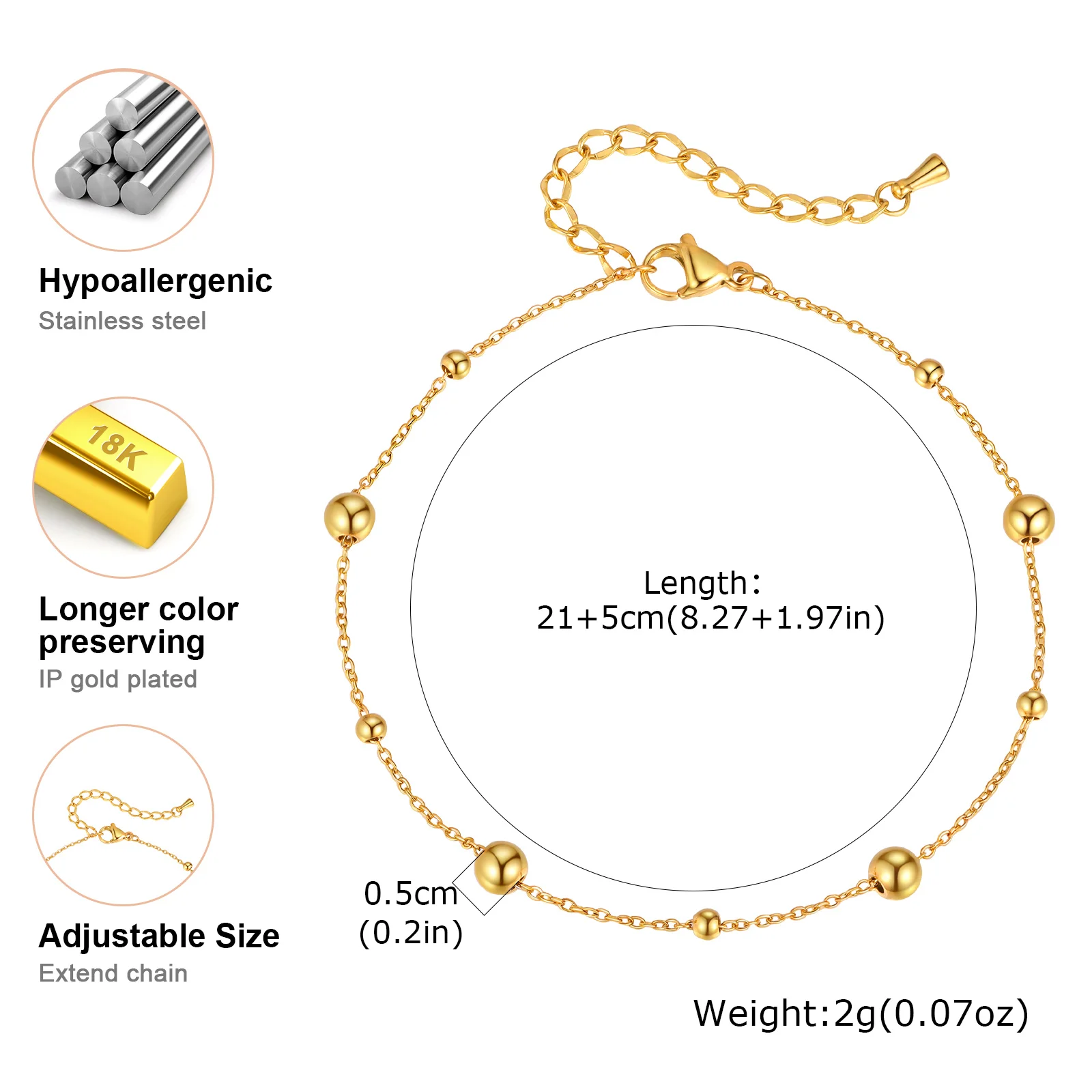 Minimalist Bead Anklet for Women,18K Gold Plated Stainless Steel Flat Rolo Chain Anklets,Fashion Jewelry Gift
