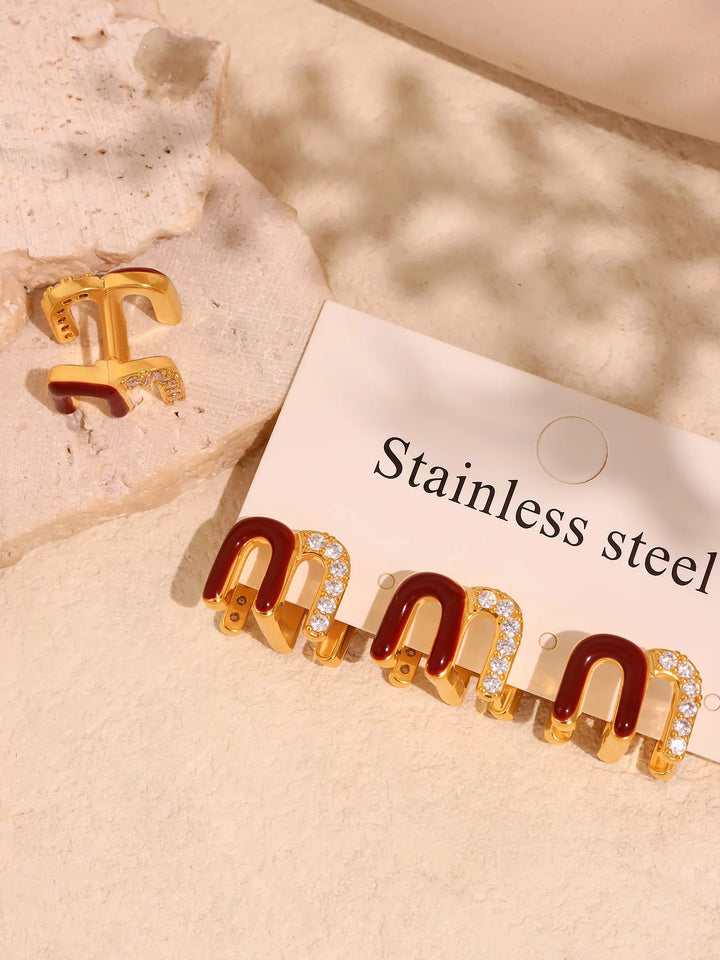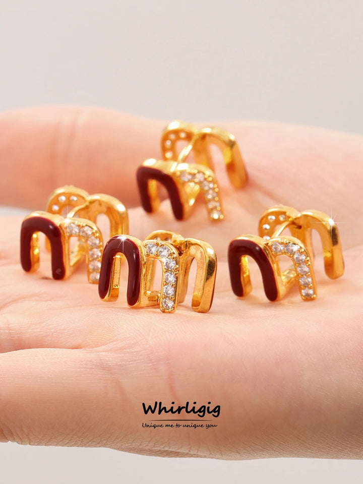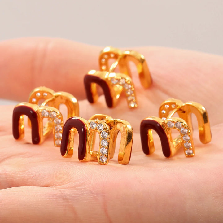 Modern Red Enamel Earrings For Women Copper Gold Plated Female Ear Studs Girls Charming Daily Jewelry