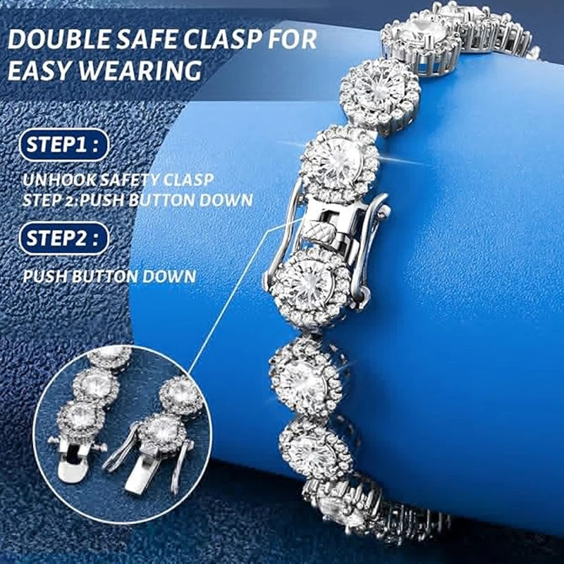 Morganite tennis bracelet - 5mm morganite bracelet, women's lab diamond bracelet, 18k white gold tennis bracelet, sterling silve