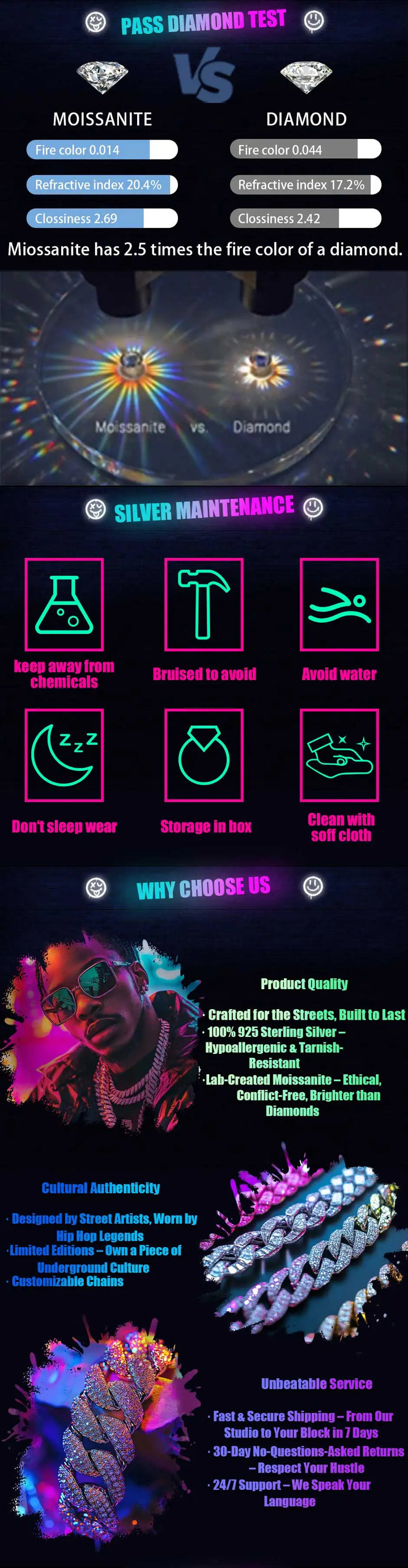 Combines luxury elegance with hip-hop edge, perfect for both daily outfits and statement-making events.
