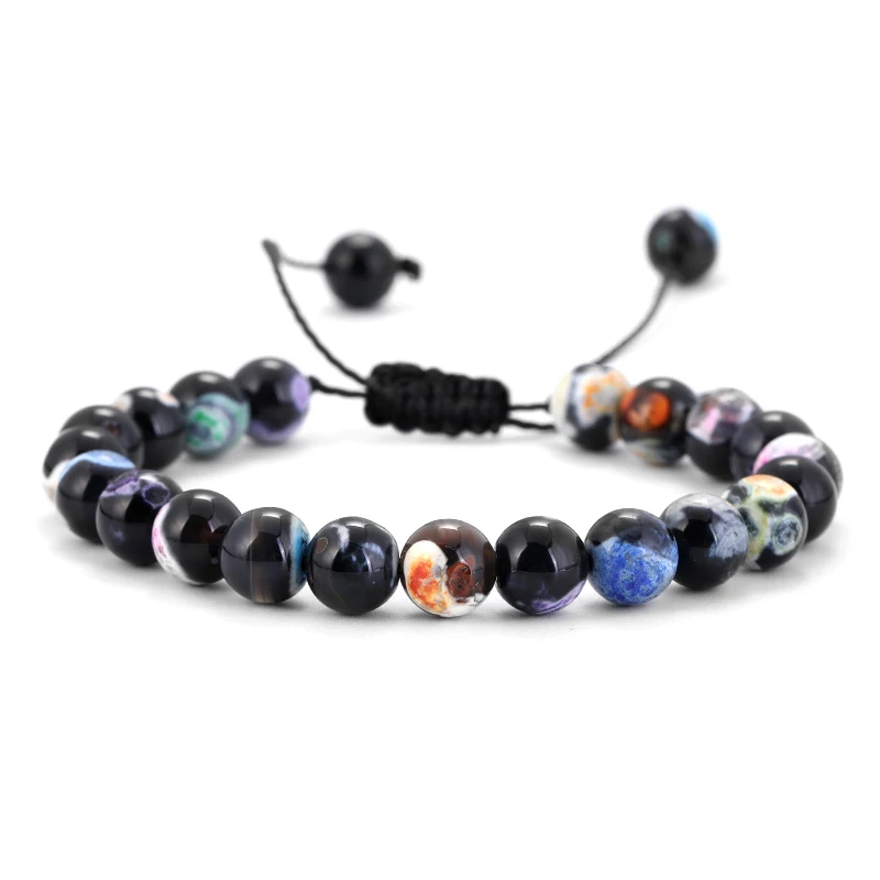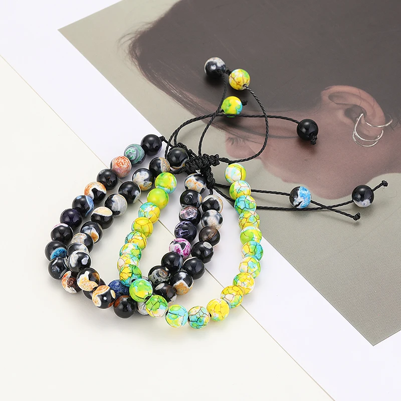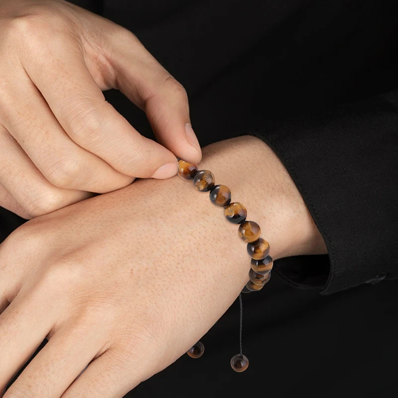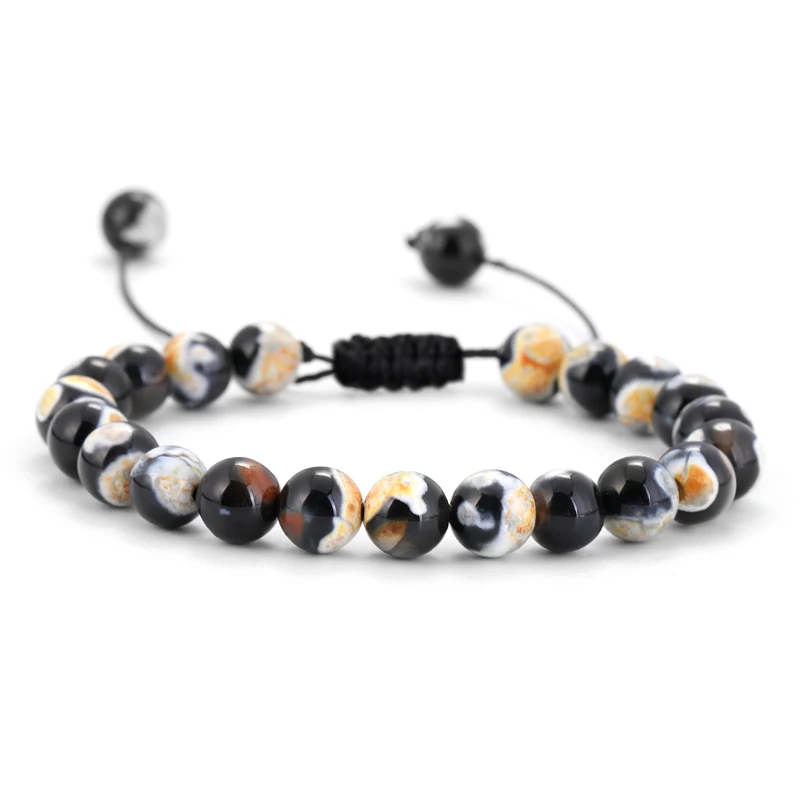 Natural Lava Stone Black Stone Tiger Eye Beads Bracelet Adjustable Braided Rope Bracelet Men Women Yoga Healing Gift Jewellery