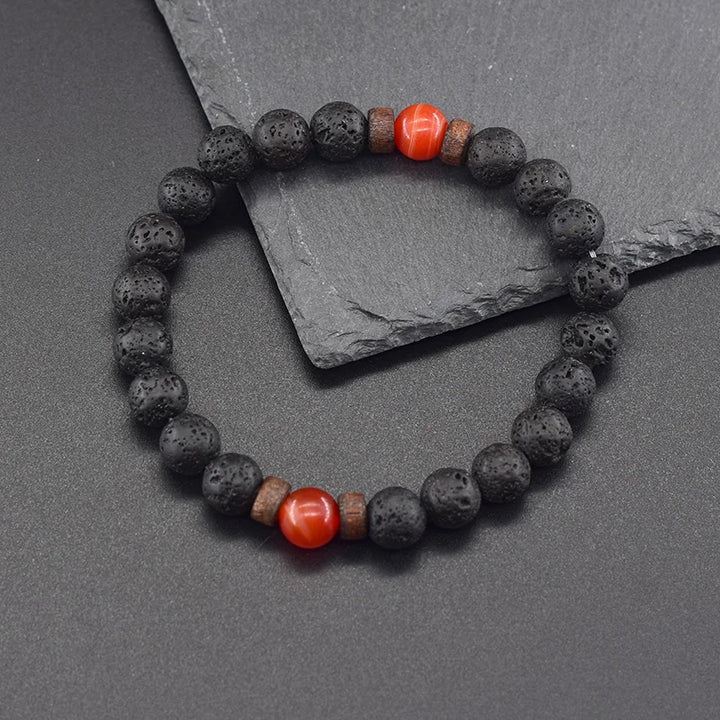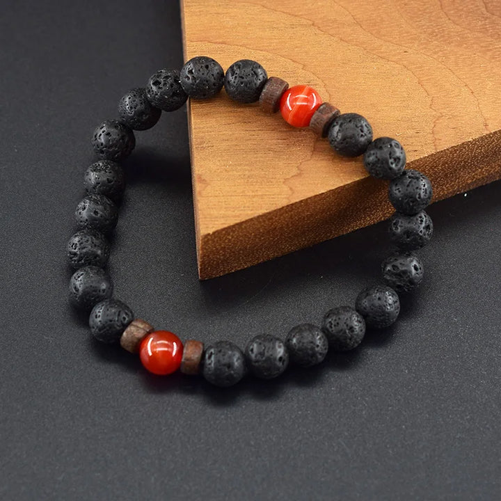 Natural Stone Red Stripe Agate Beads Bracelet Women Men Genuine Red Carnelian Round Bangle Natural Volcanic Stone Bracelet Gift