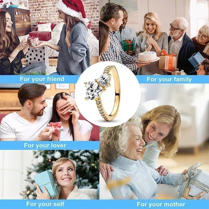 New 925 sterling silver gold ring exquisite sparkling luxury heart-shaped crown ring women's jewelry fashion holiday gift