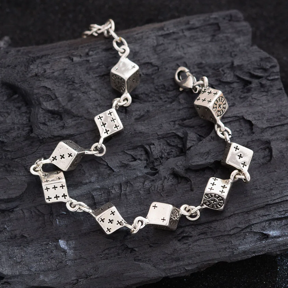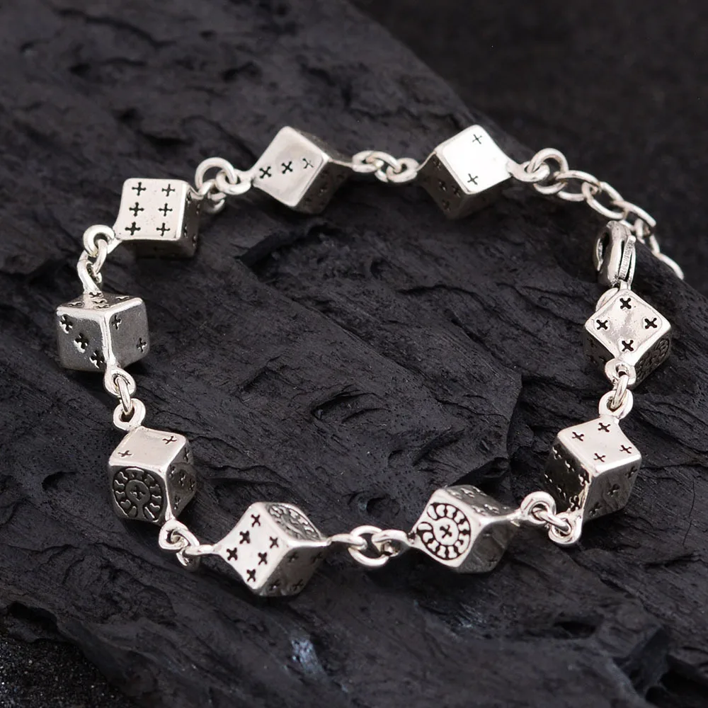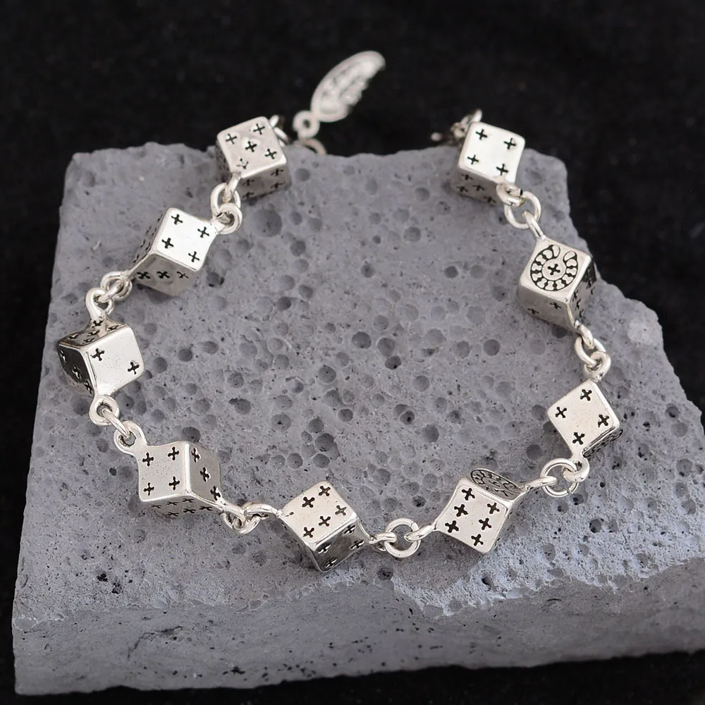 New Arrival Trendy Roman Numeral Dice Cube Retro Thai Silver Female Bracelet Jewelry For Women Birthday Gifts No Fade