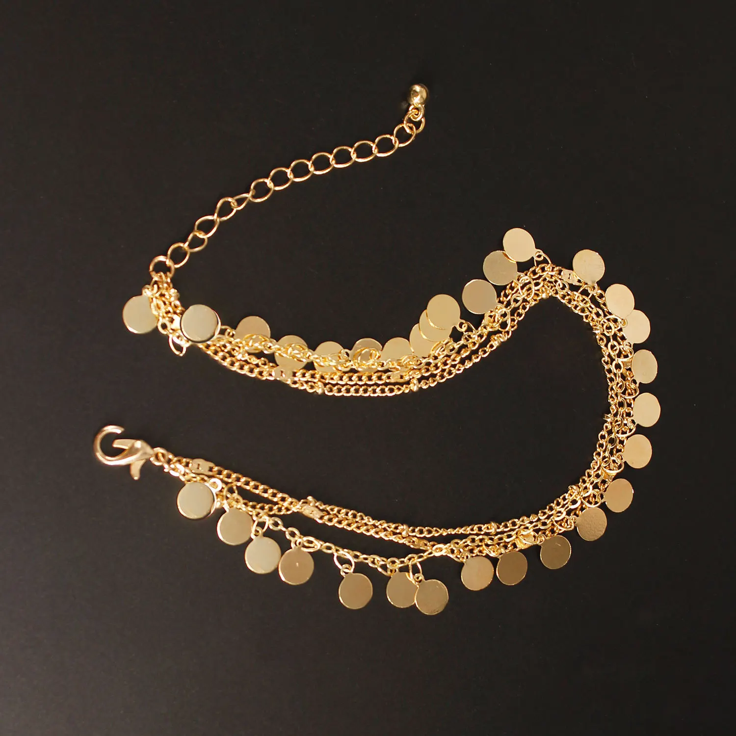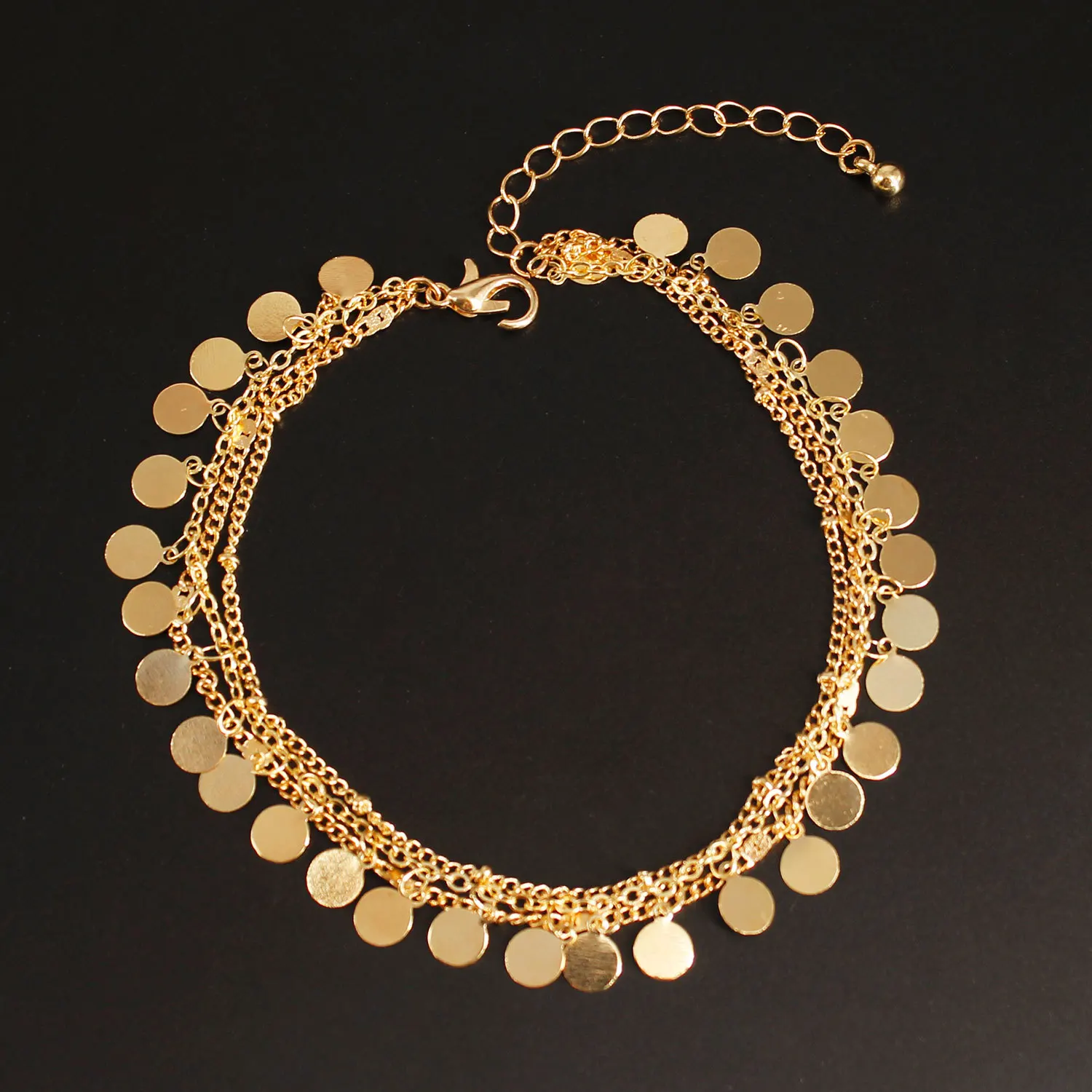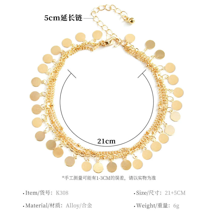 New Popular Beach Anklet Metal Sequined Anklet Female Three-piece Multi-layer Anklet FT1021