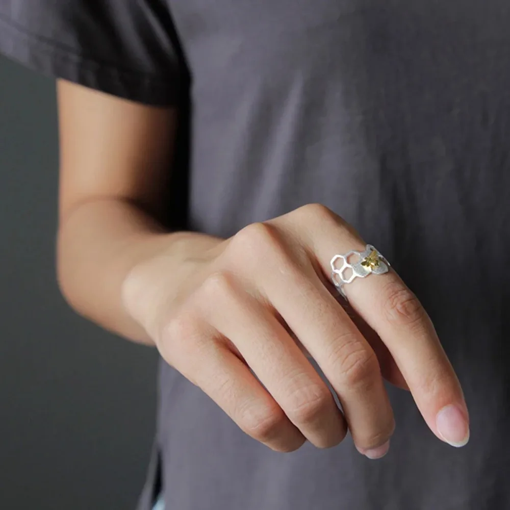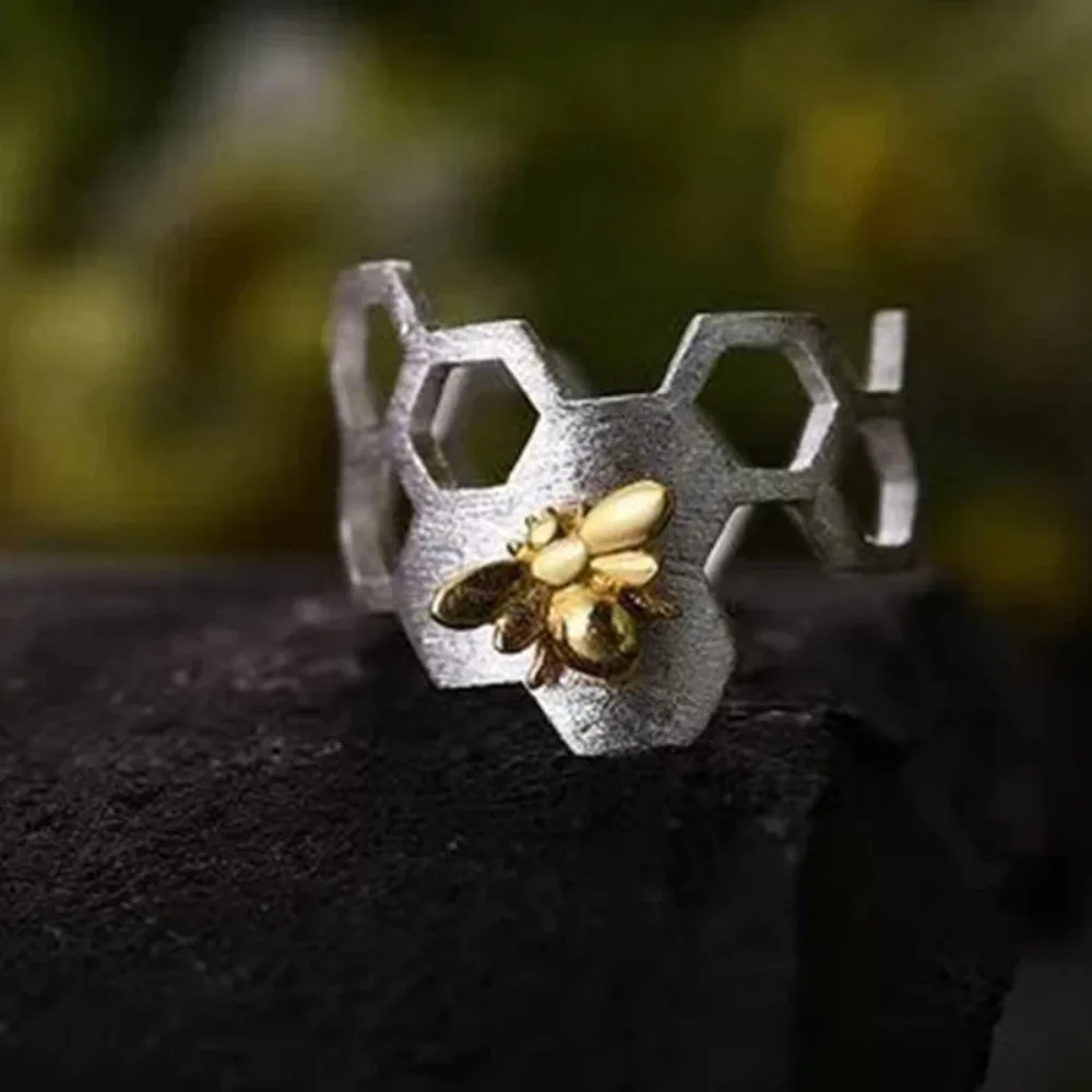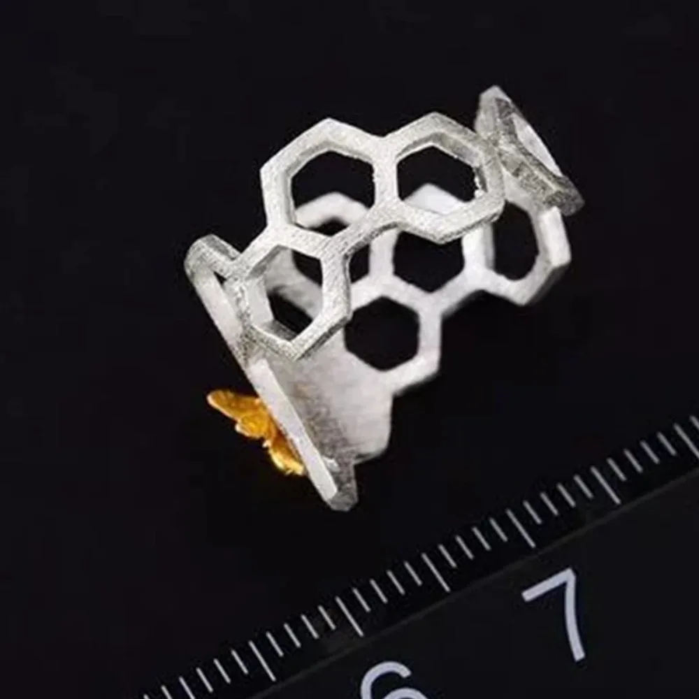 New Simple Trend Niche Fashion Beehive Opening Women's Skeleton Geometric Bee Ring Accessories Fashion Ladies Party JewelryGifts