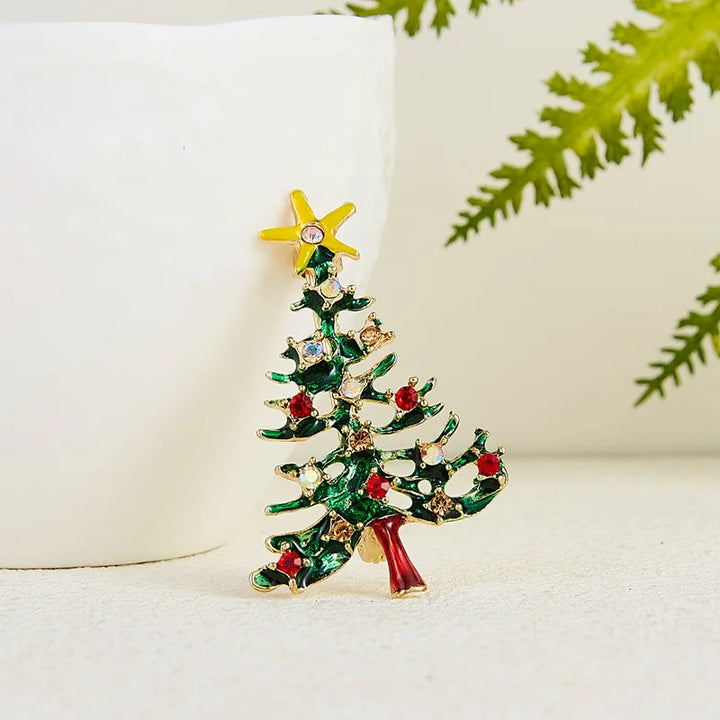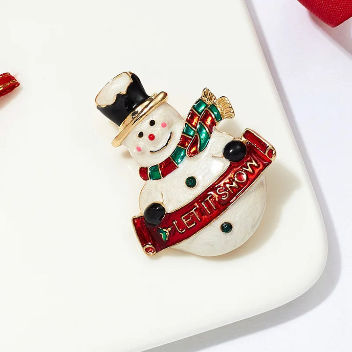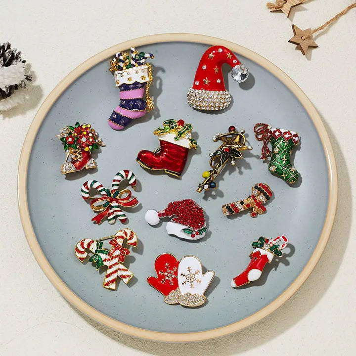 New Year Christmas Brooch For Women Fashion Snowman Santa Claus Tree Deer Bell Hat Rhinestone Enamel Cute Jewelry Kids Gifts