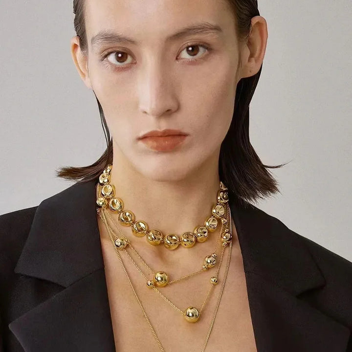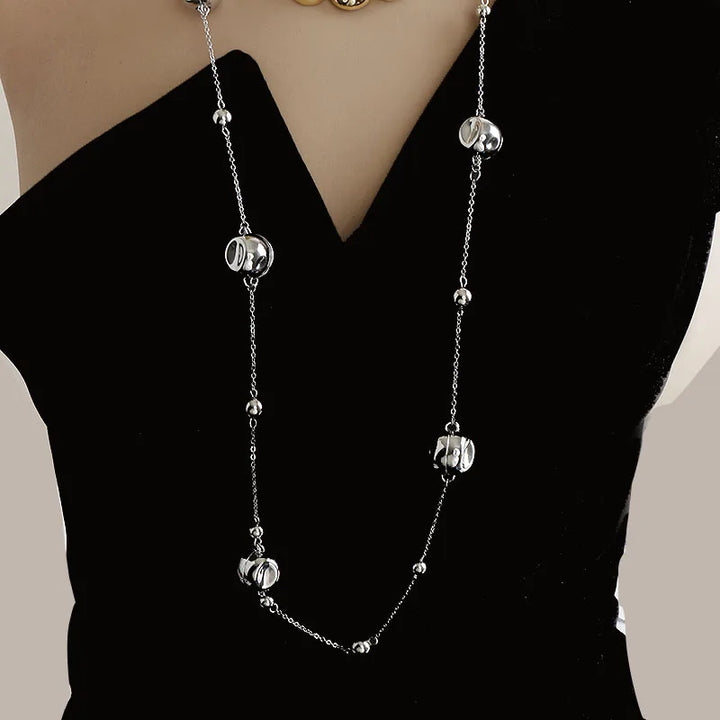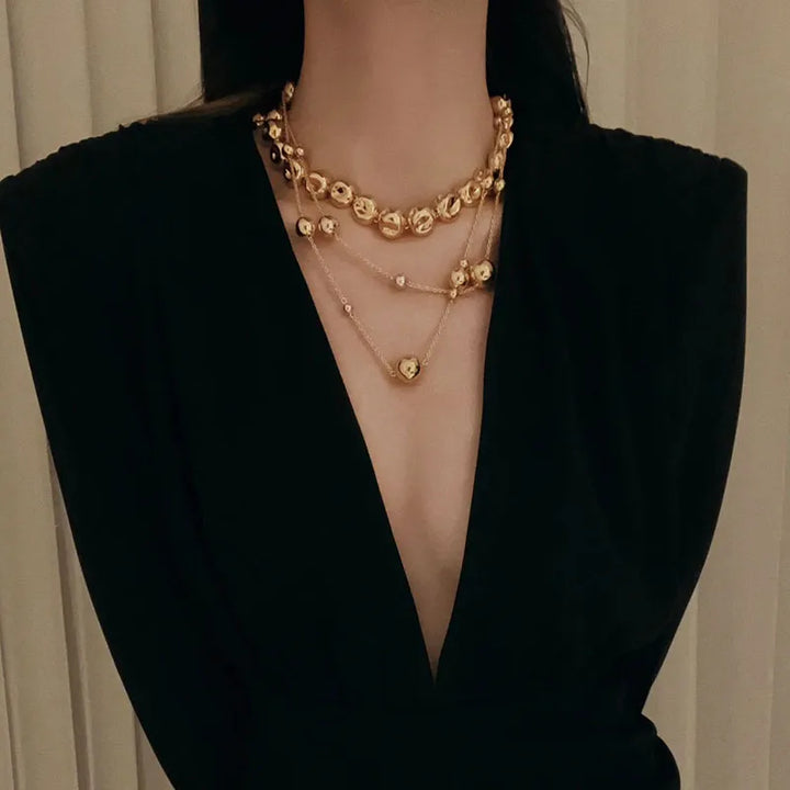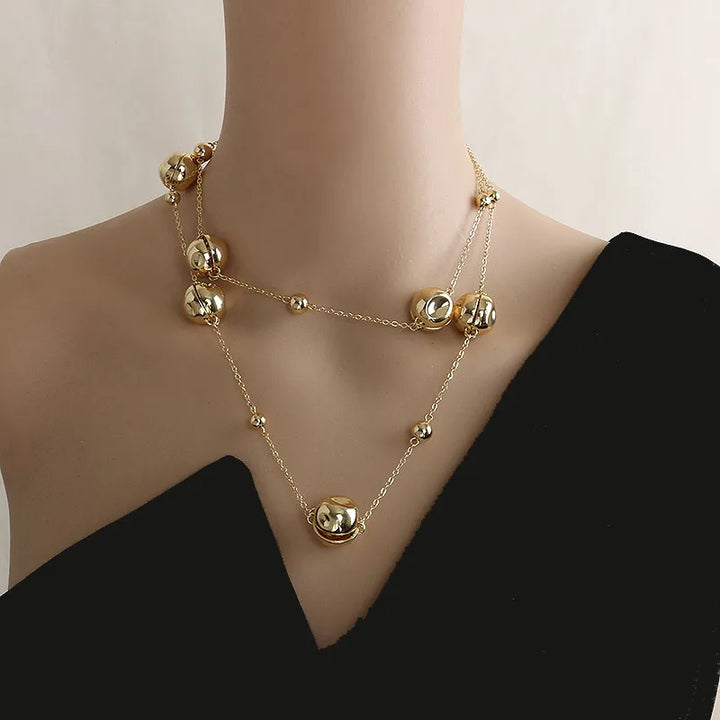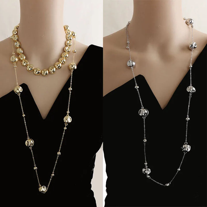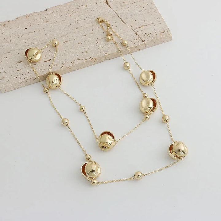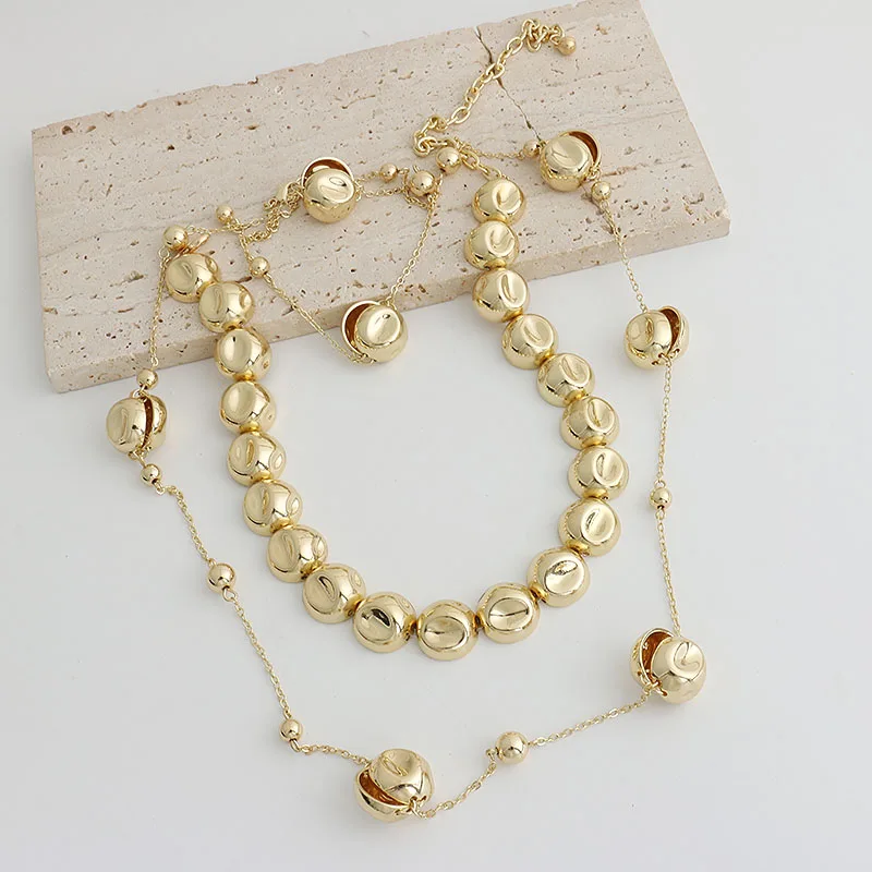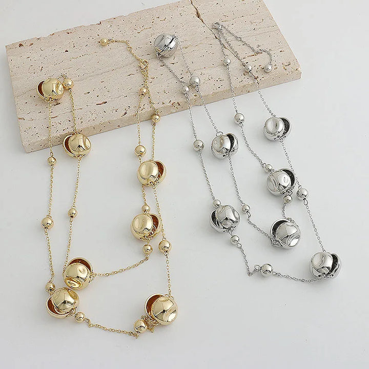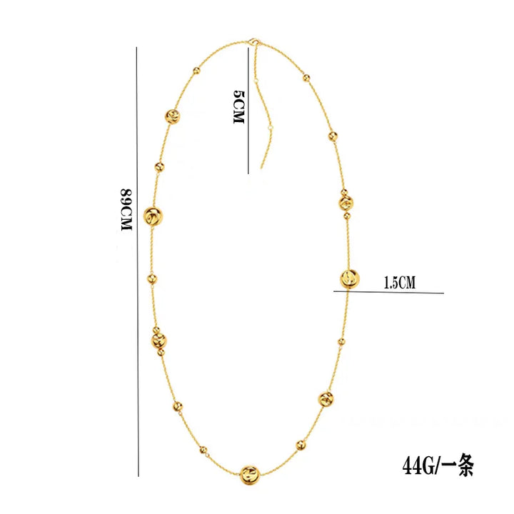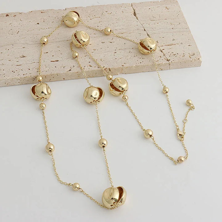 Niche design irregular concave golden ball long necklace light luxury high-end layered sweater chain women's fashion accessory