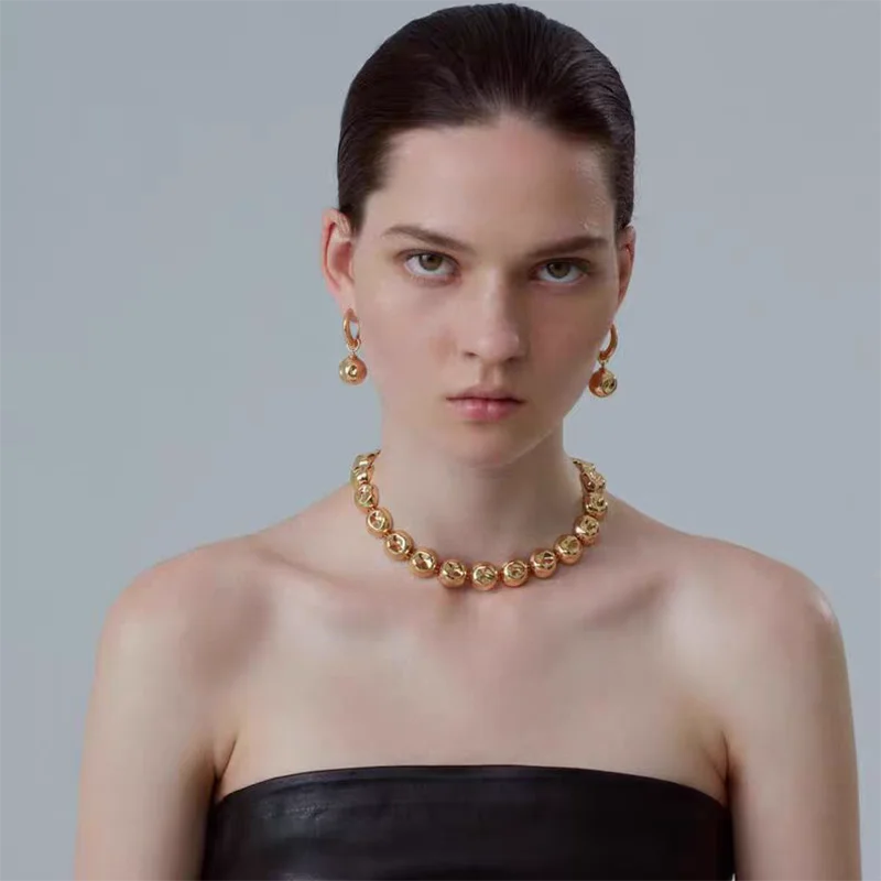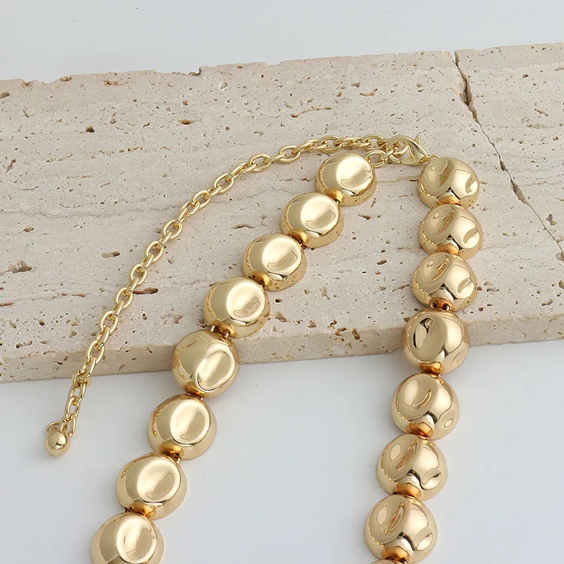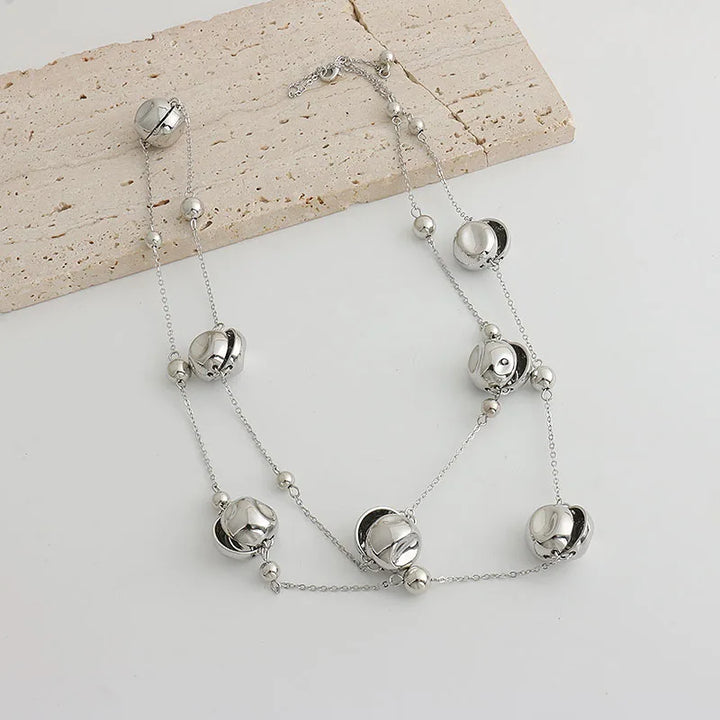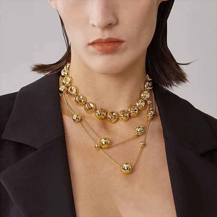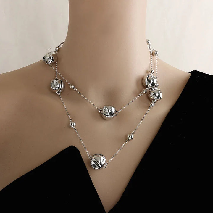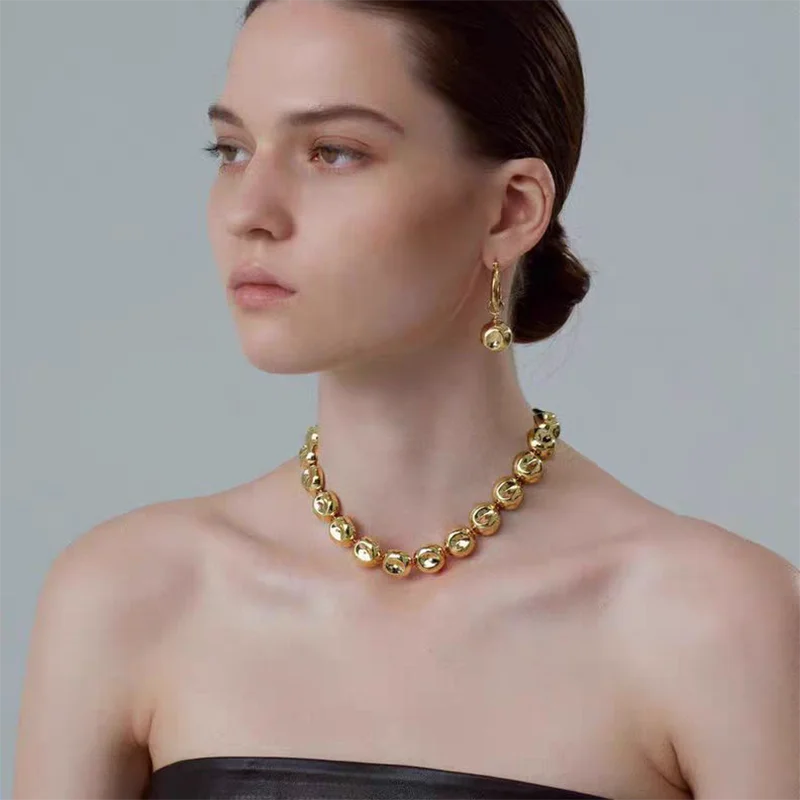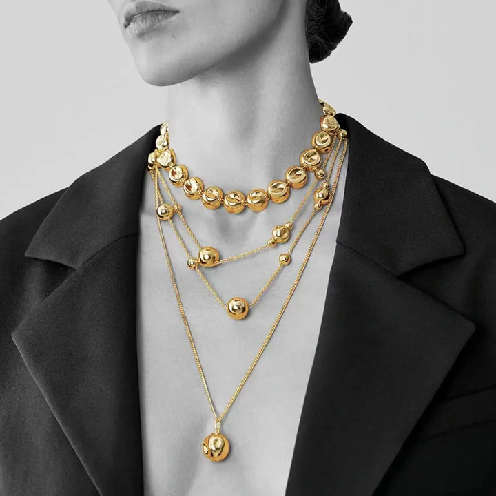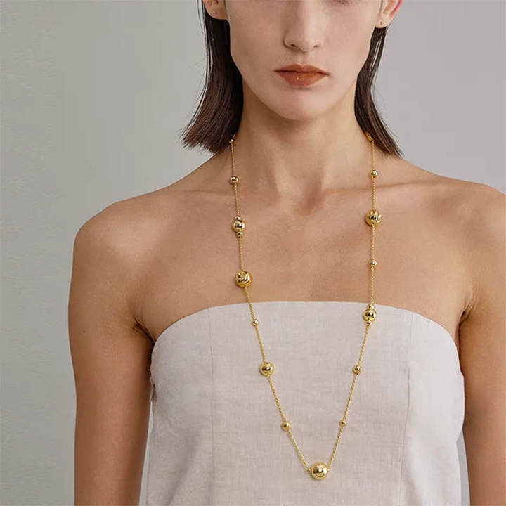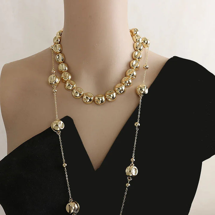 Niche design irregular concave golden ball long necklace light luxury high-end layered sweater chain women's fashion accessory