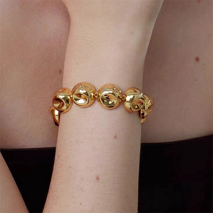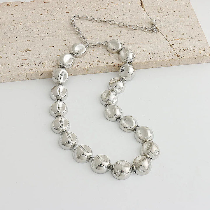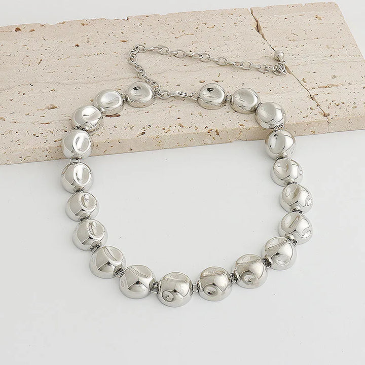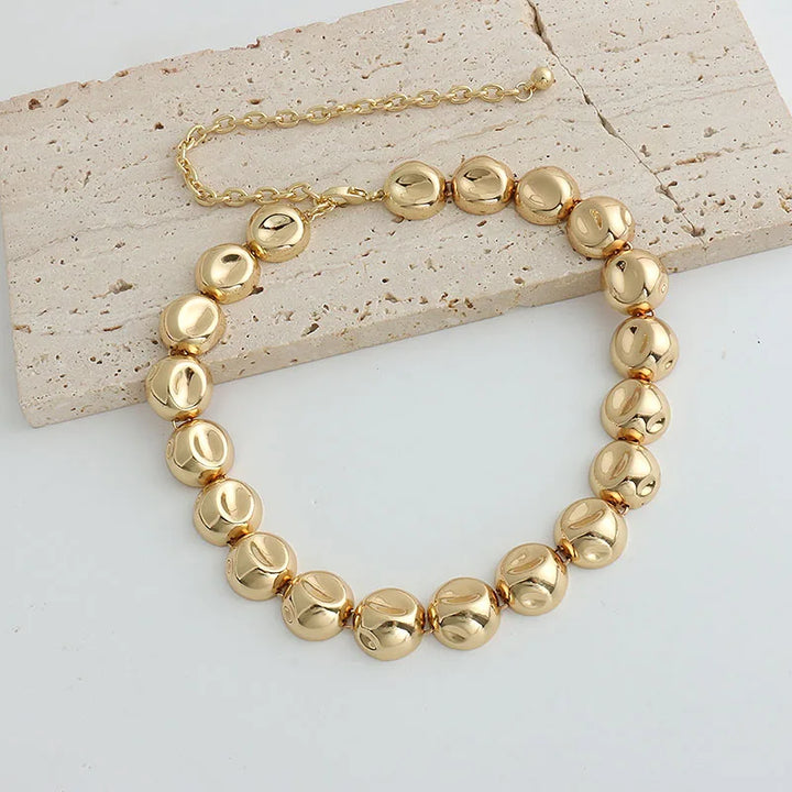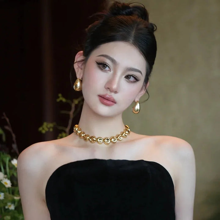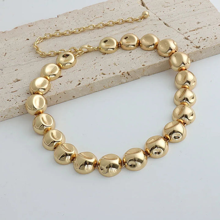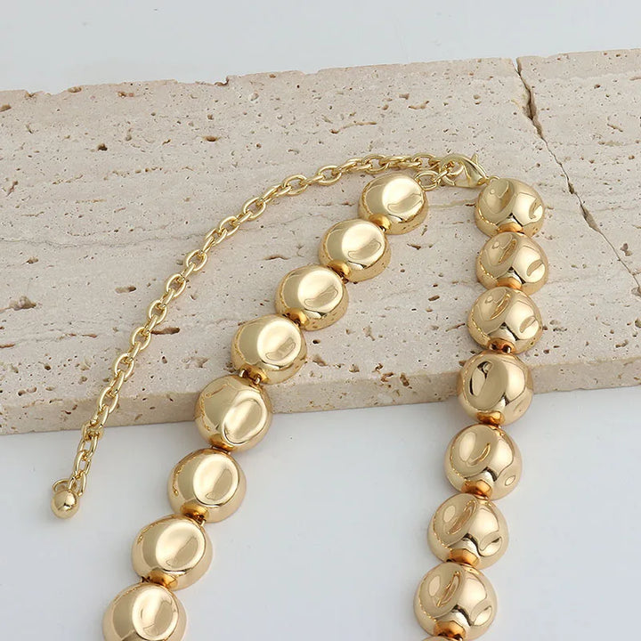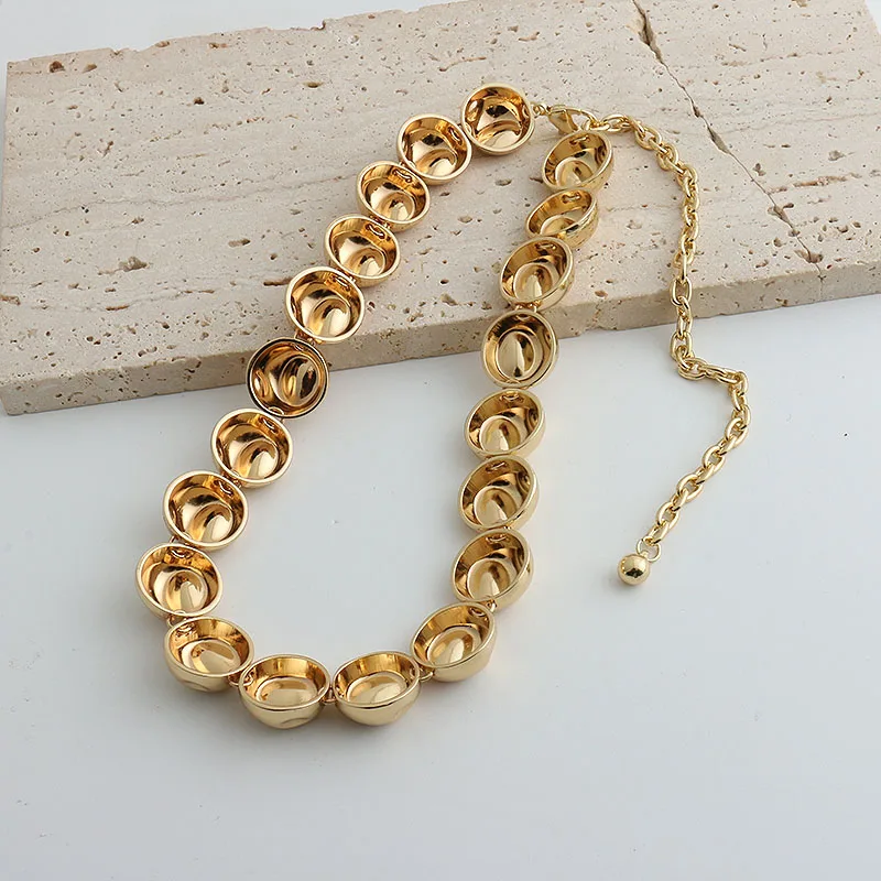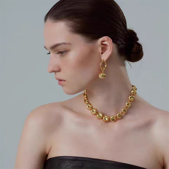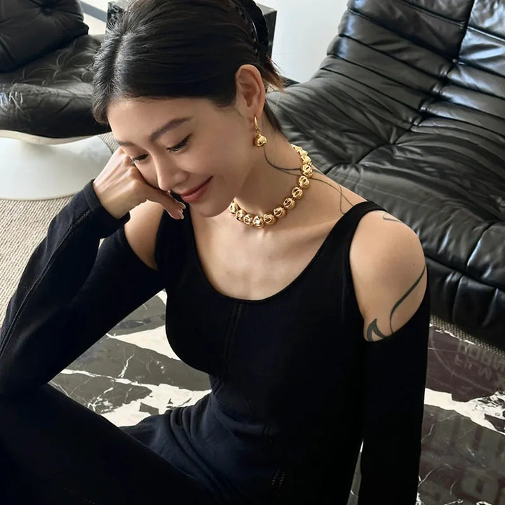 Niche design irregular concave golden ball long necklace light luxury high-end layered sweater chain women's fashion accessory