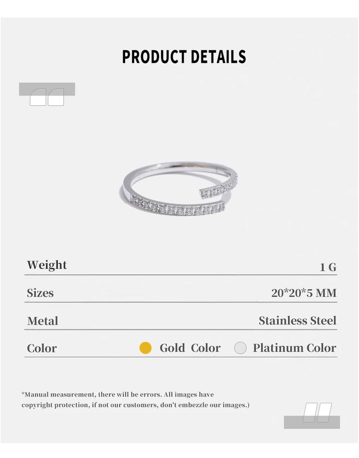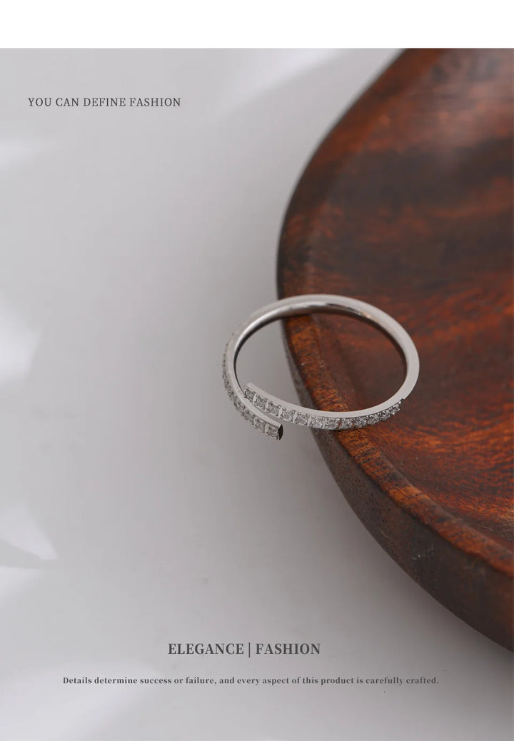 NiNice 2025 Exquisite Stainless Steel Cubic Zirconia Fashion Adjustable Ring Chic Korean Popular Waterproof Finger Jewelry