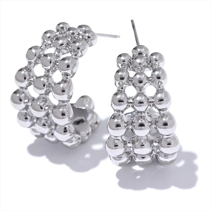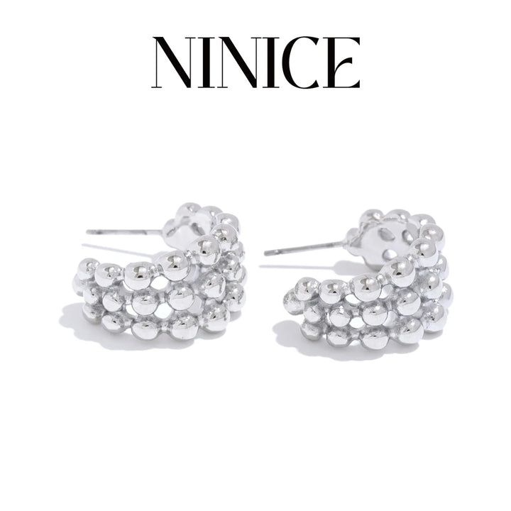 NiNice 316L Stainless Steel C-Shaped Beads Layered Geometric Hoop Earrings Pendientes Fashion Popular Daily Jewelry 2025