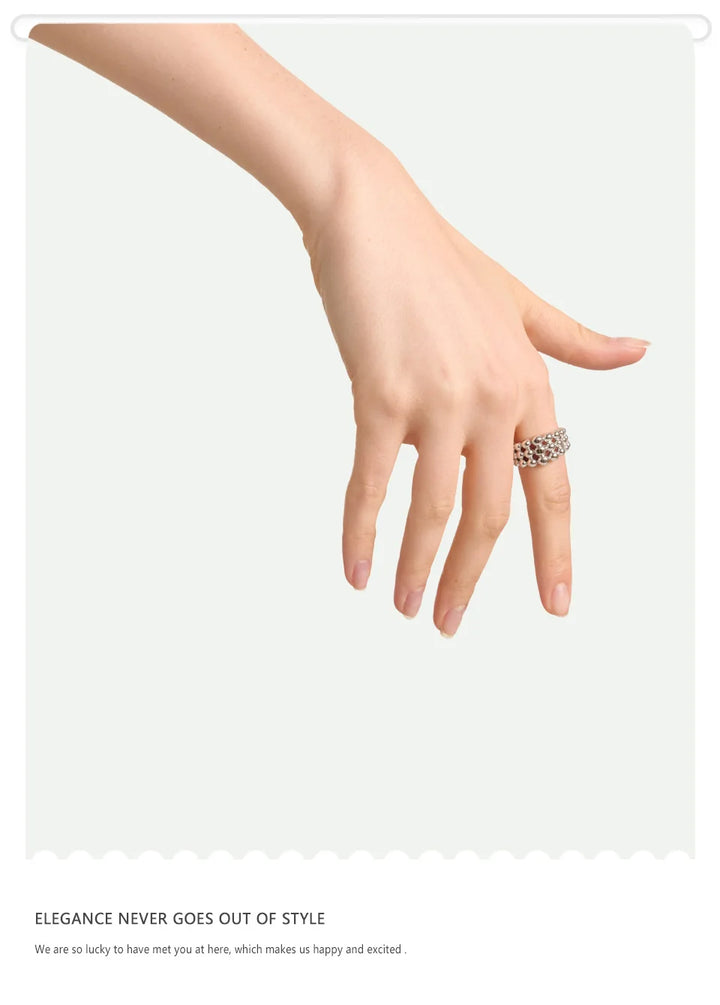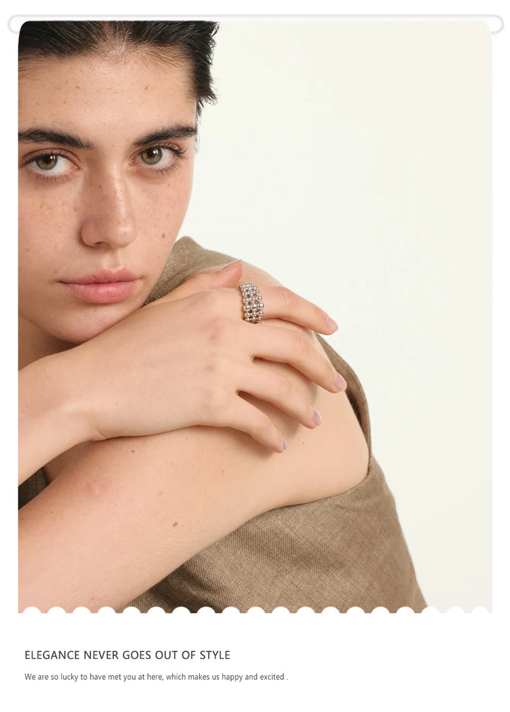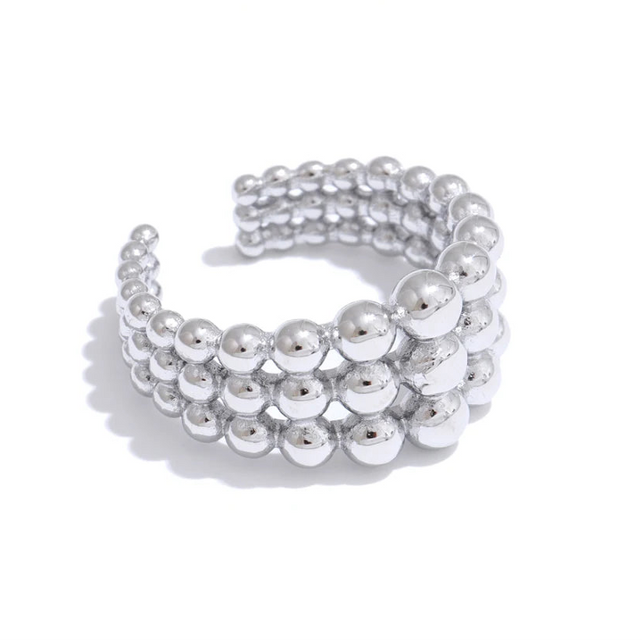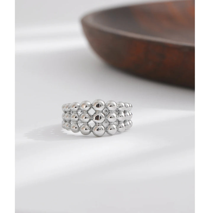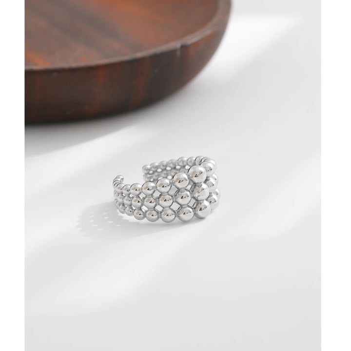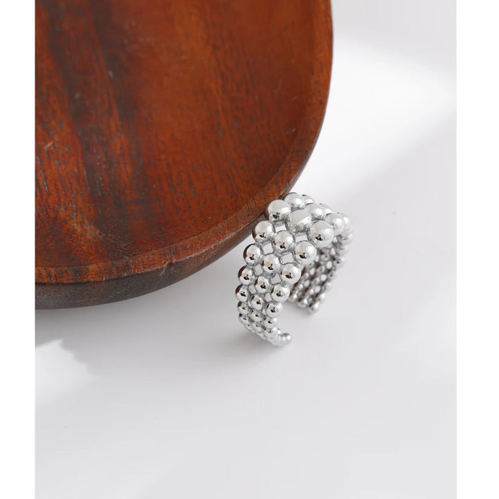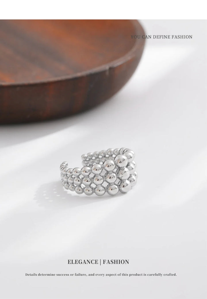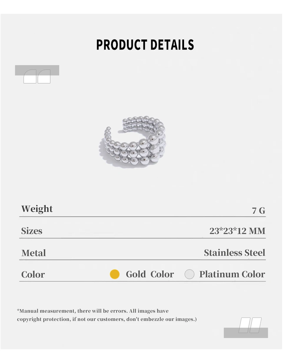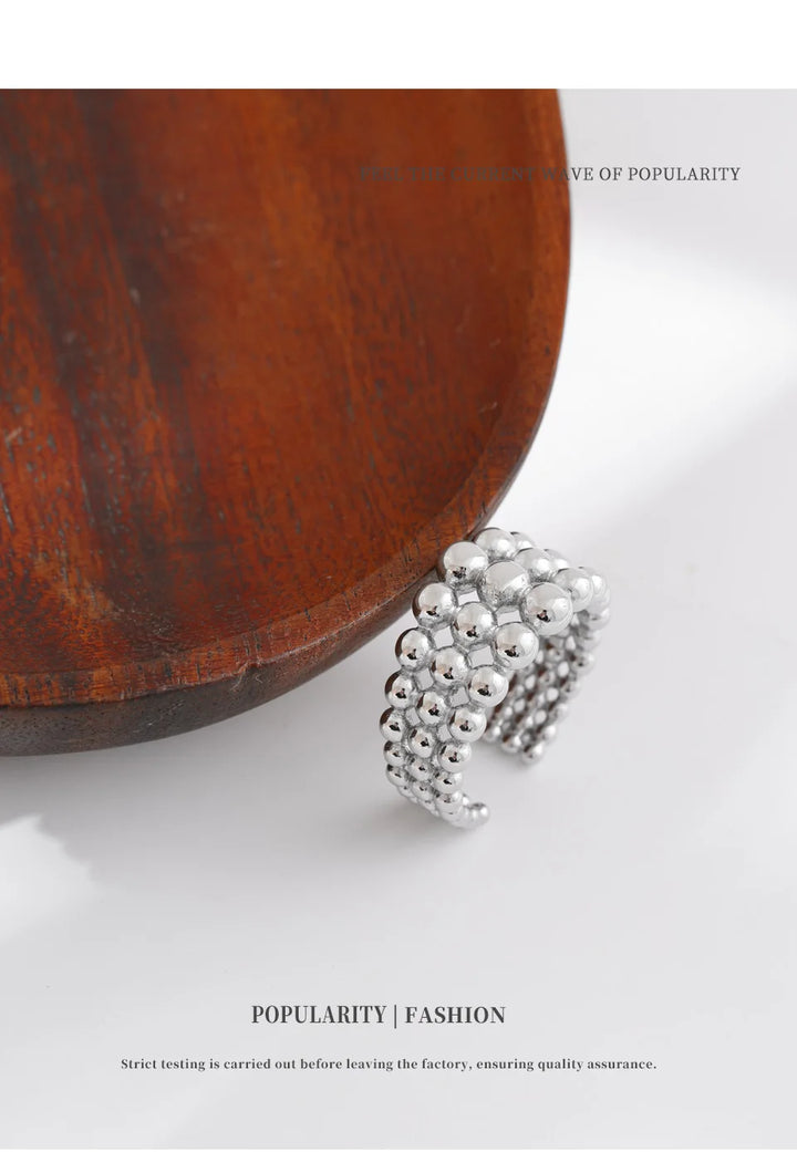 NiNice 316L Stainless Steel Layered Beads Open Ring Fashion Statement Finger Jewelry 18K PVD Plated Accessories Gift